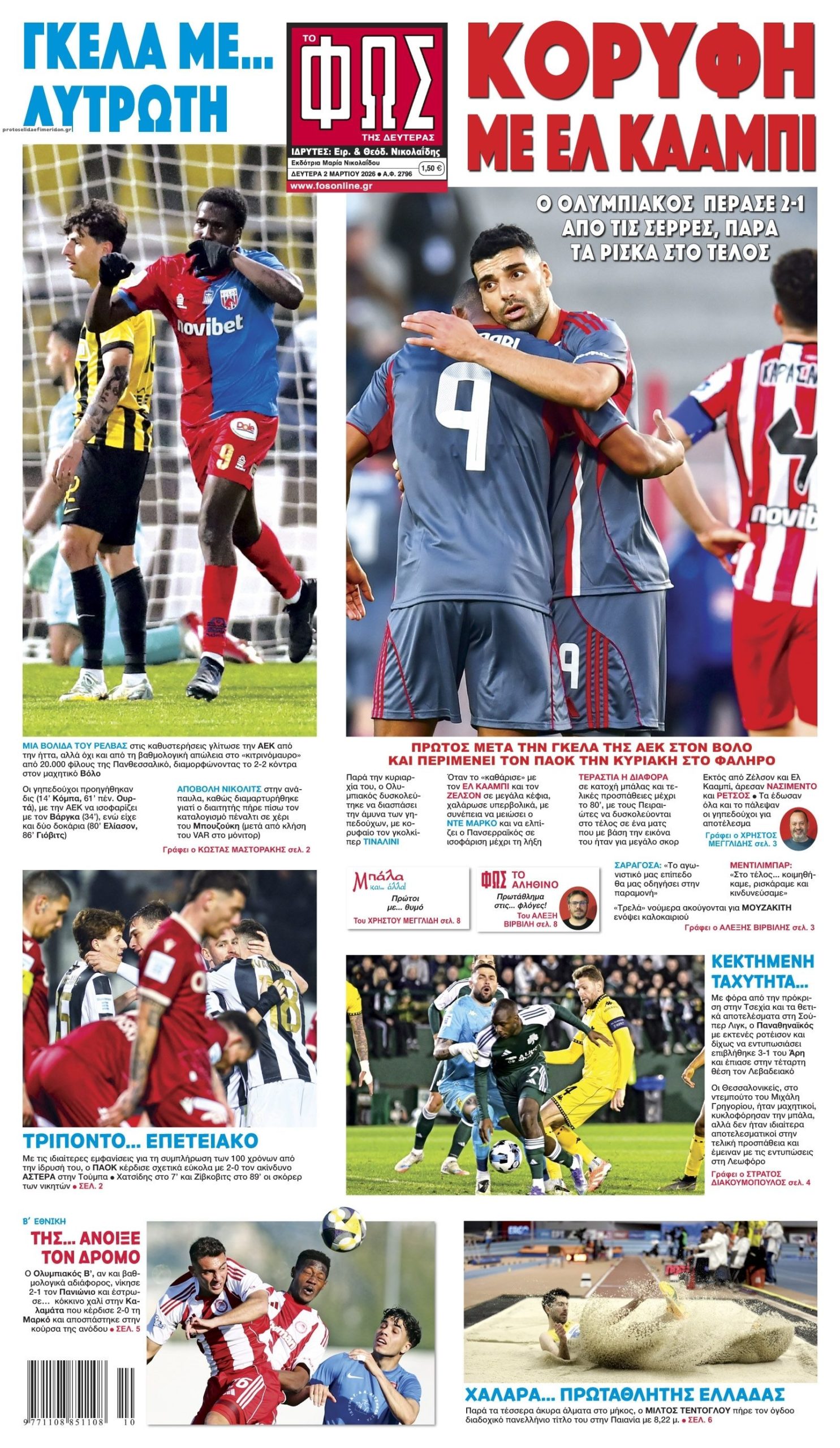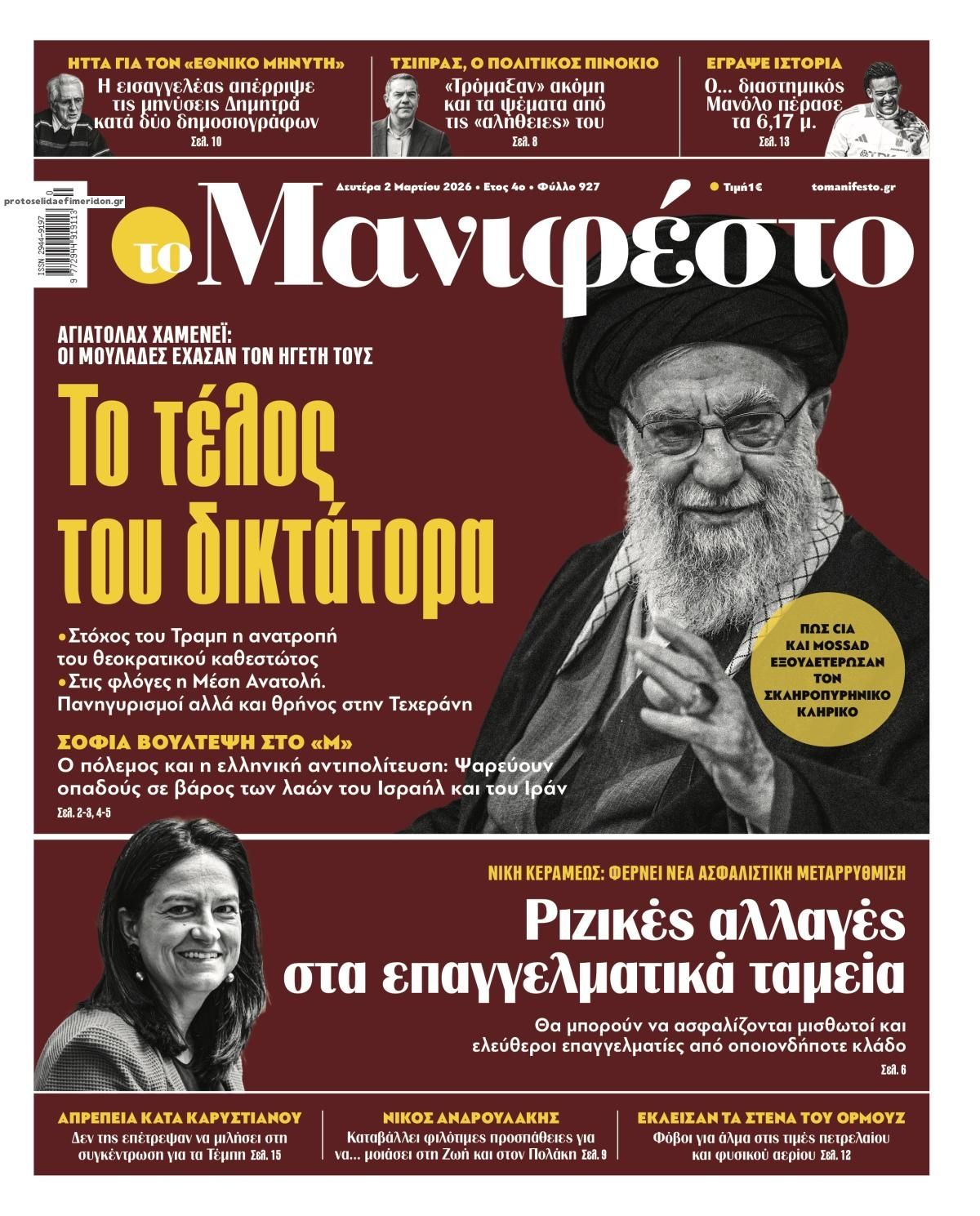 Τα πρωτοσέλιδα των εφημερίδων της Κυριακής 1 Μαρτίου 2026