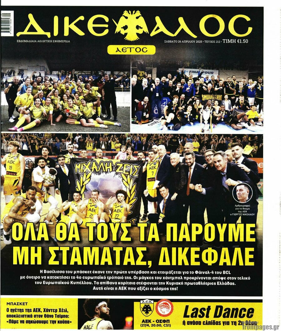 Διαβάστε τα πρωτοσέλιδα των πολιτικών, οικονομικών και αθλητικών εφημερίδων.