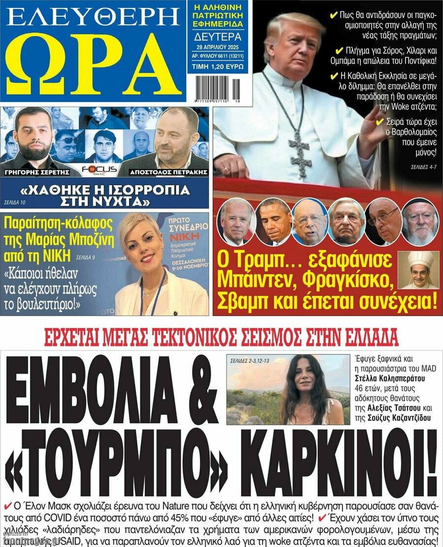 Τα πρωτοσέλιδα των εφημερίδων της Κυριακής 27 Απριλίου 2025
