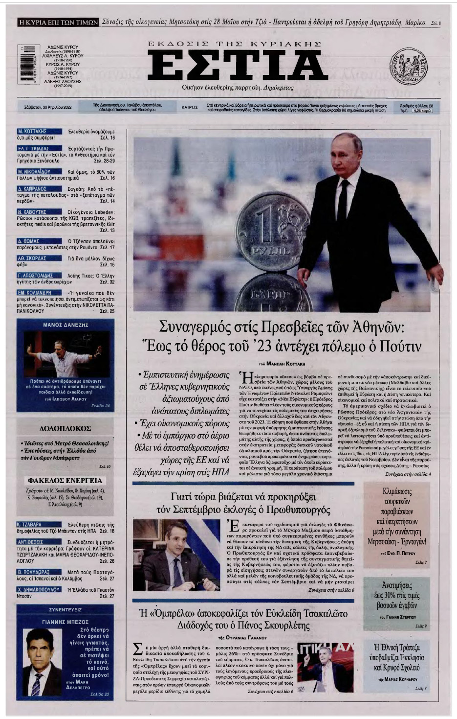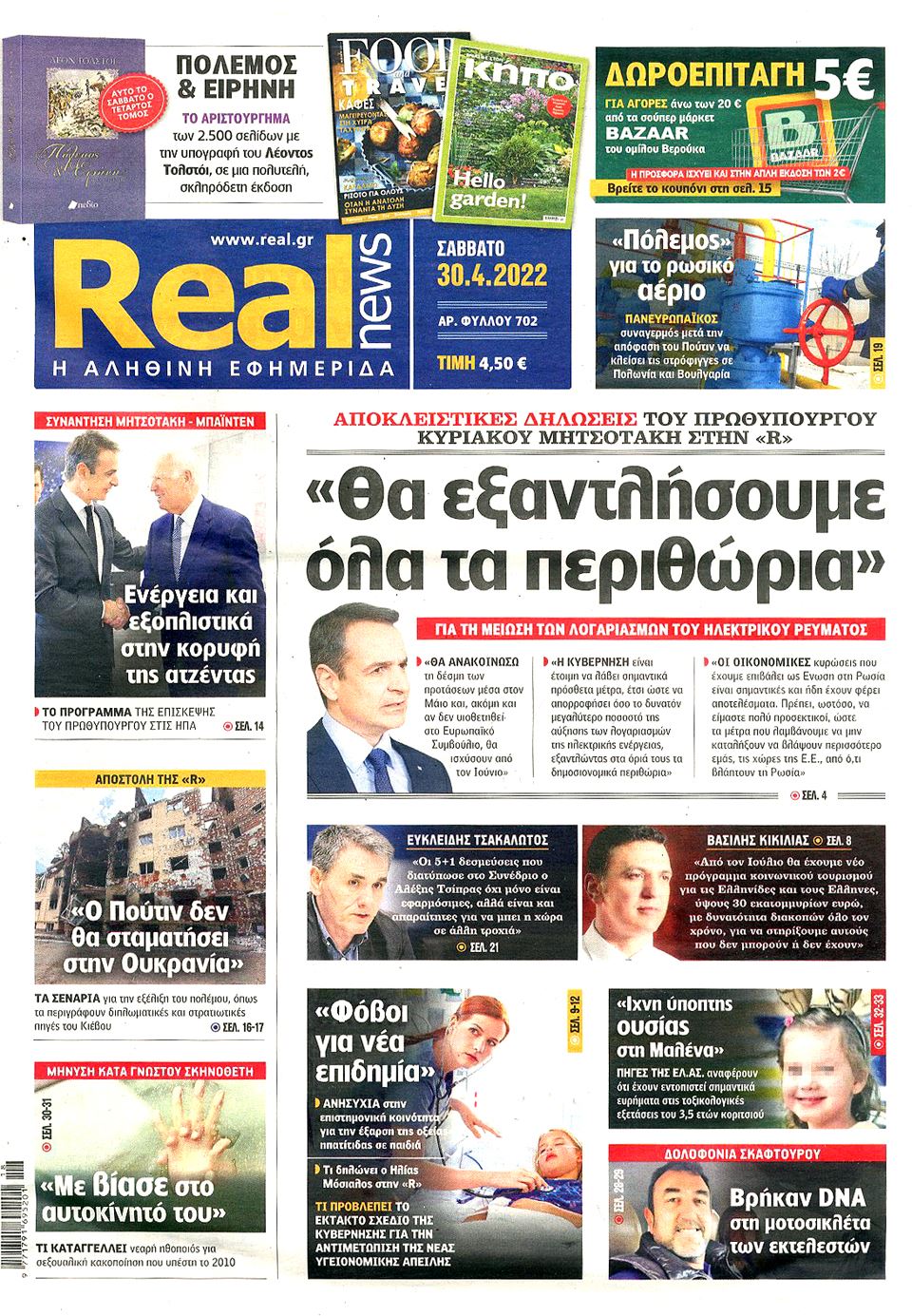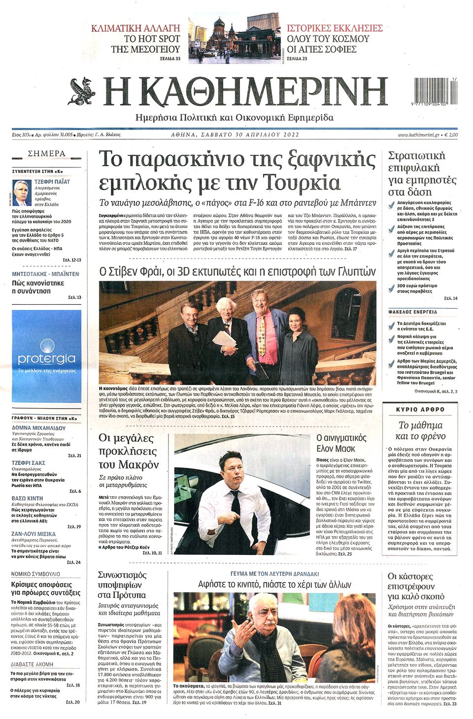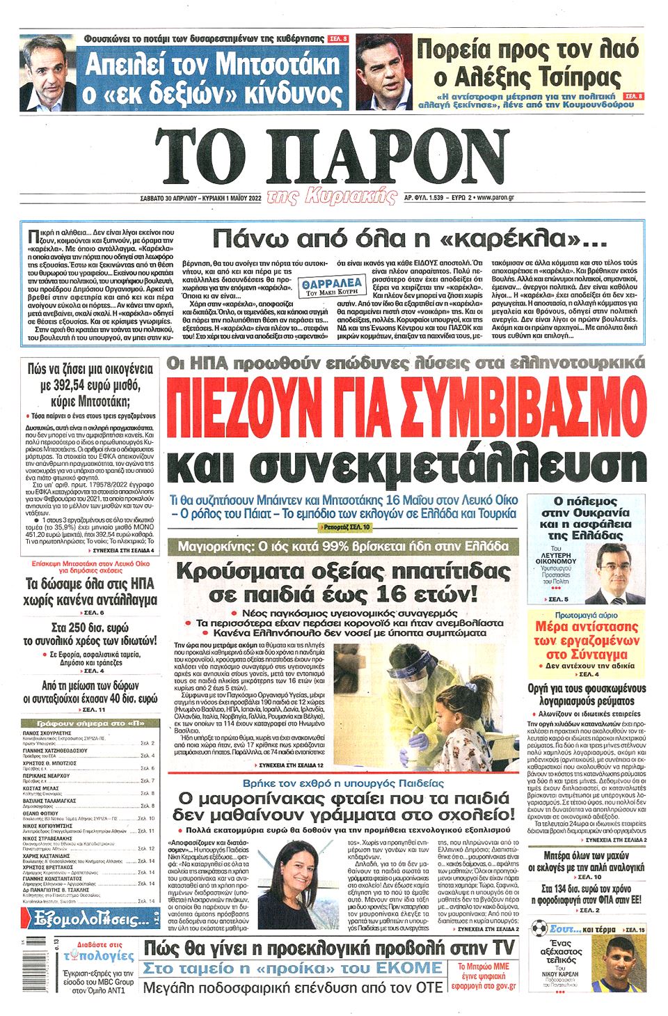 Δείτε τα πρωτοσέλιδα των εφημερίδων της Κυριακής 1 Μαΐου, που κυκλοφορούν εκτάκτως το Σάββατο 30 Απριλίου