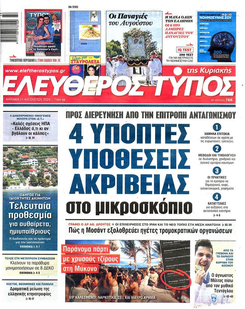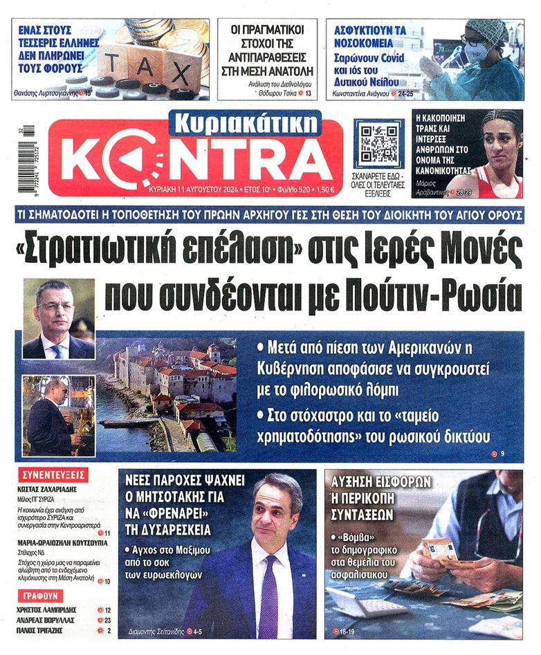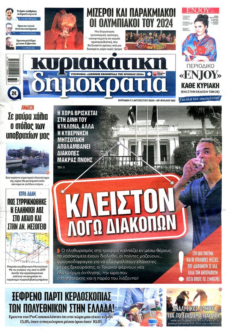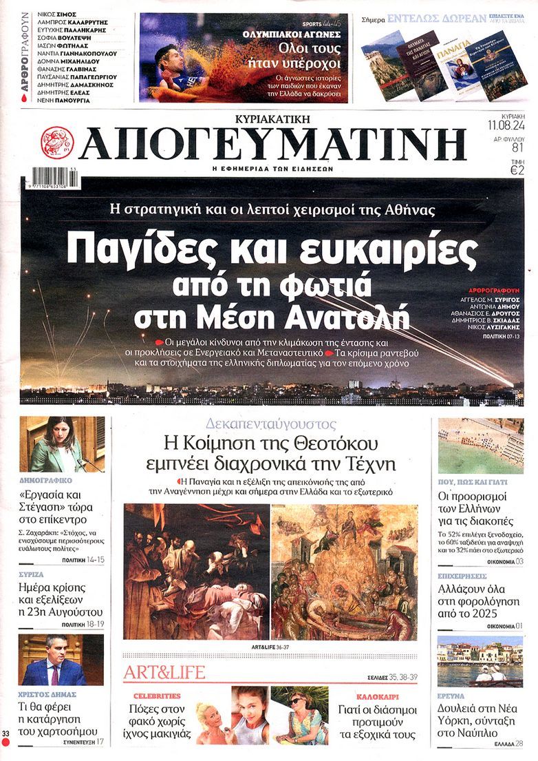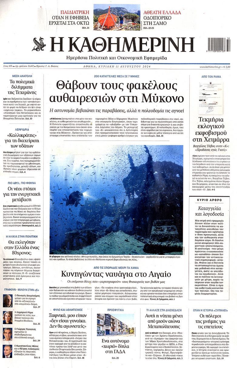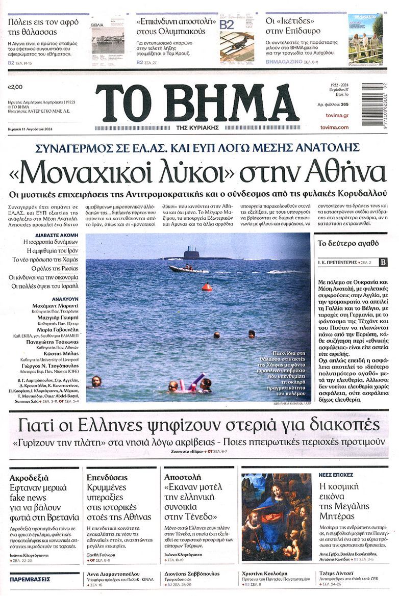 Διαβάστε τα πρωτοσέλιδα των κυριακάτικων εφημερίδων της Κυριακής 11 Αυγούστου 2024.