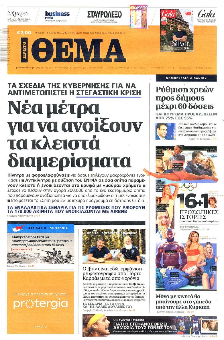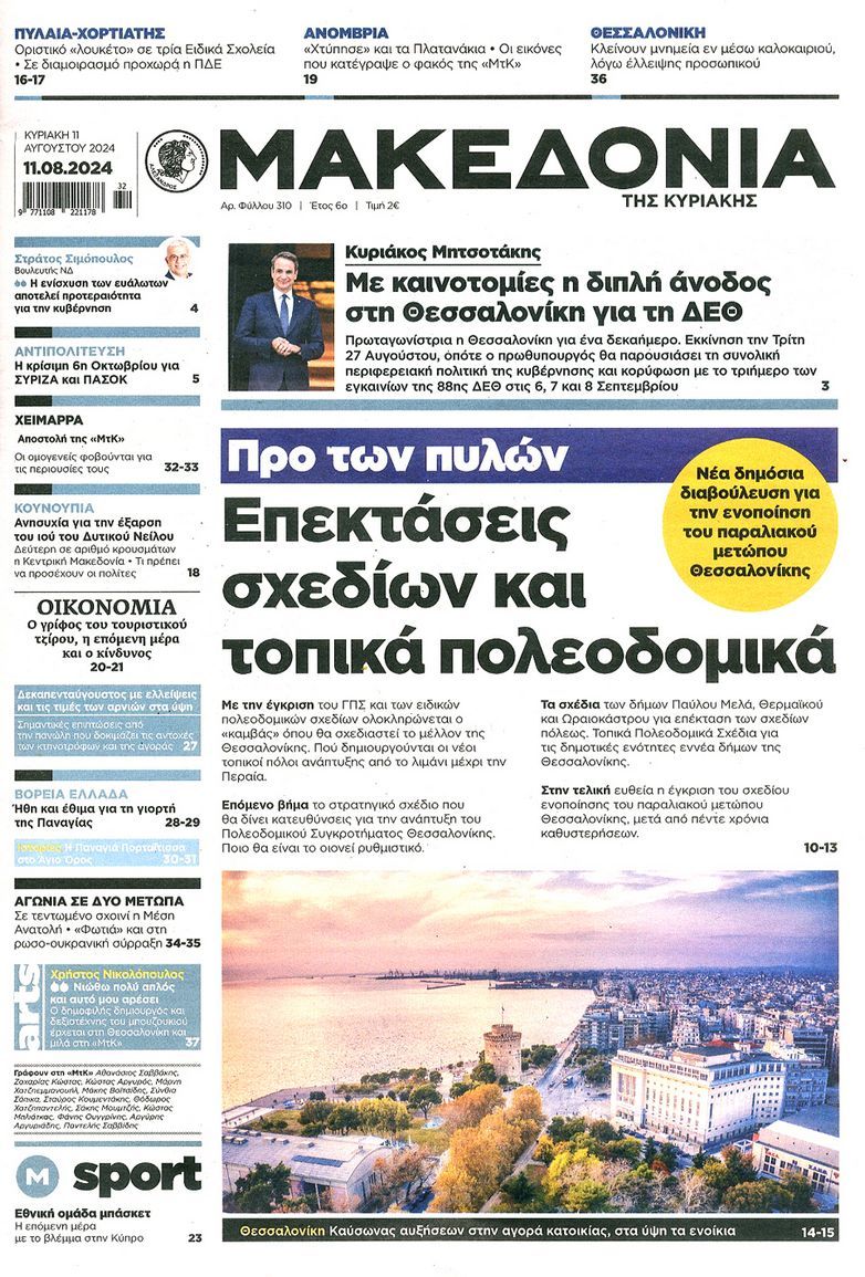 Τα πρωτοσέλιδα των πολιτικών και αθλητικών εφημερίδων (10-08-2024)
