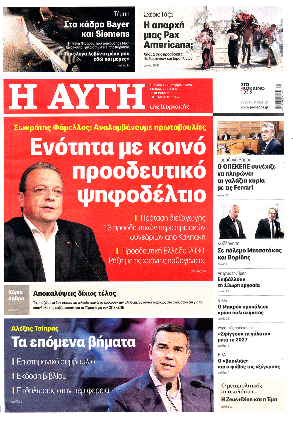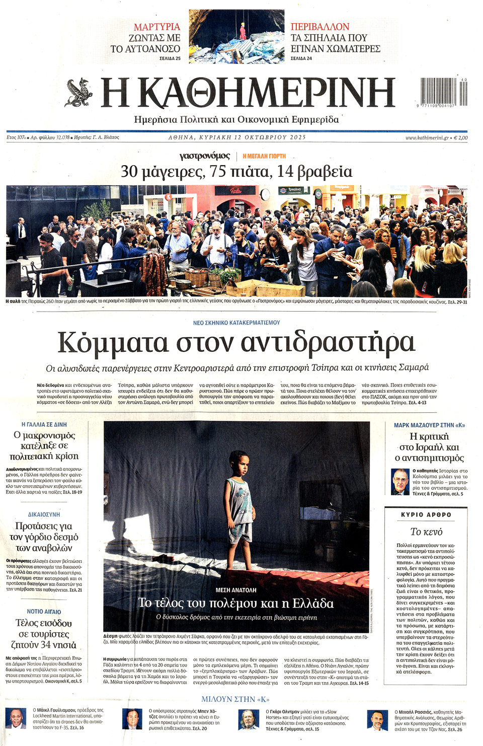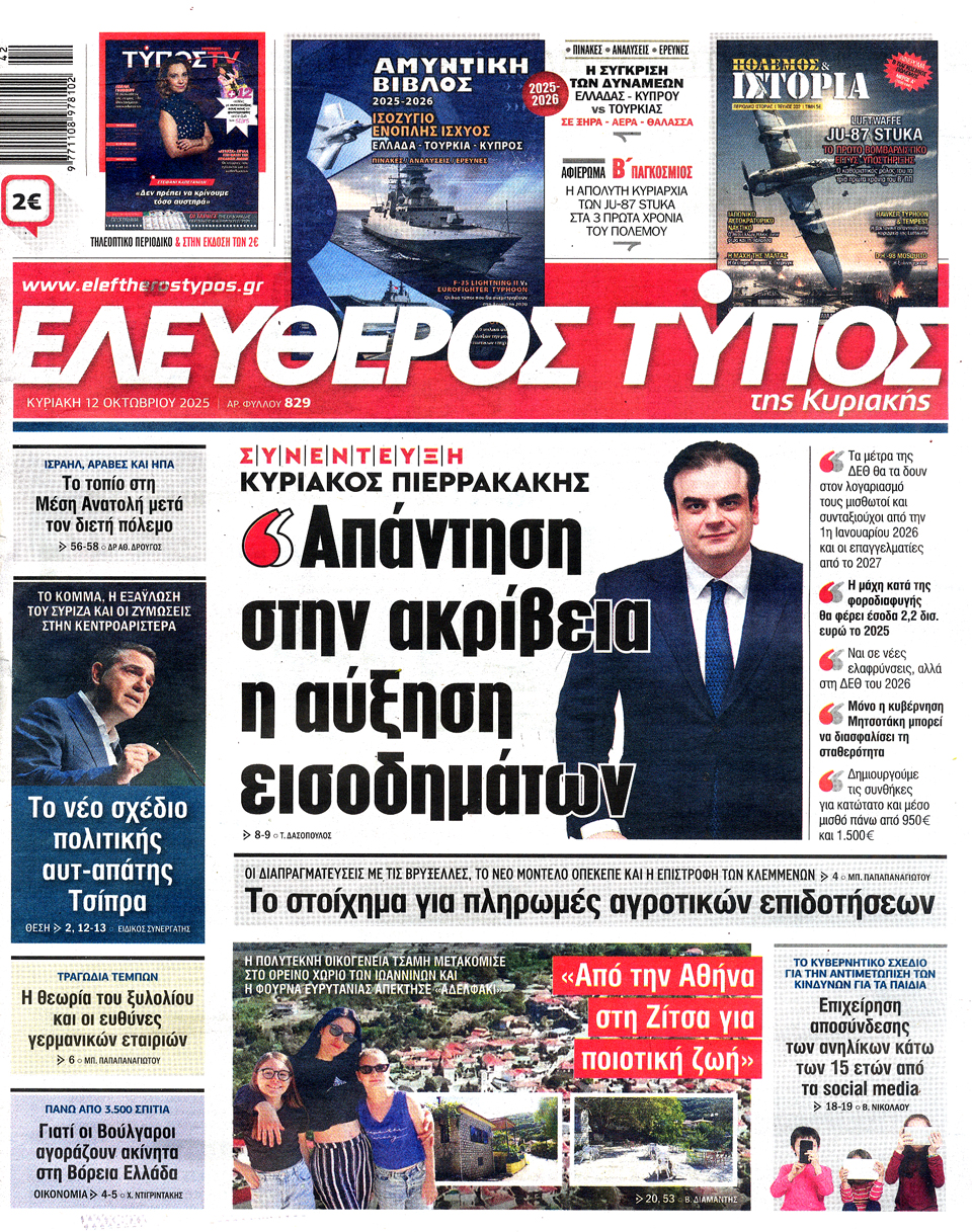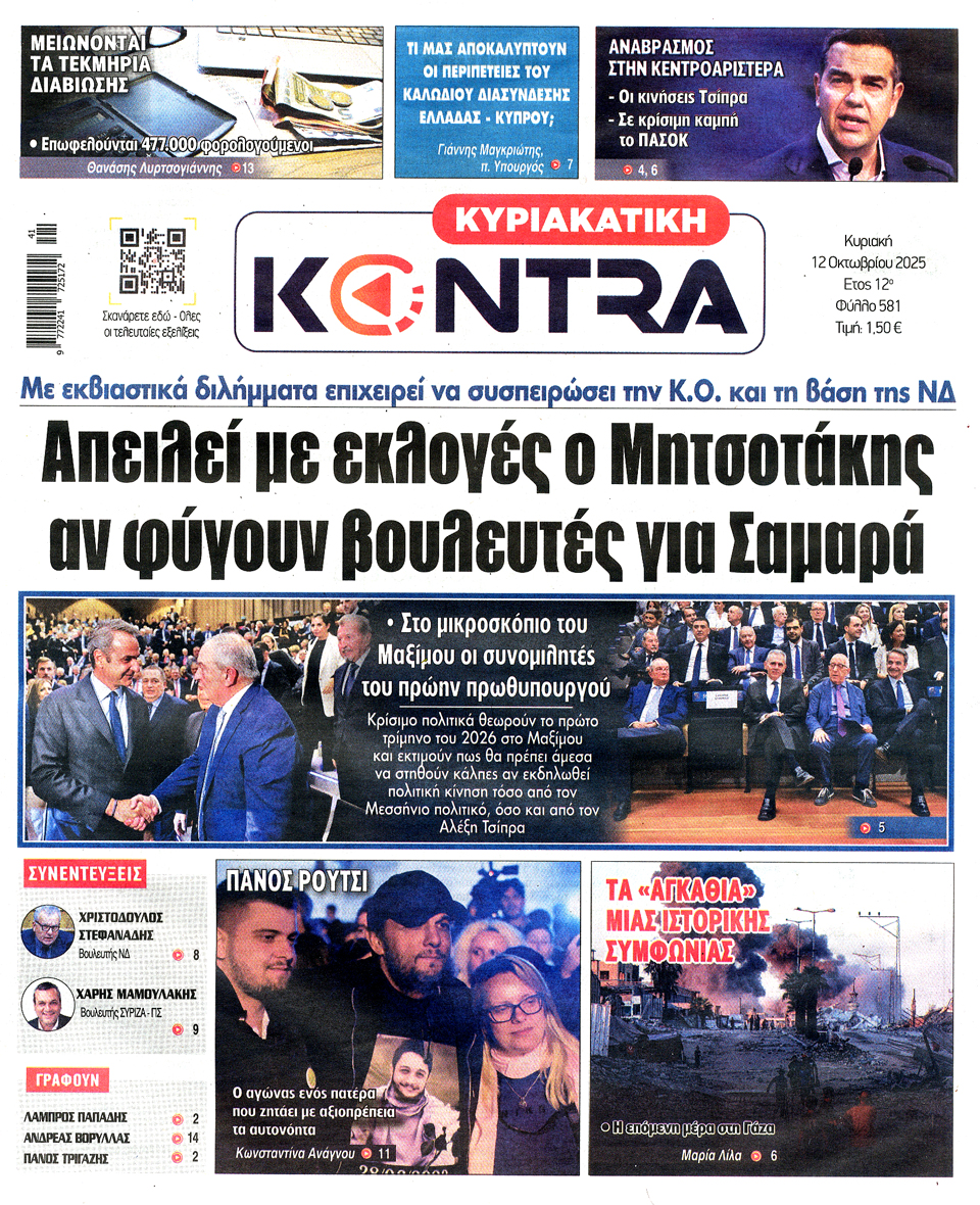 Διαβάστε τα πρωτοσέλιδα των εφημερίδων της Κυριακής 12 Οκτωβρίου 2025