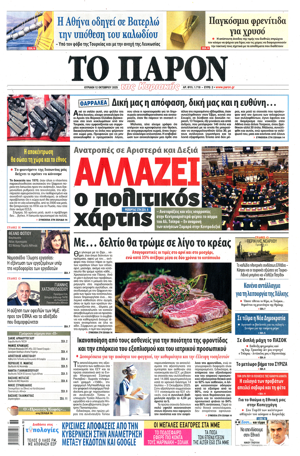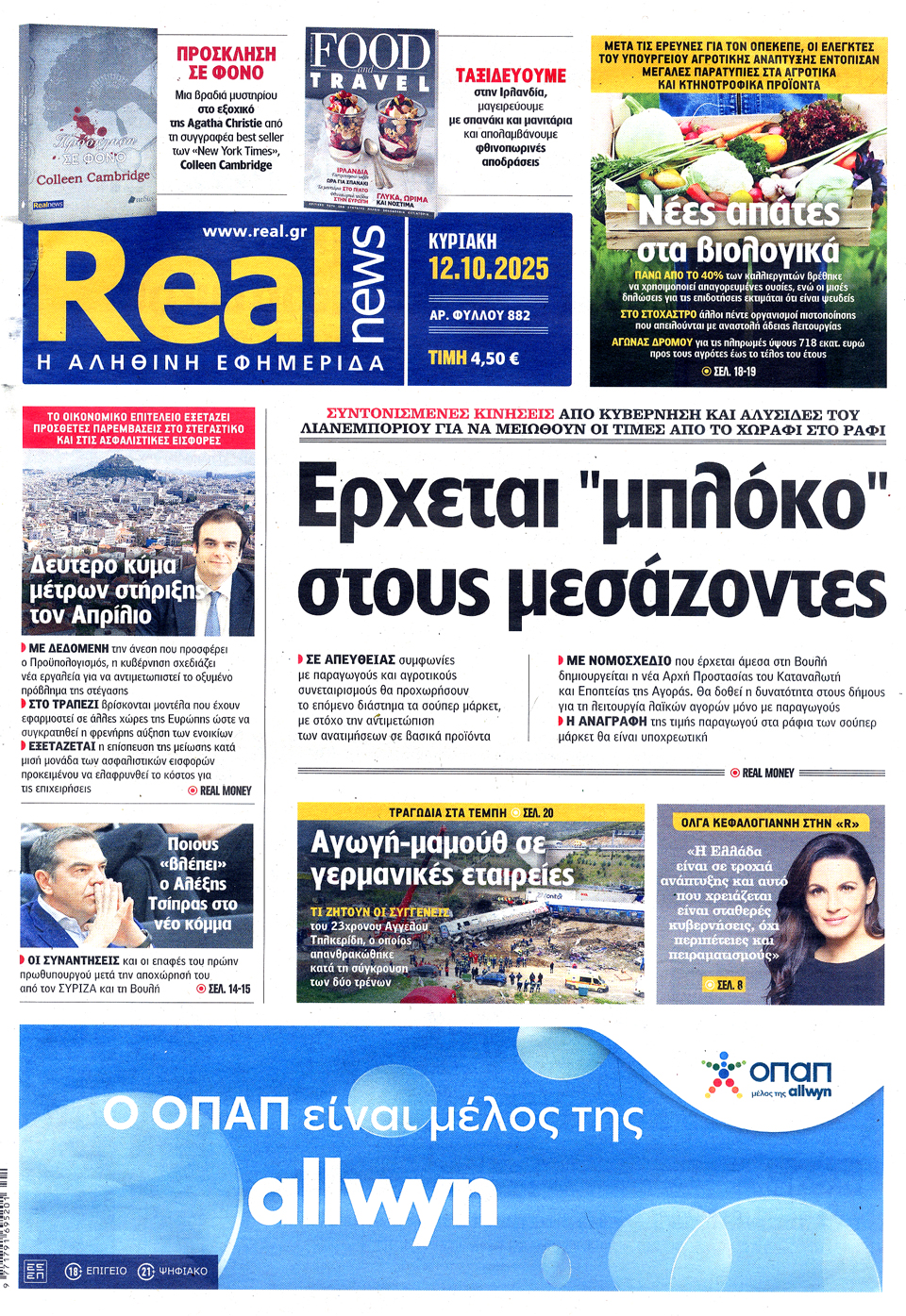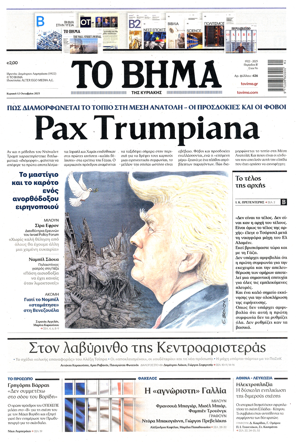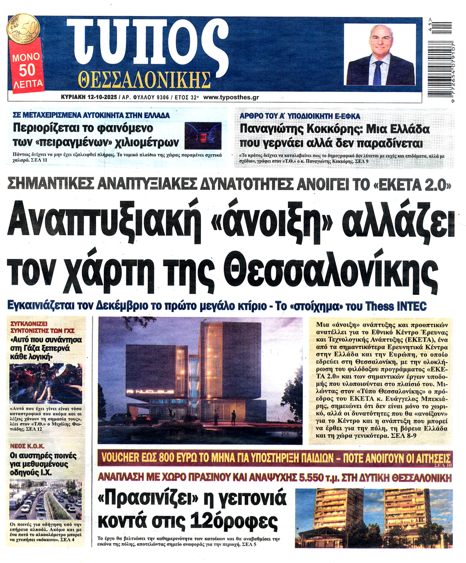Διαβάστε τα πρωτοσέλιδα των εφημερίδων της Κυριακής 12 Οκτωβρίου 2025