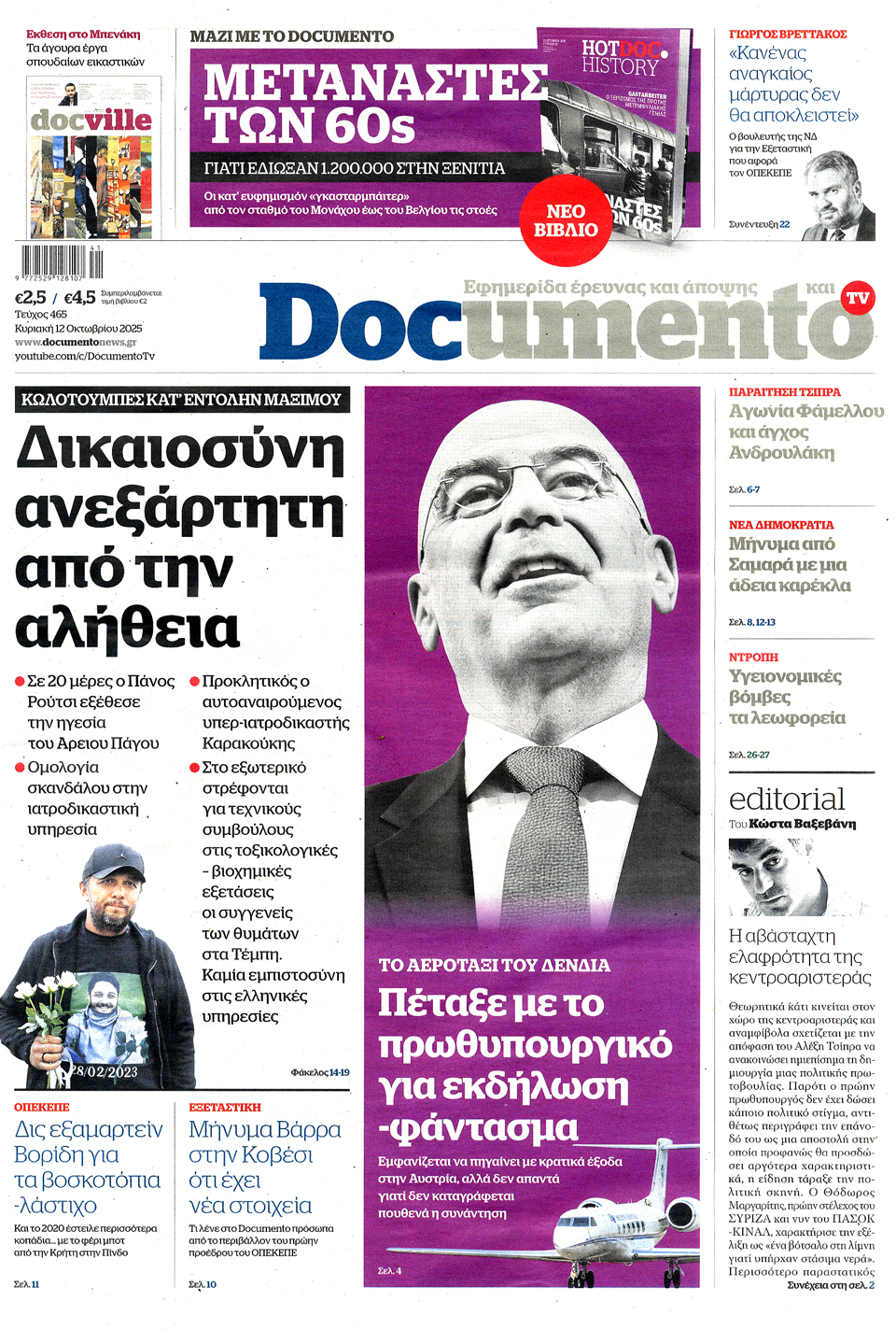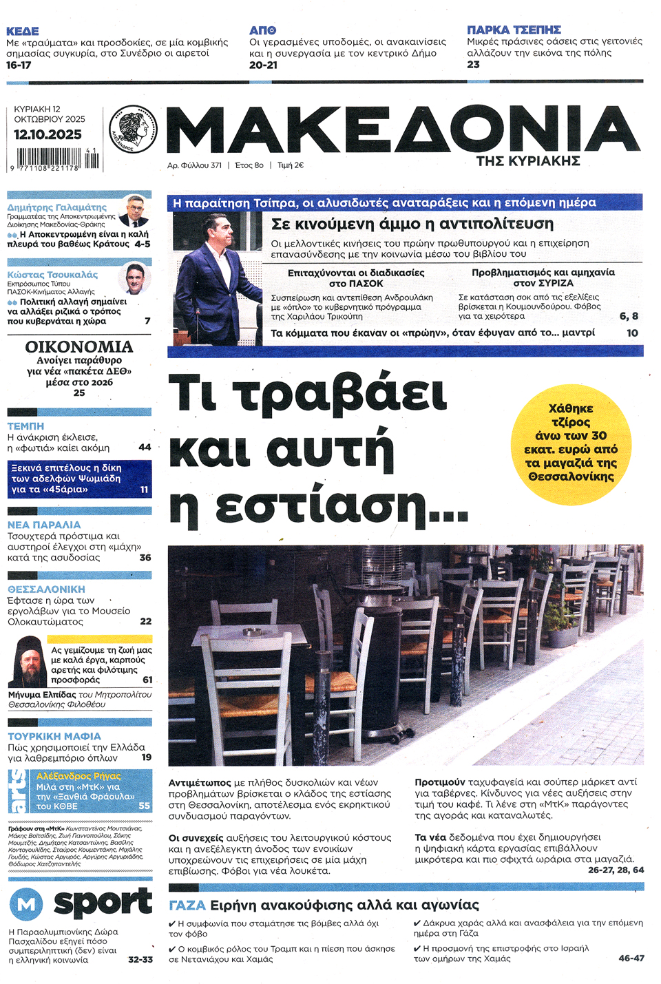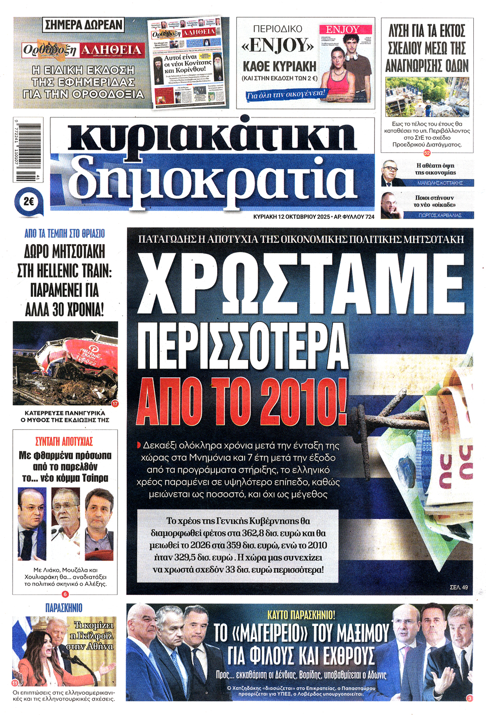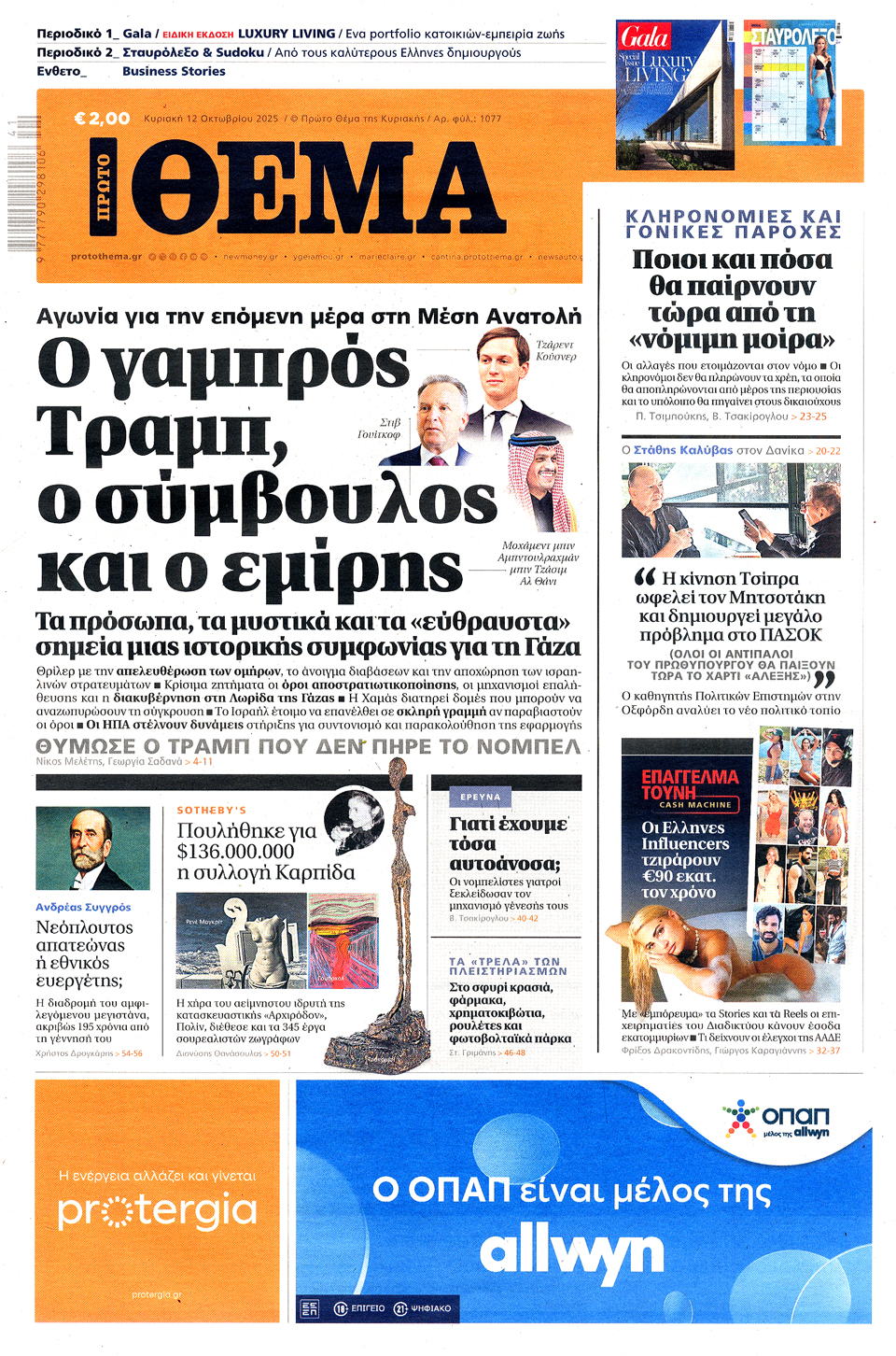 Διαβάστε τα πρωτοσέλιδα των εφημερίδων της Κυριακής 12 Οκτωβρίου 2025