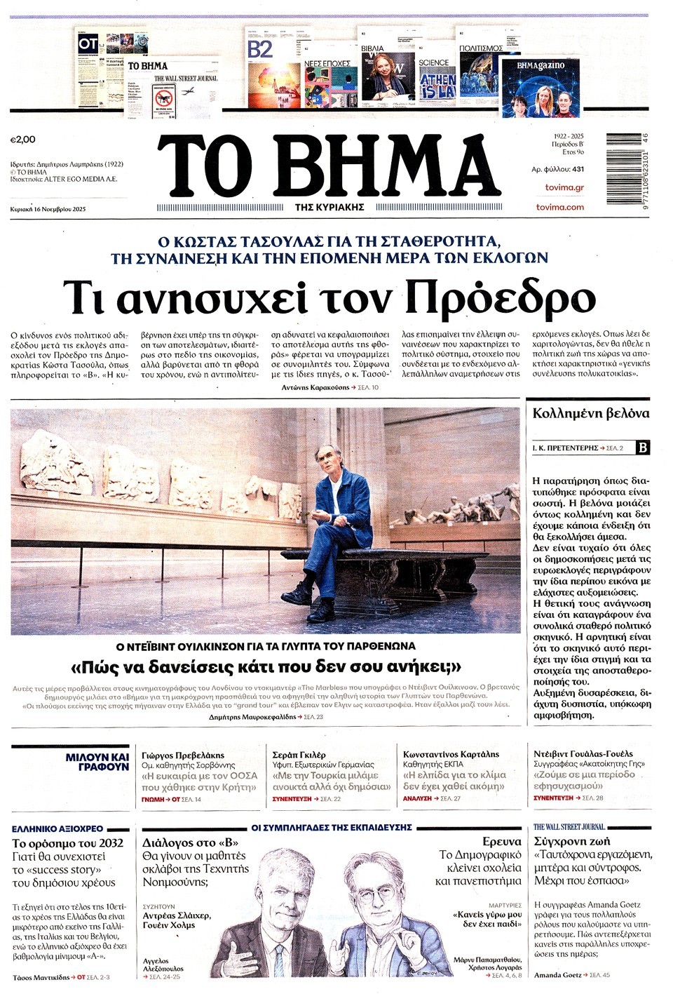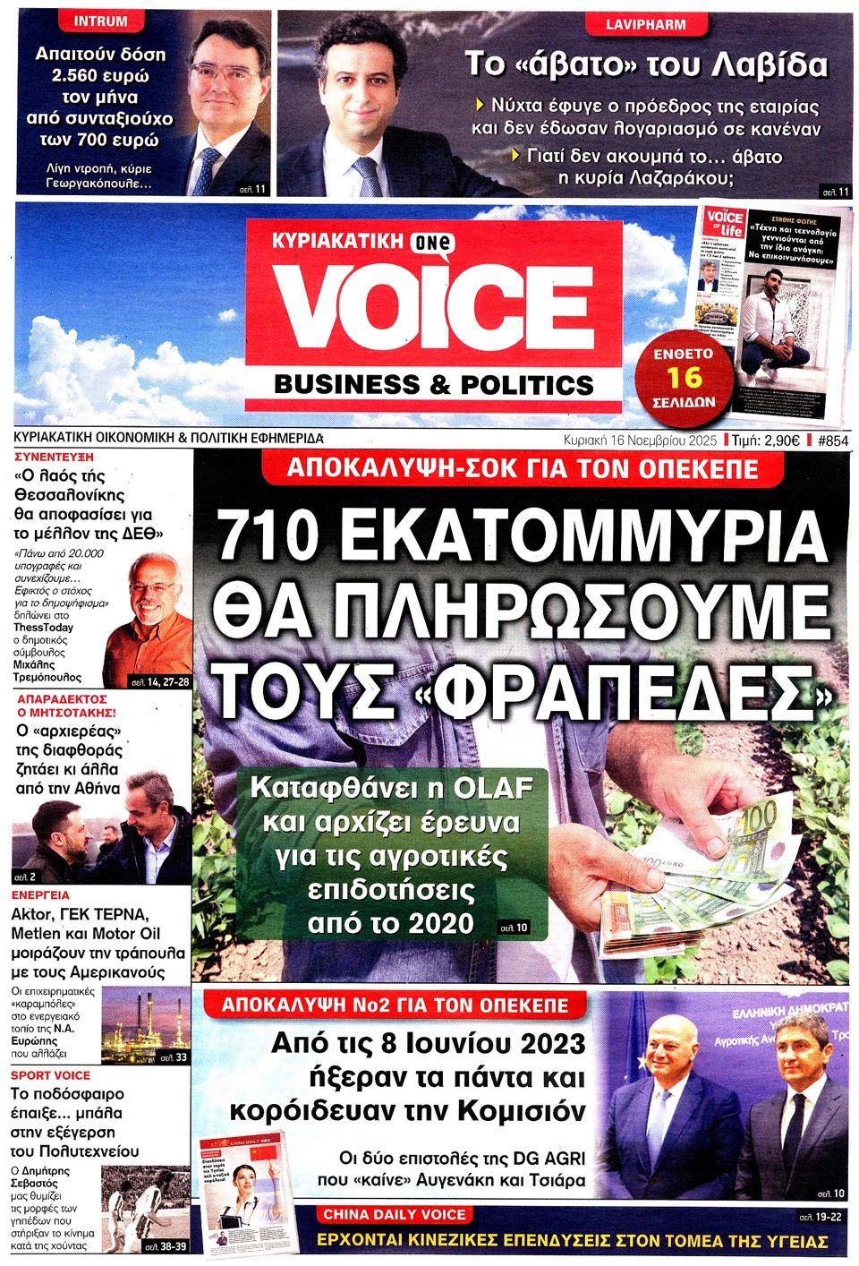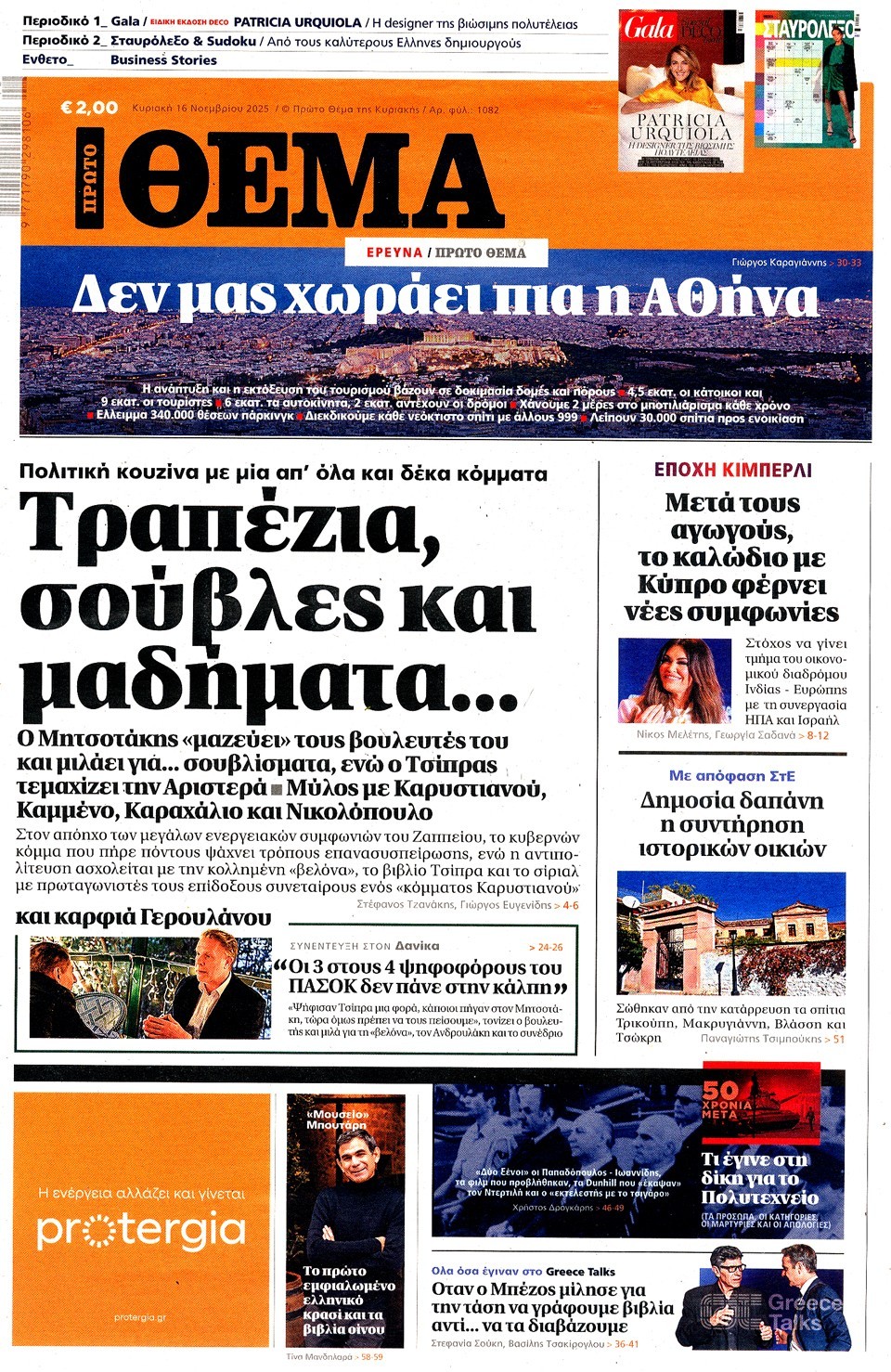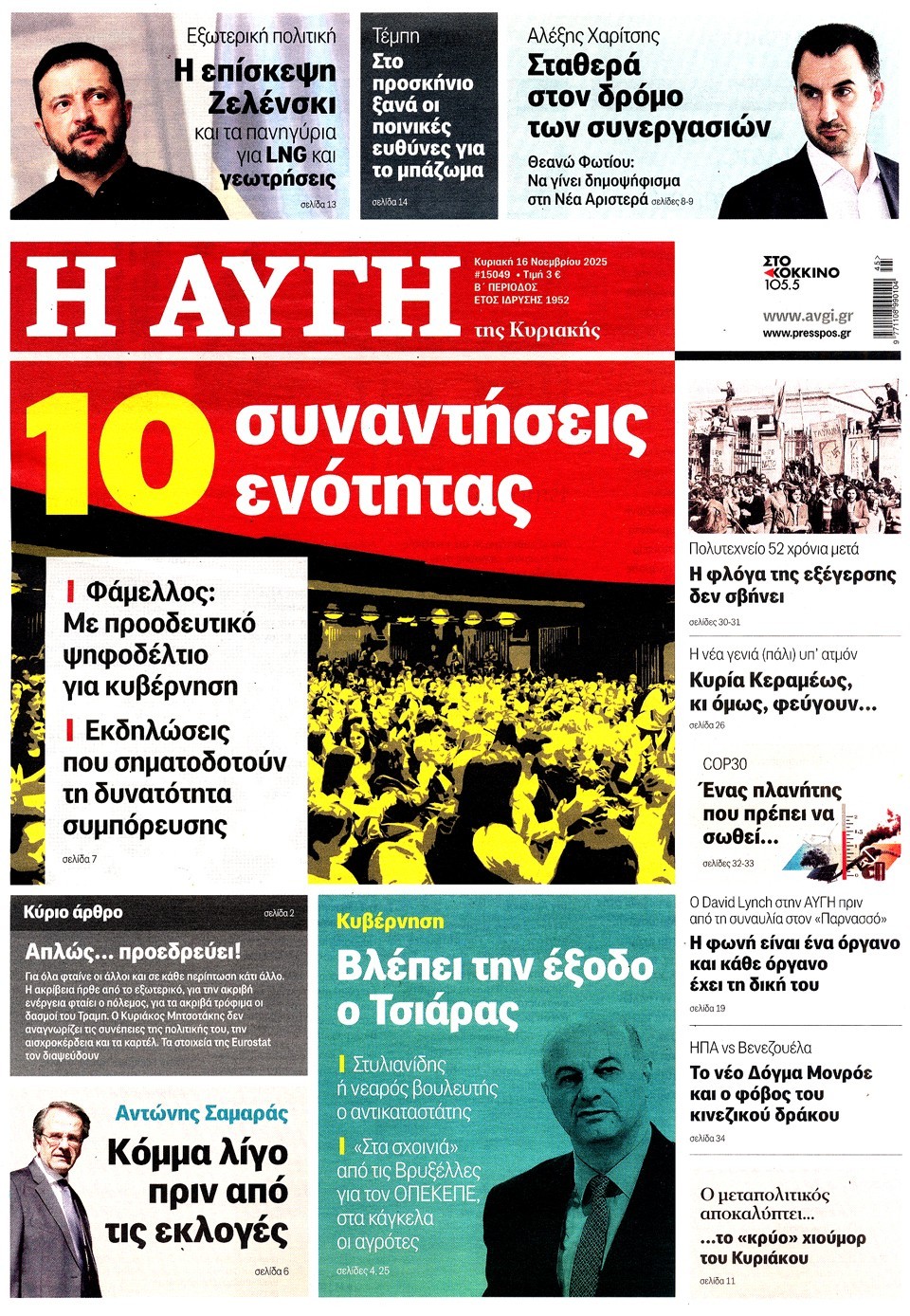 Διαβάστε τα πρωτοσέλιδα των εφημερίδων της Κυριακής 16 Νοεμβρίου 2025