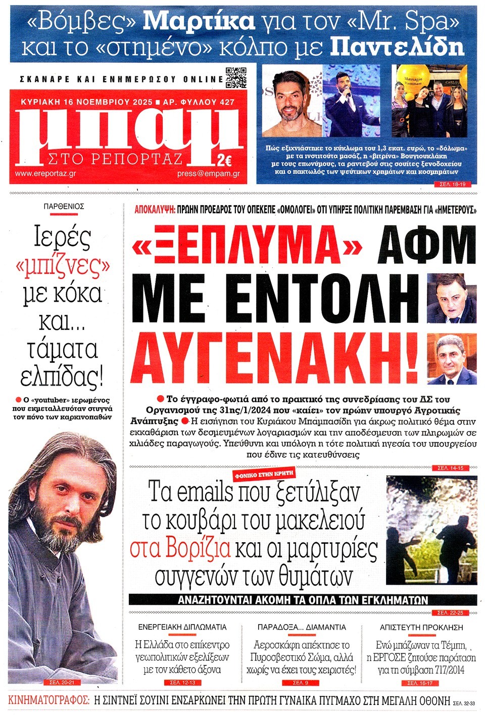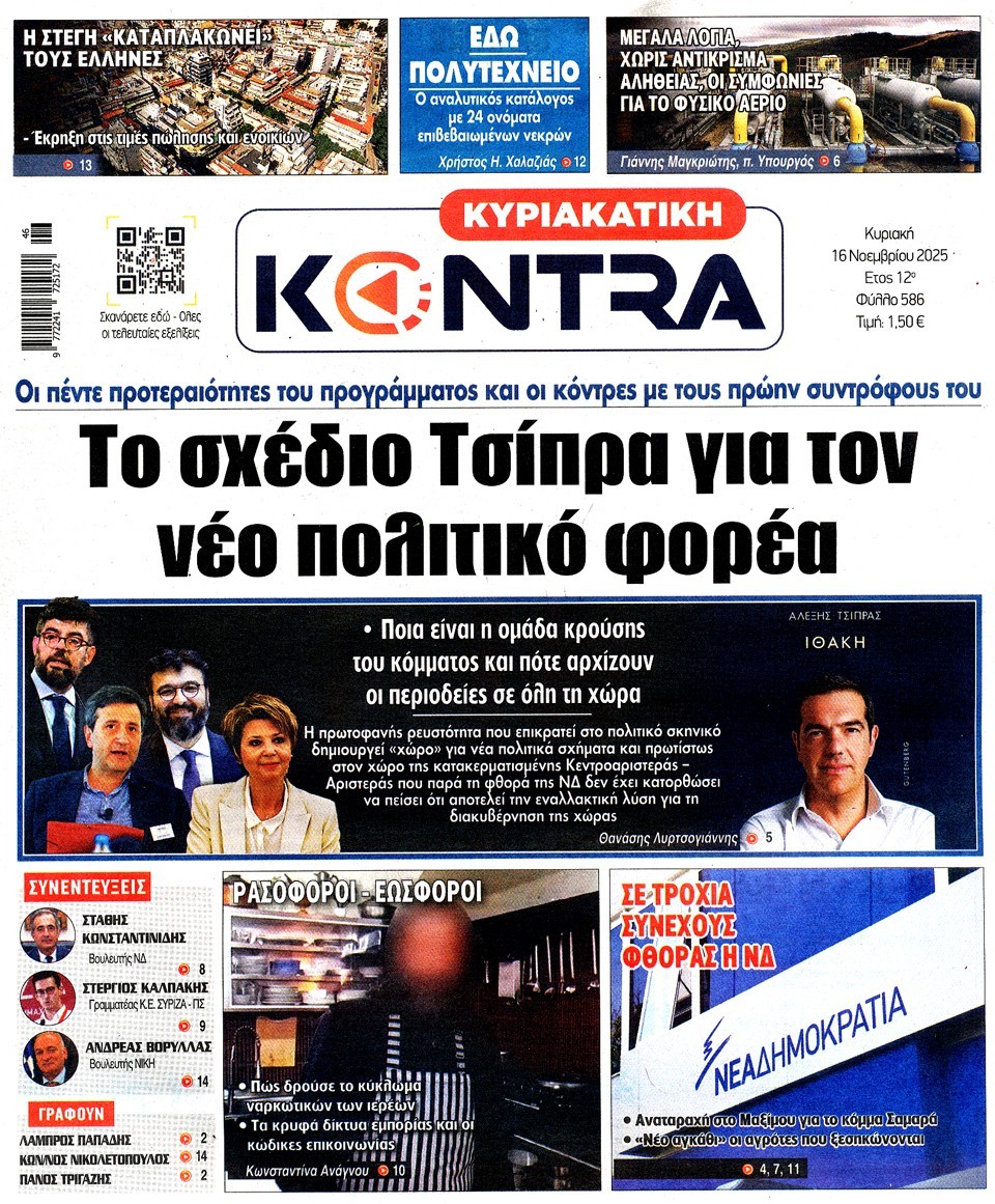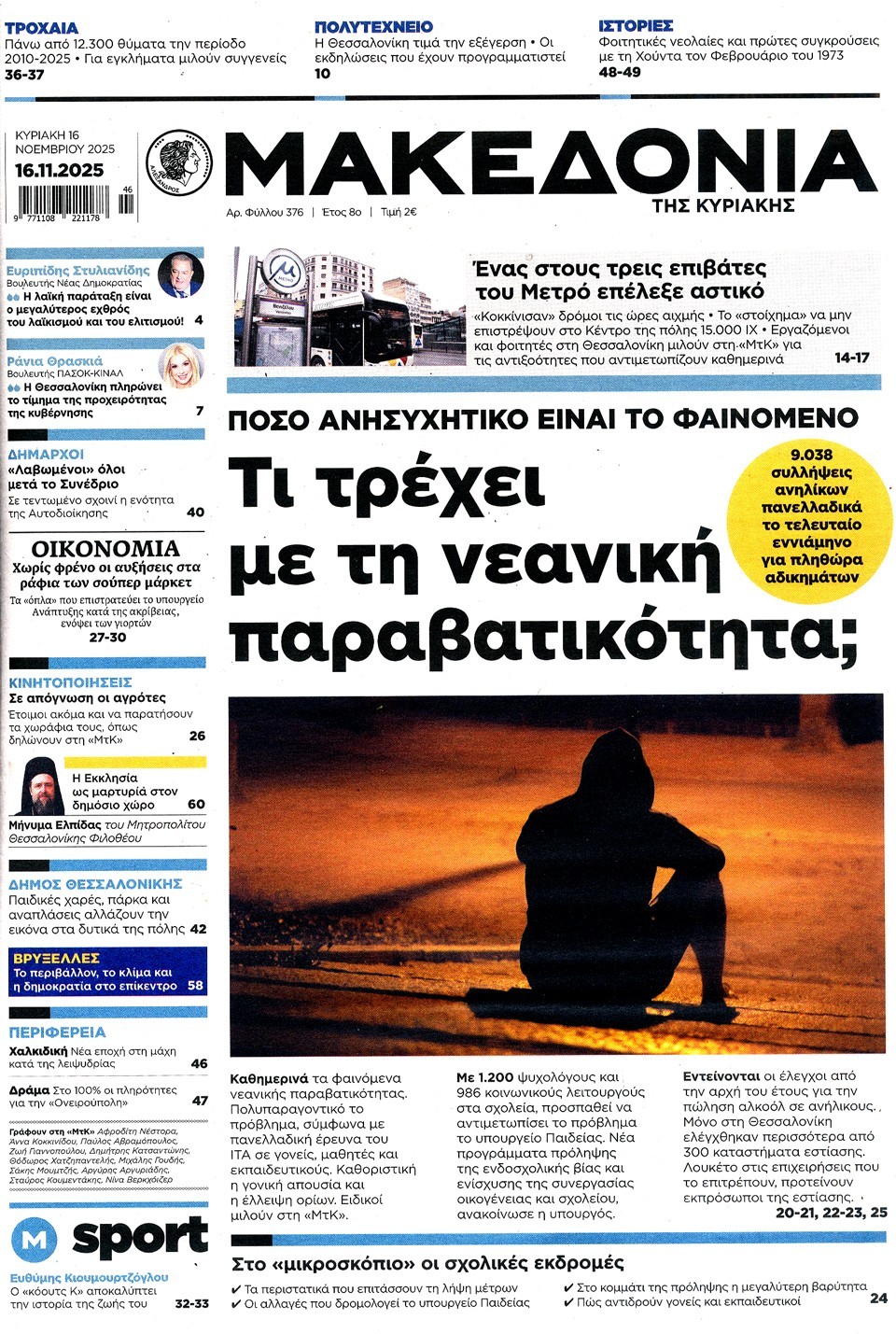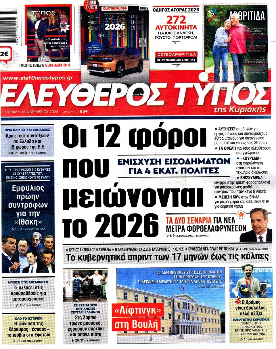 Διαβάστε τα πρωτοσέλιδα των εφημερίδων της Κυριακής 16 Νοεμβρίου 2025