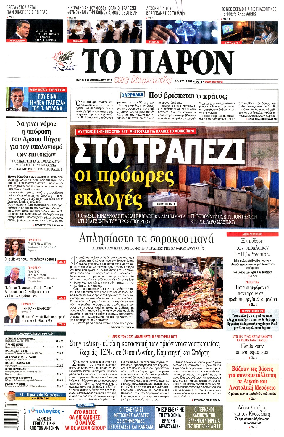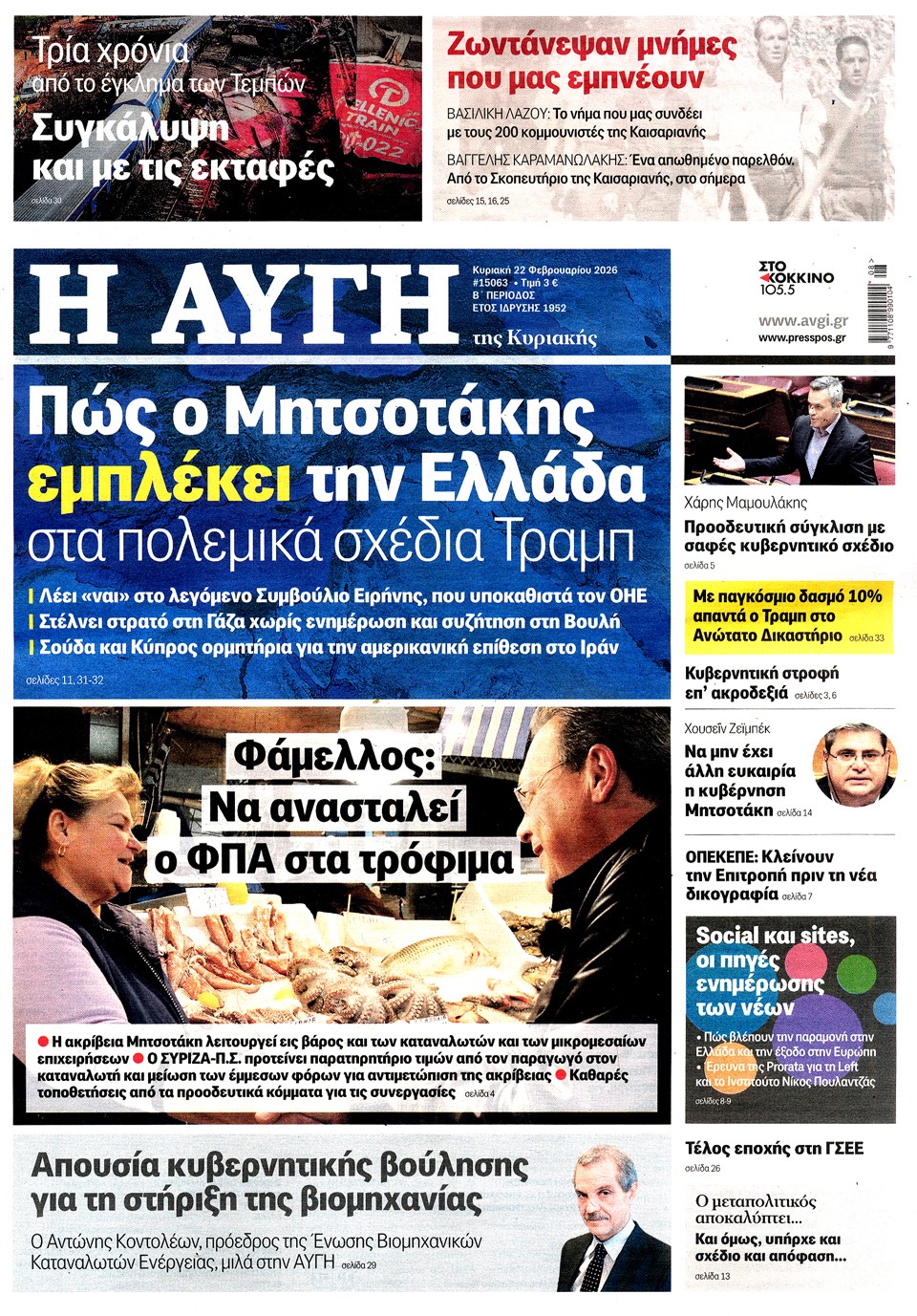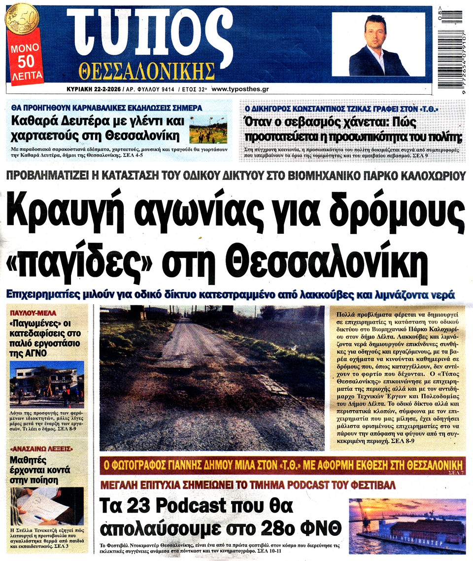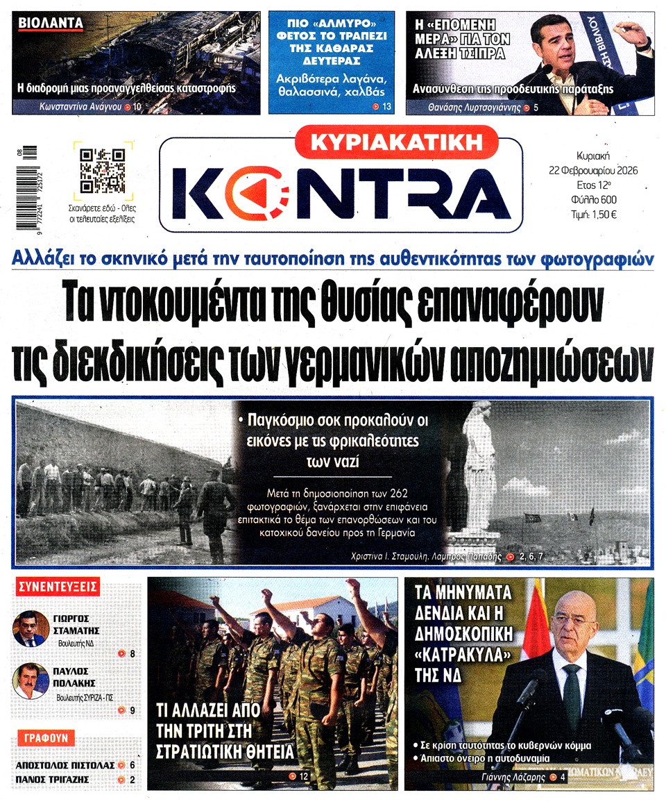 Διαβάστε τα πρωτοσέλιδα των εφημερίδων της Κυριακής 22 Φεβρουαρίου 2026