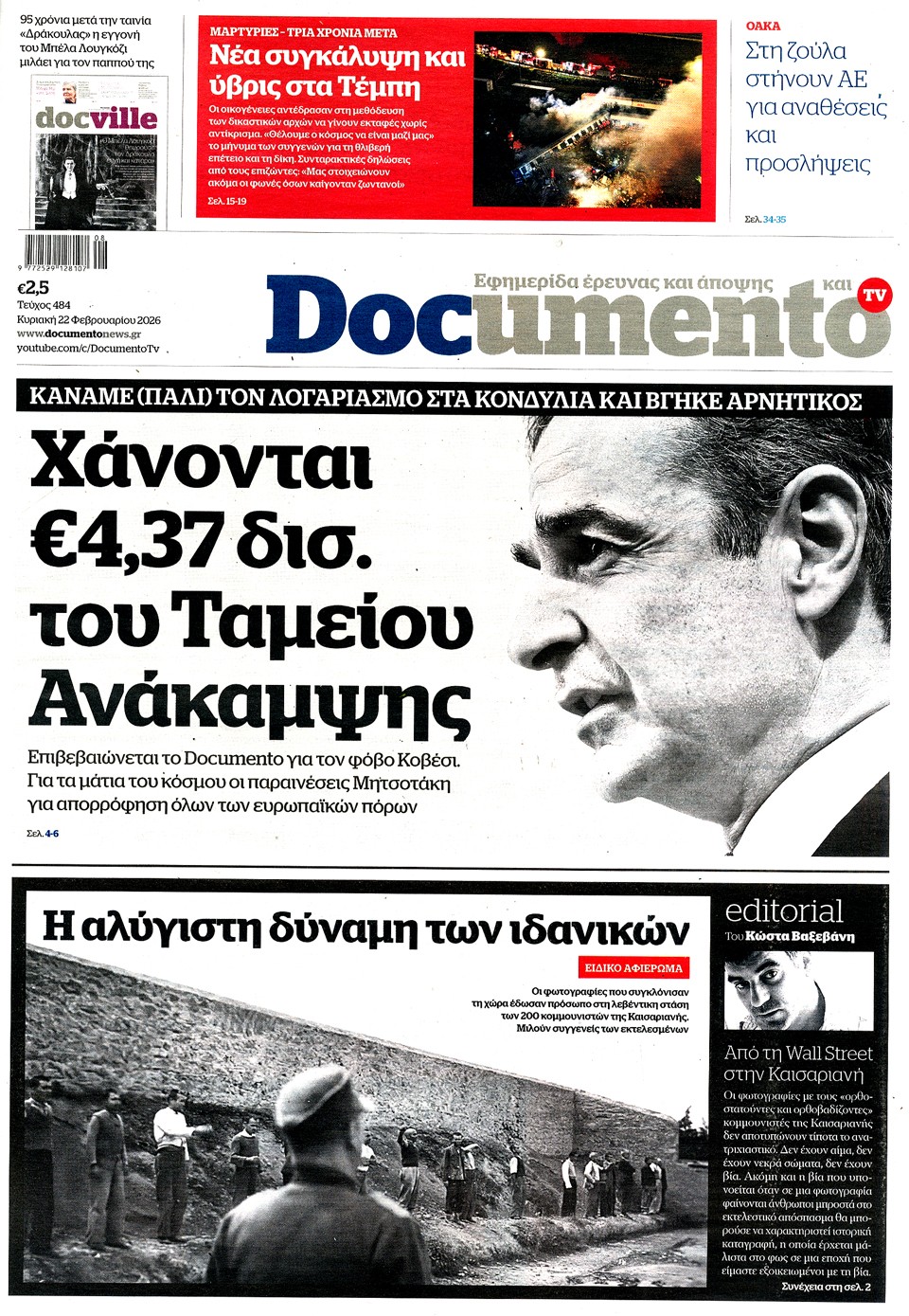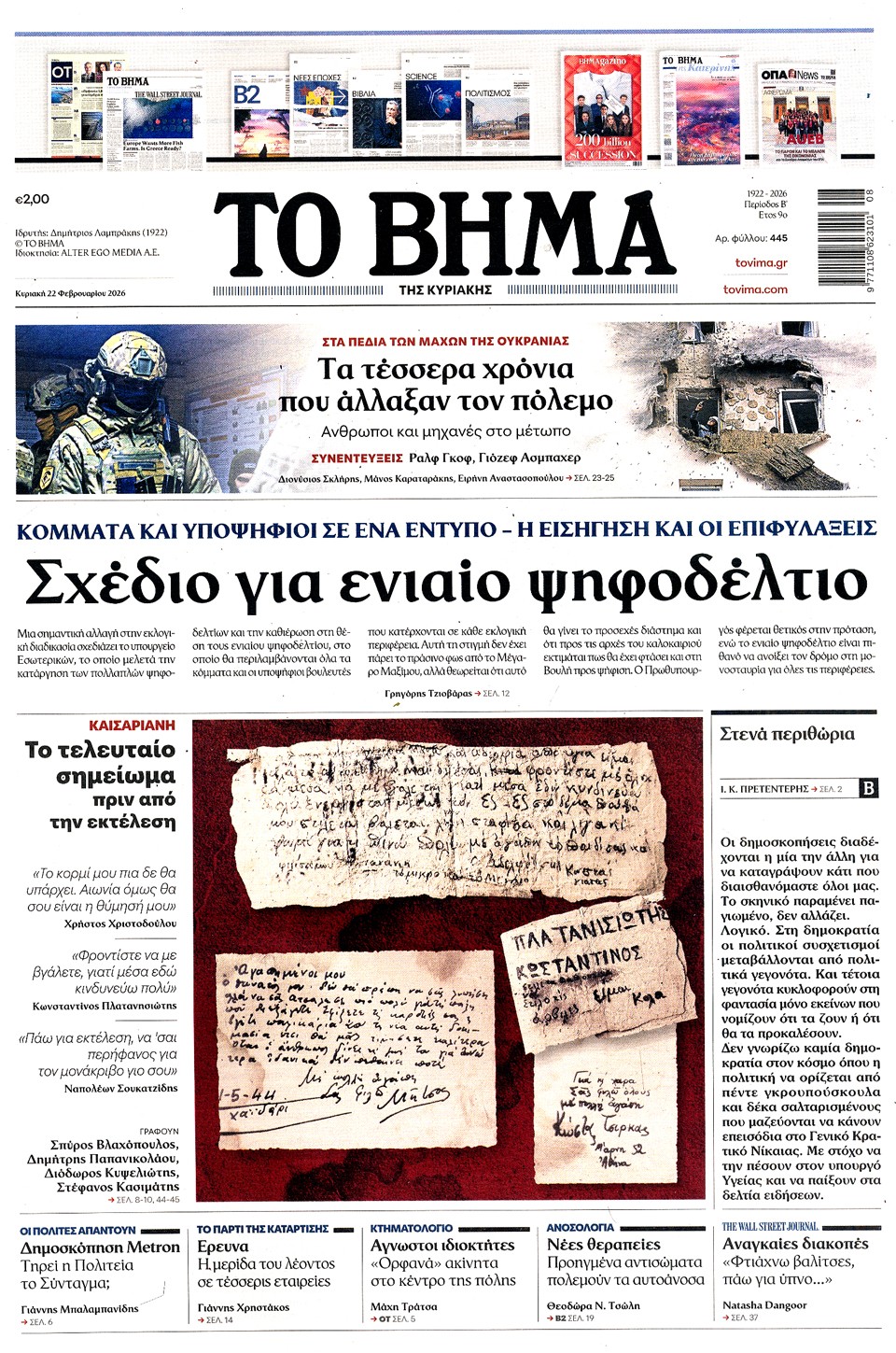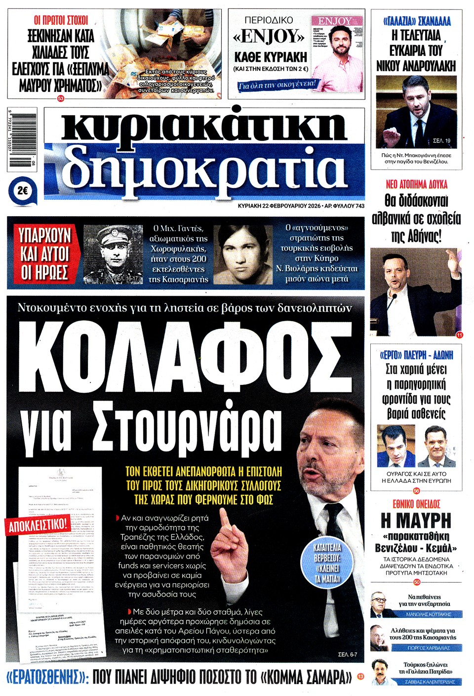 Διαβάστε τα πρωτοσέλιδα των εφημερίδων της Κυριακής 22 Φεβρουαρίου 2026