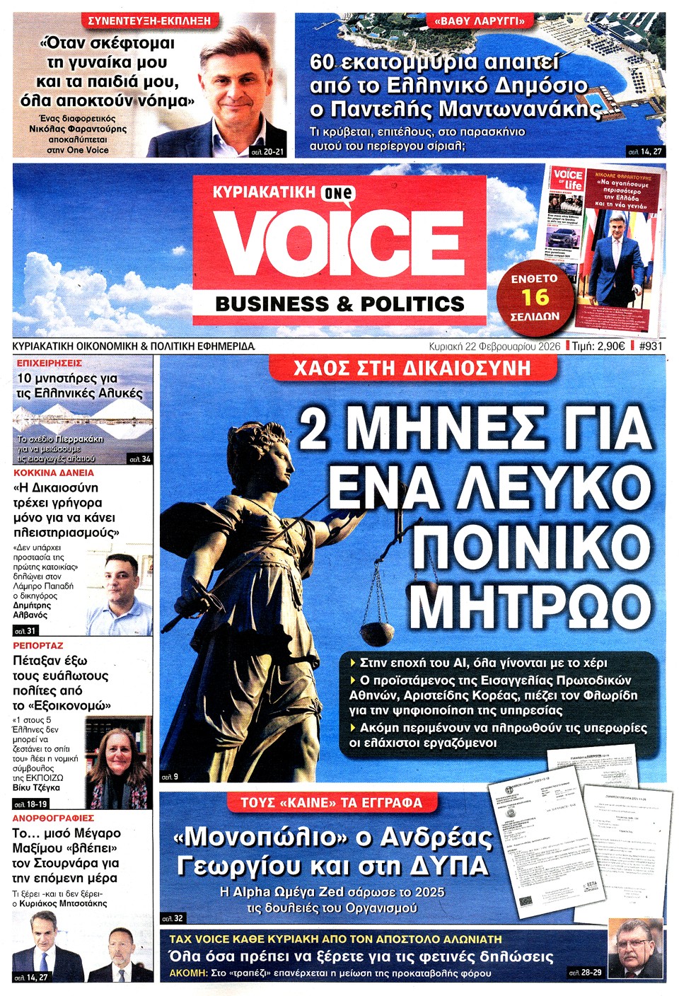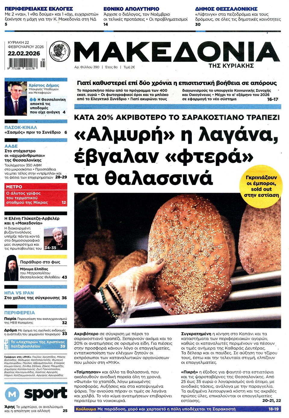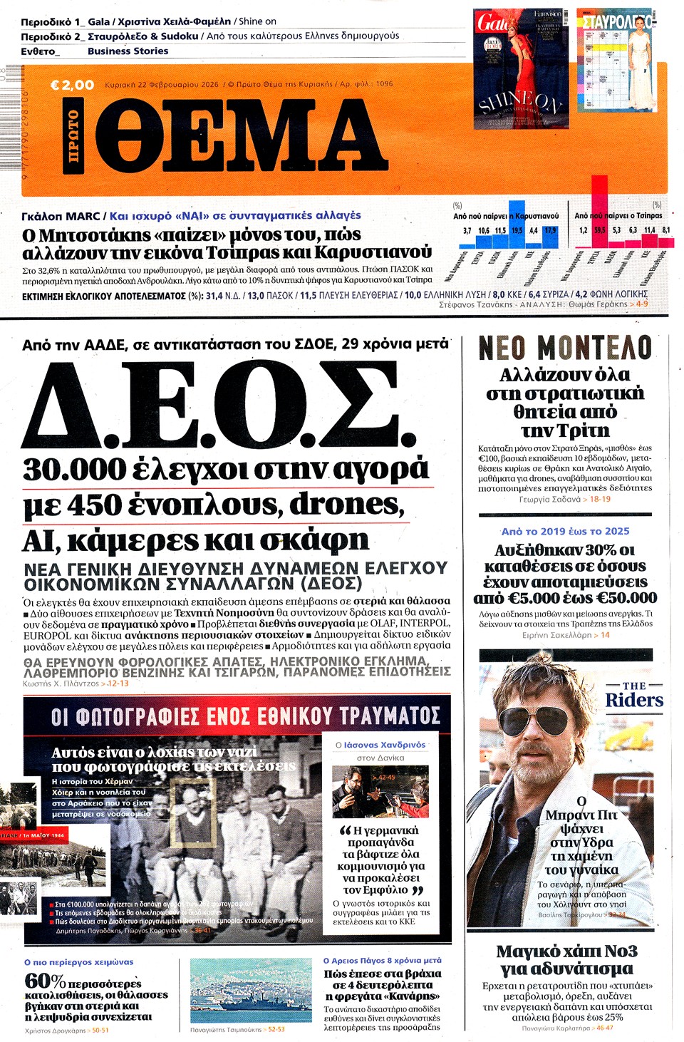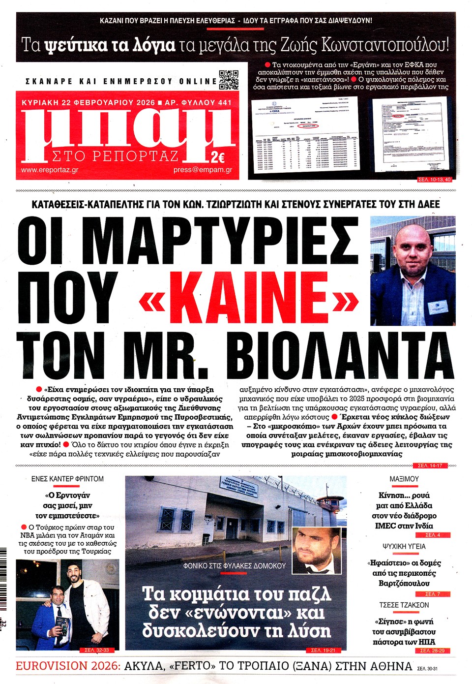 Διαβάστε τα πρωτοσέλιδα των εφημερίδων της Κυριακής 22 Φεβρουαρίου 2026