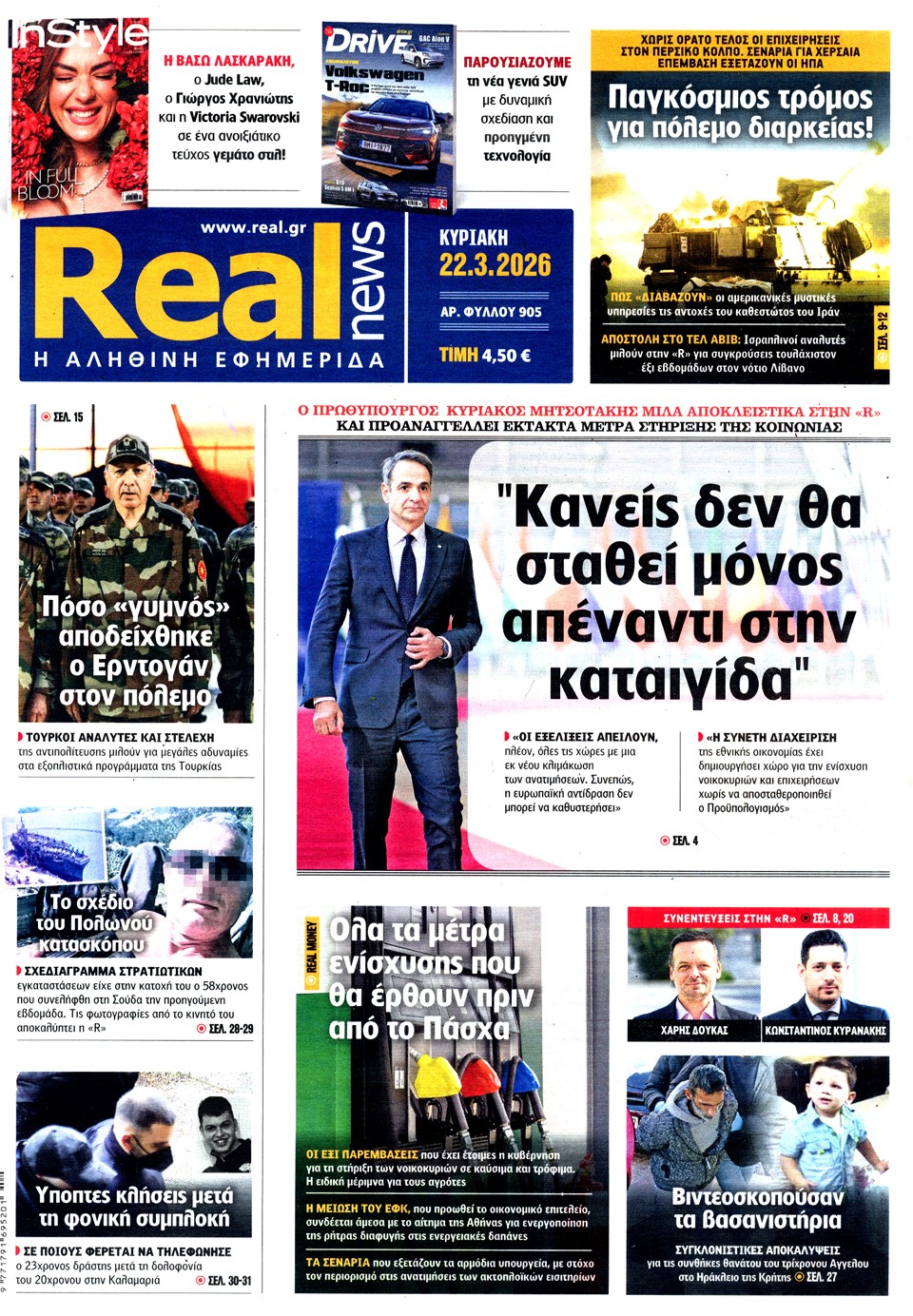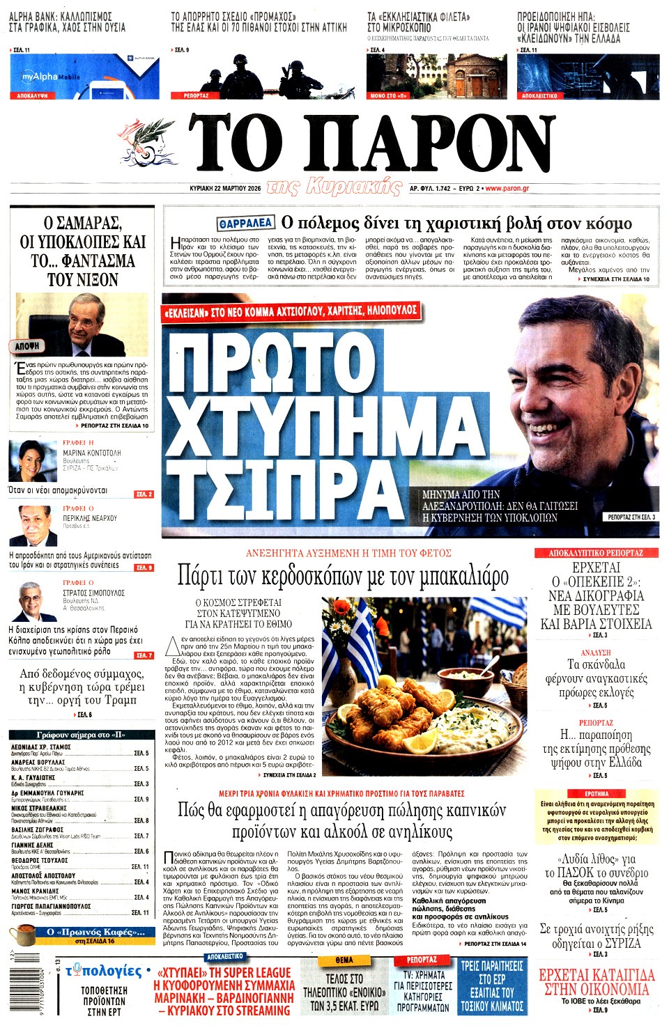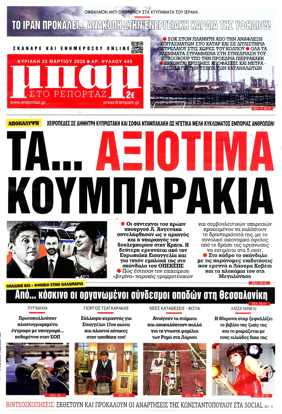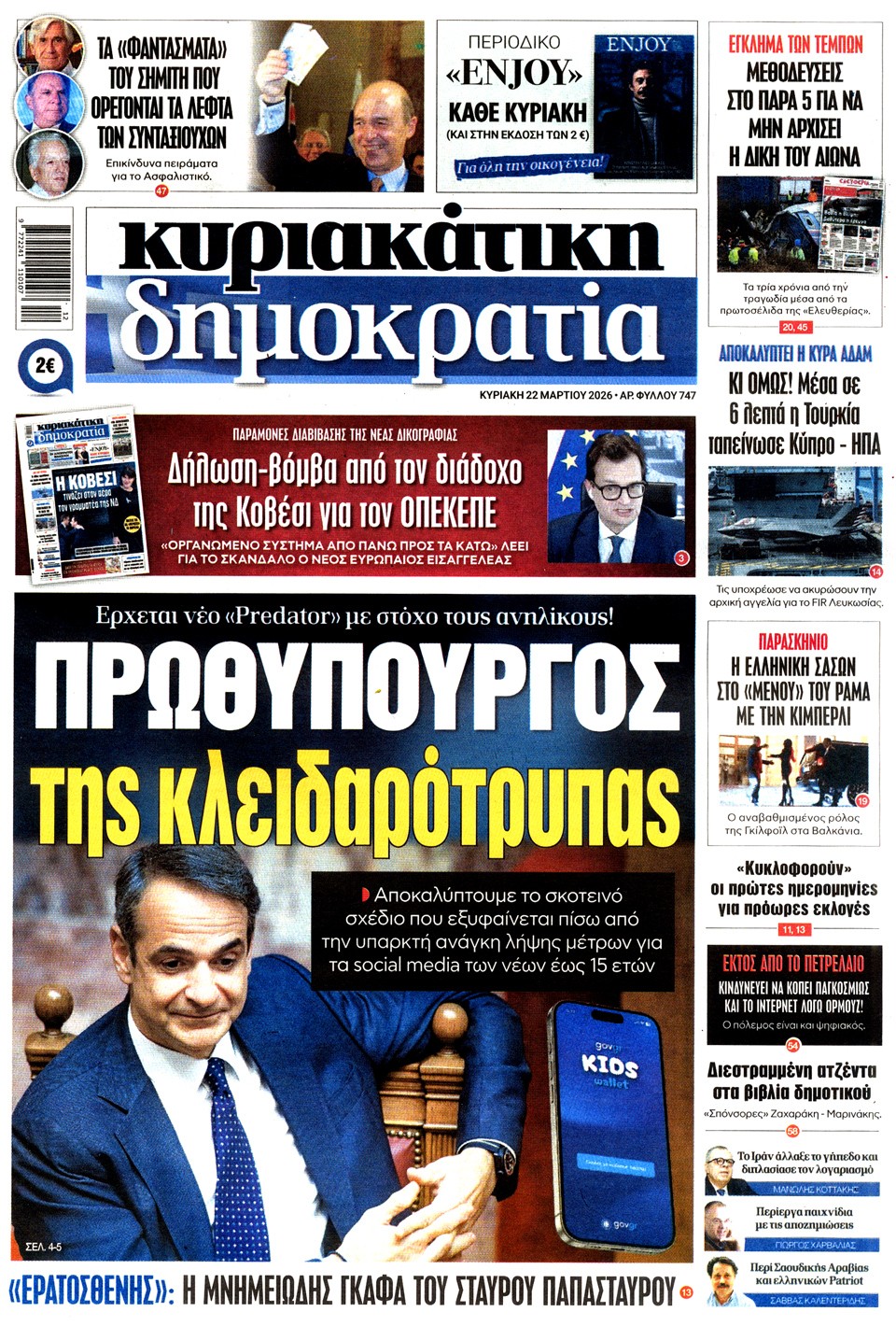 Διαβάστε τα πρωτοσέλιδα των εφημερίδων της Κυριακής 15 Μαρτίου 2026