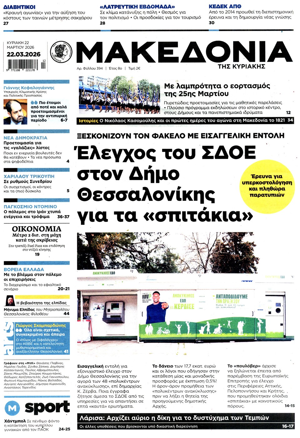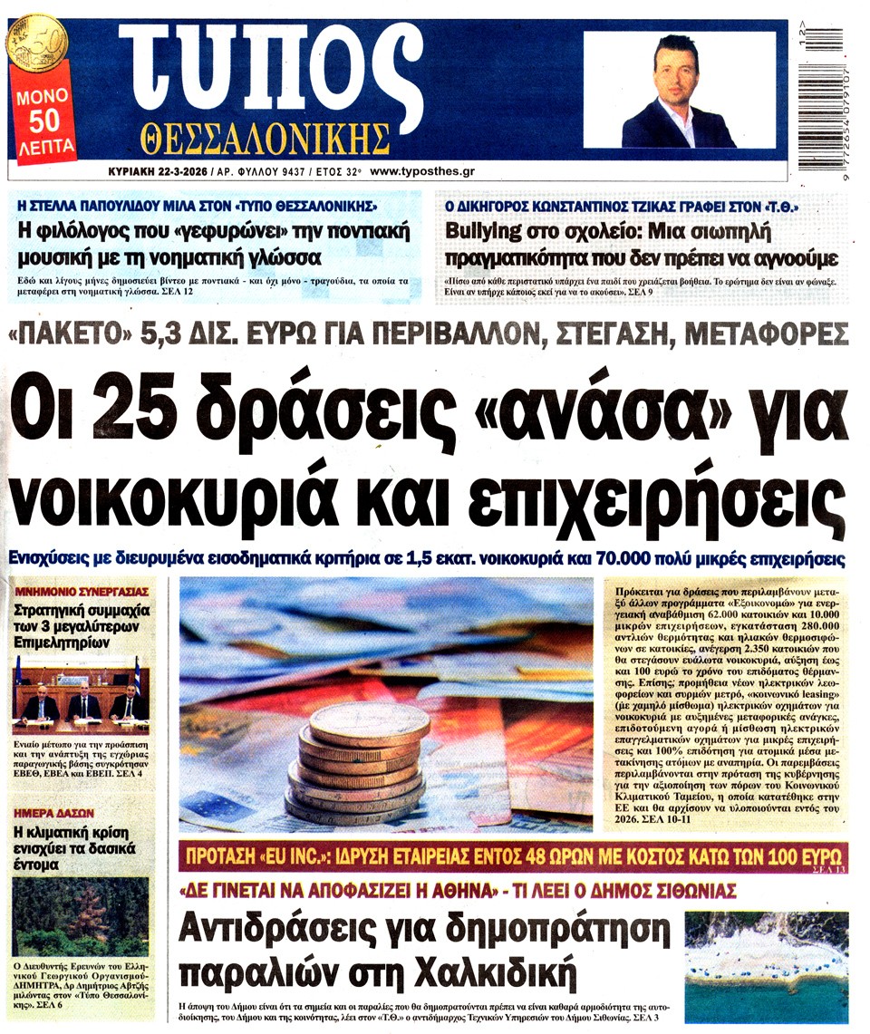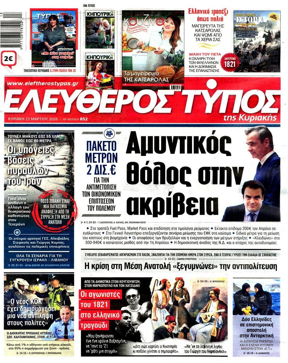 Τα πρωτοσέλιδα των πολιτικών και αθλητικών εφημερίδων (21-03-2026)