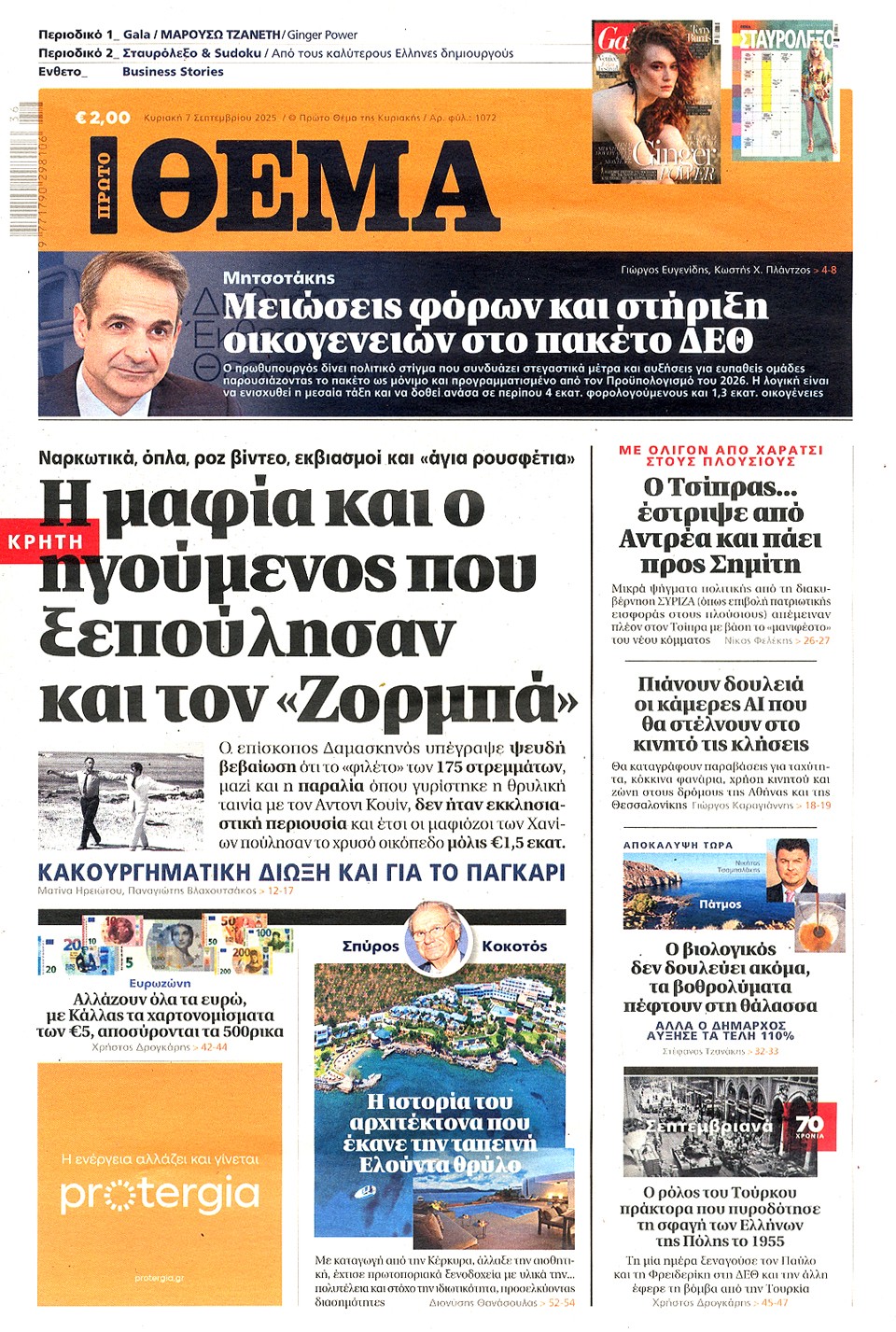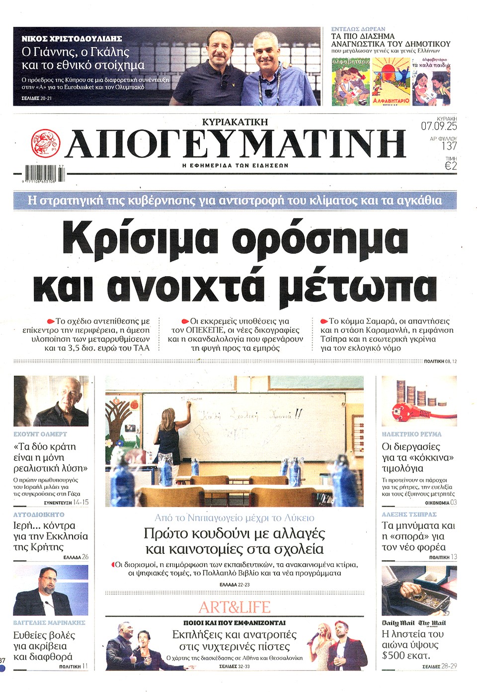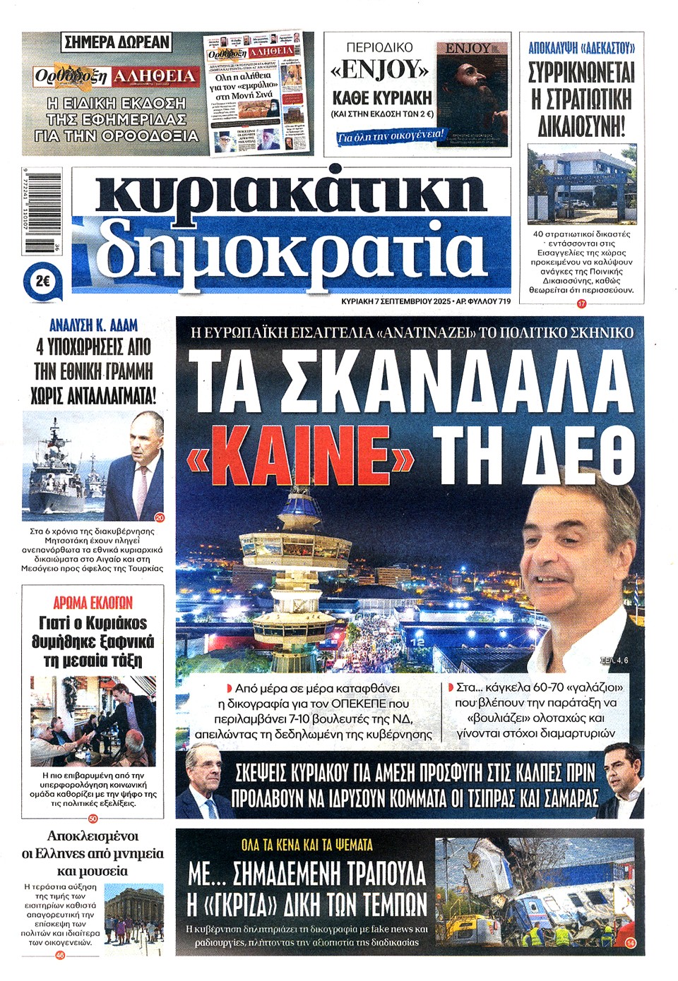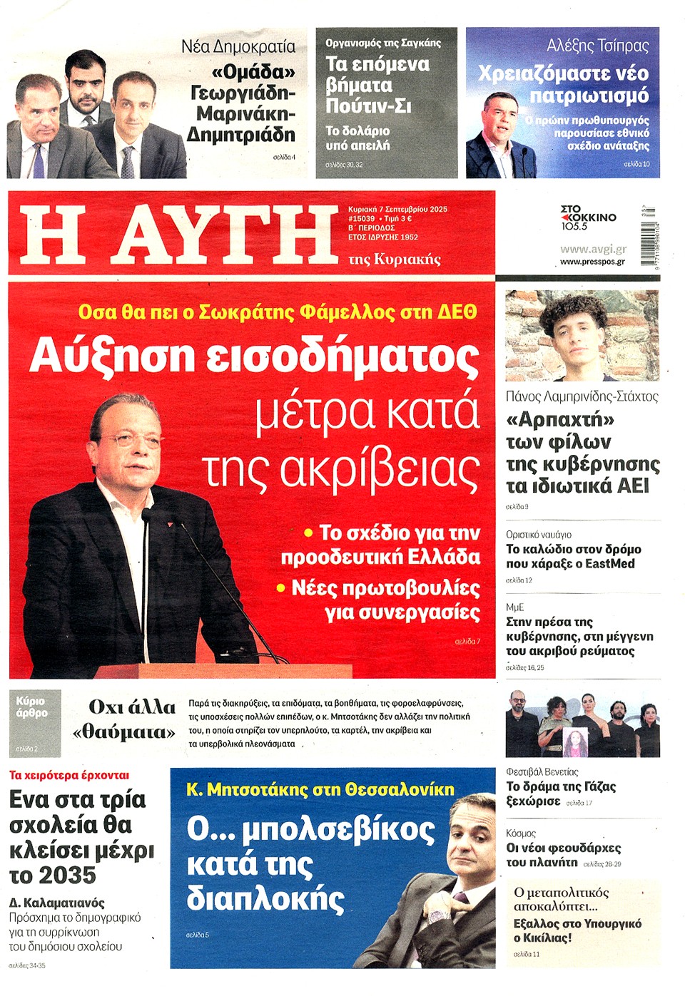 Διαβάστε τα πρωτοσέλιδα των εφημερίδων της Κυριακής 7 Σεπτεμβρίου 2025