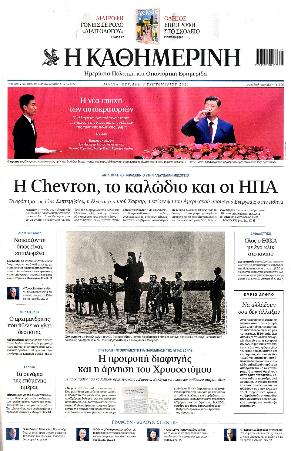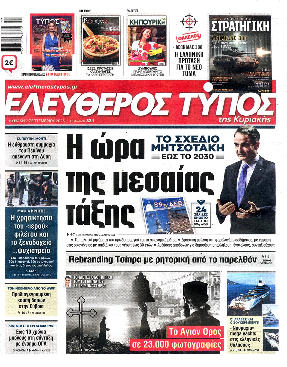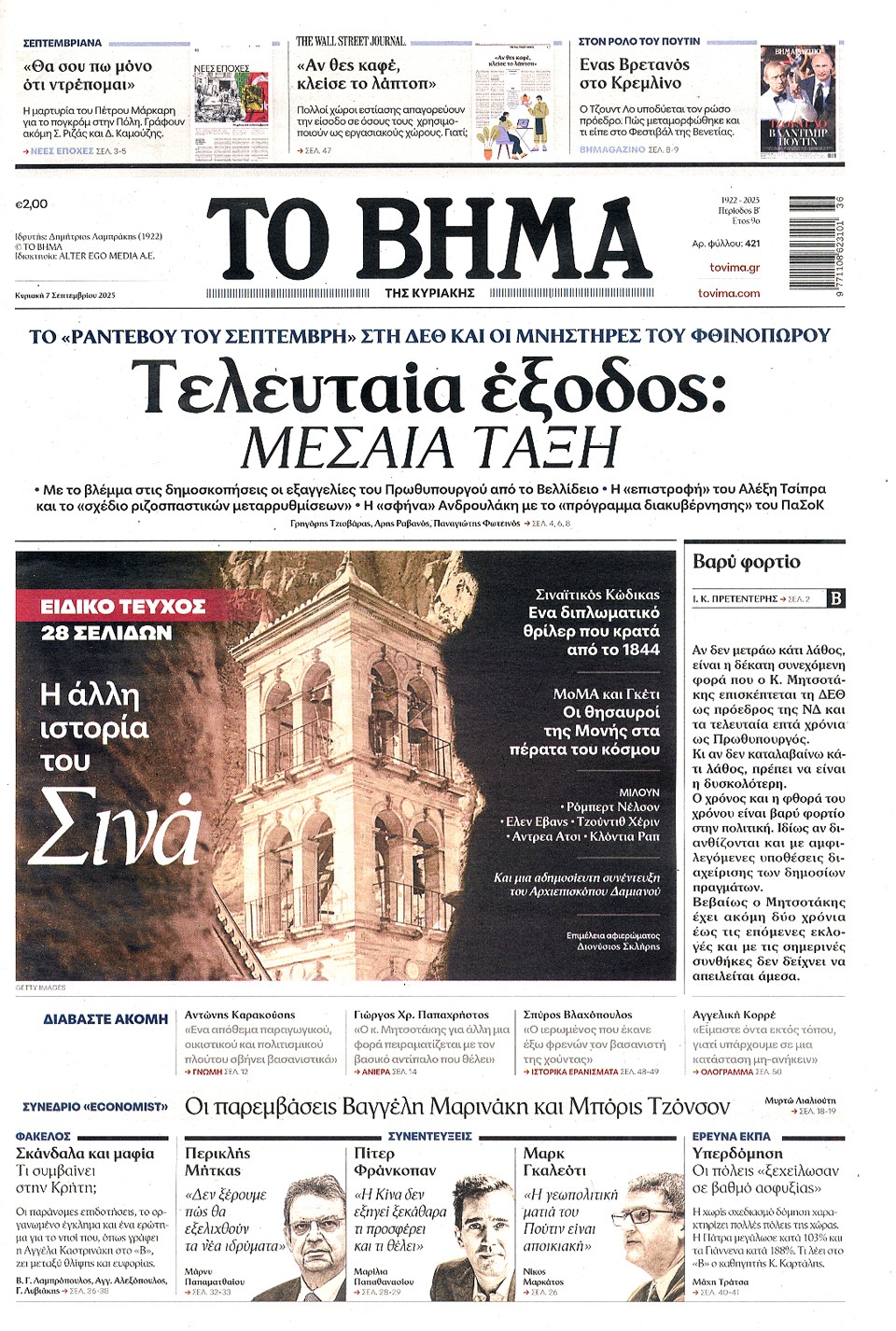 Διαβάστε τα πρωτοσέλιδα των εφημερίδων της Κυριακής 7 Σεπτεμβρίου 2025