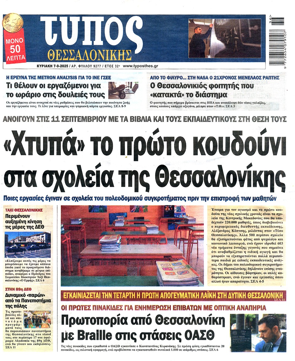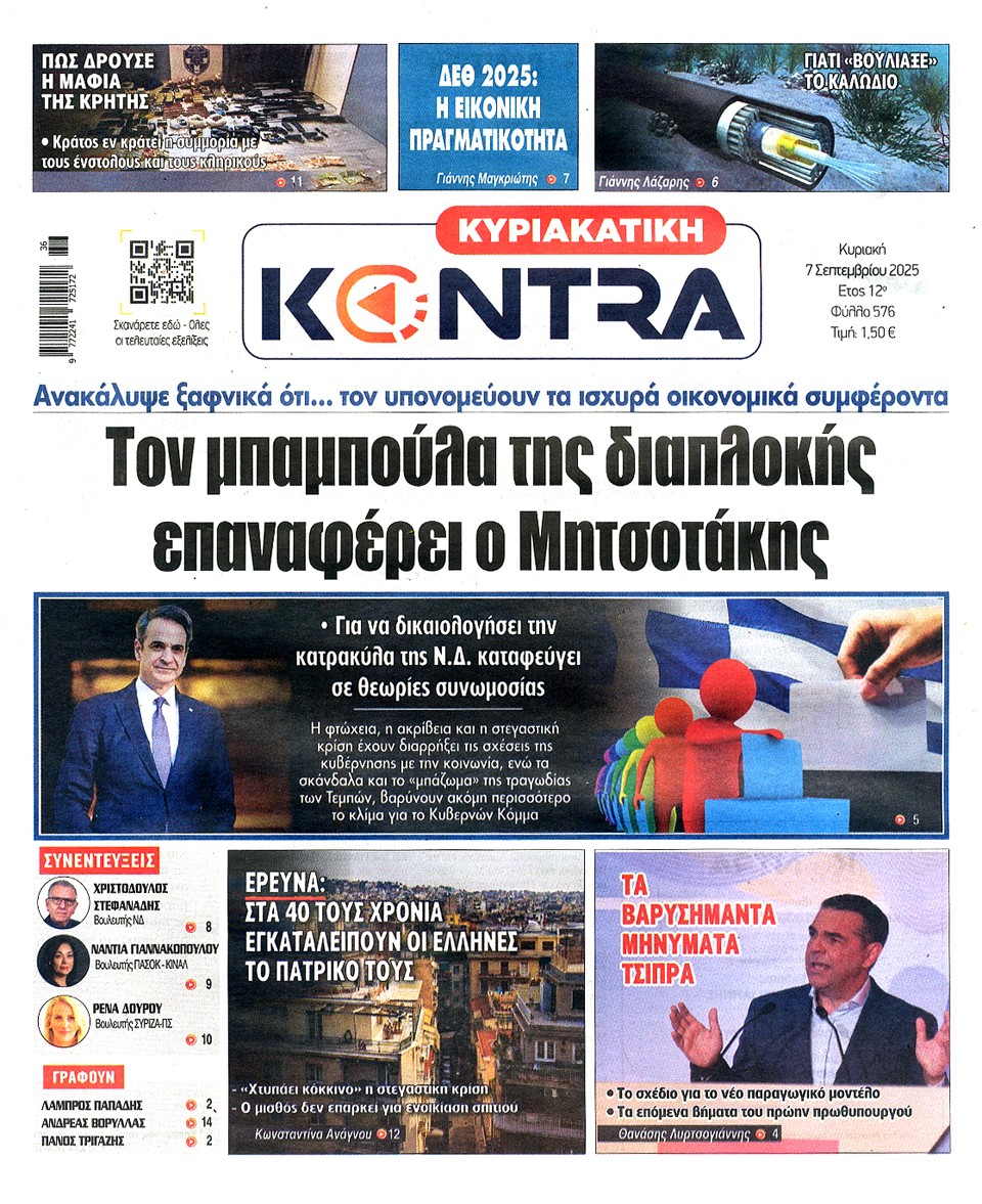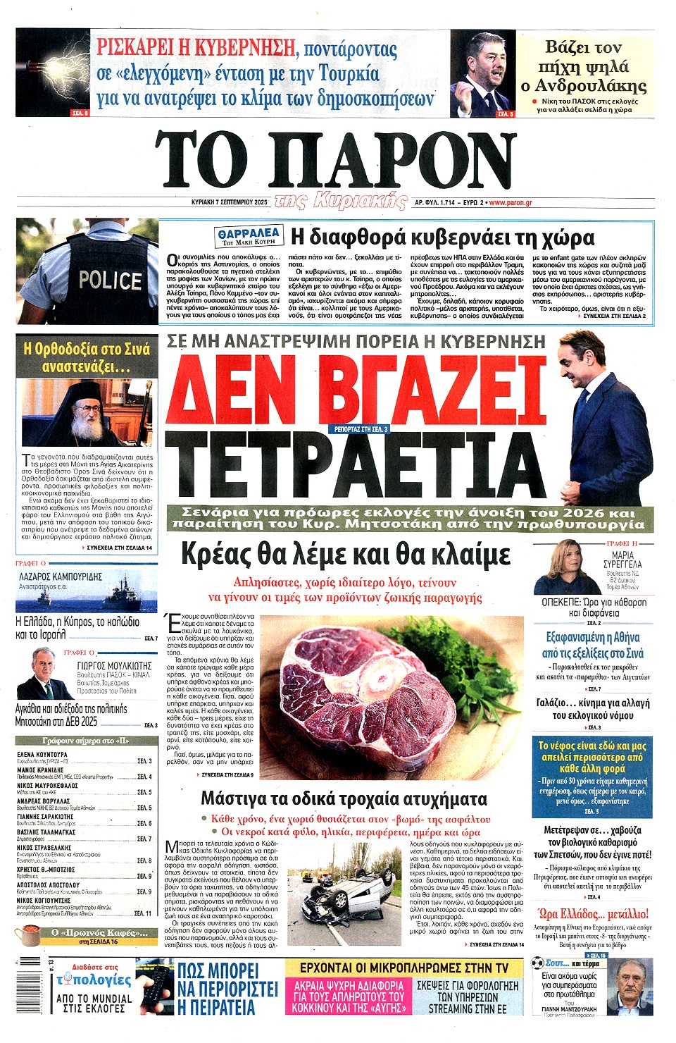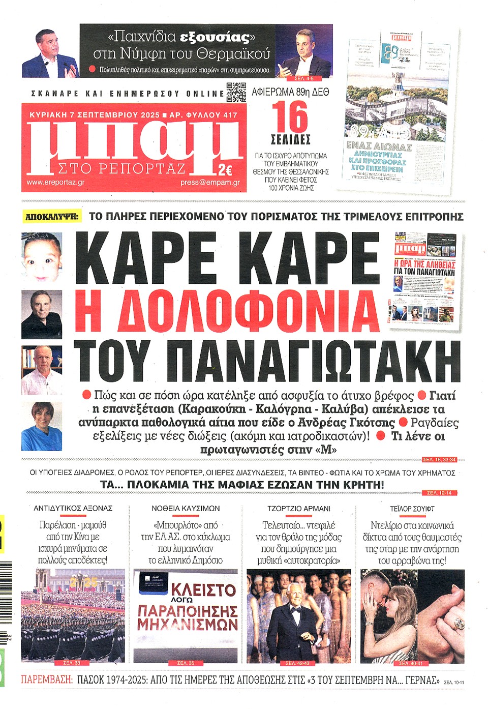 Διαβάστε τα πρωτοσέλιδα των εφημερίδων της Κυριακής 7 Σεπτεμβρίου 2025