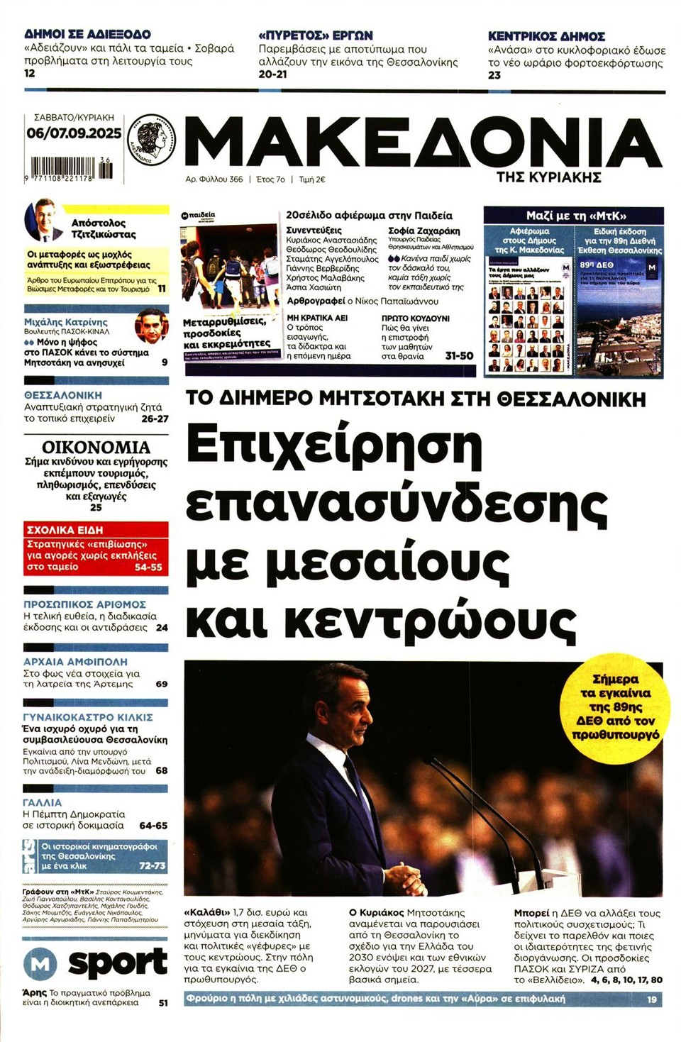 Τα πρωτοσέλιδα των πολιτικών και αθλητικών εφημερίδων (06-09-2025)