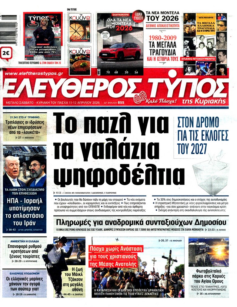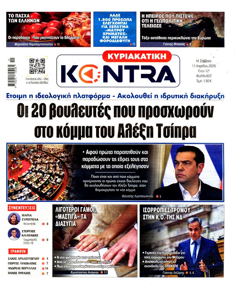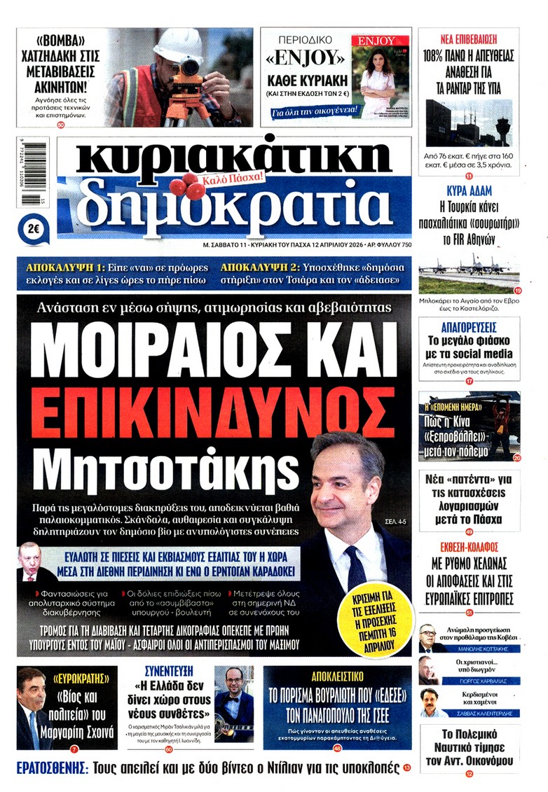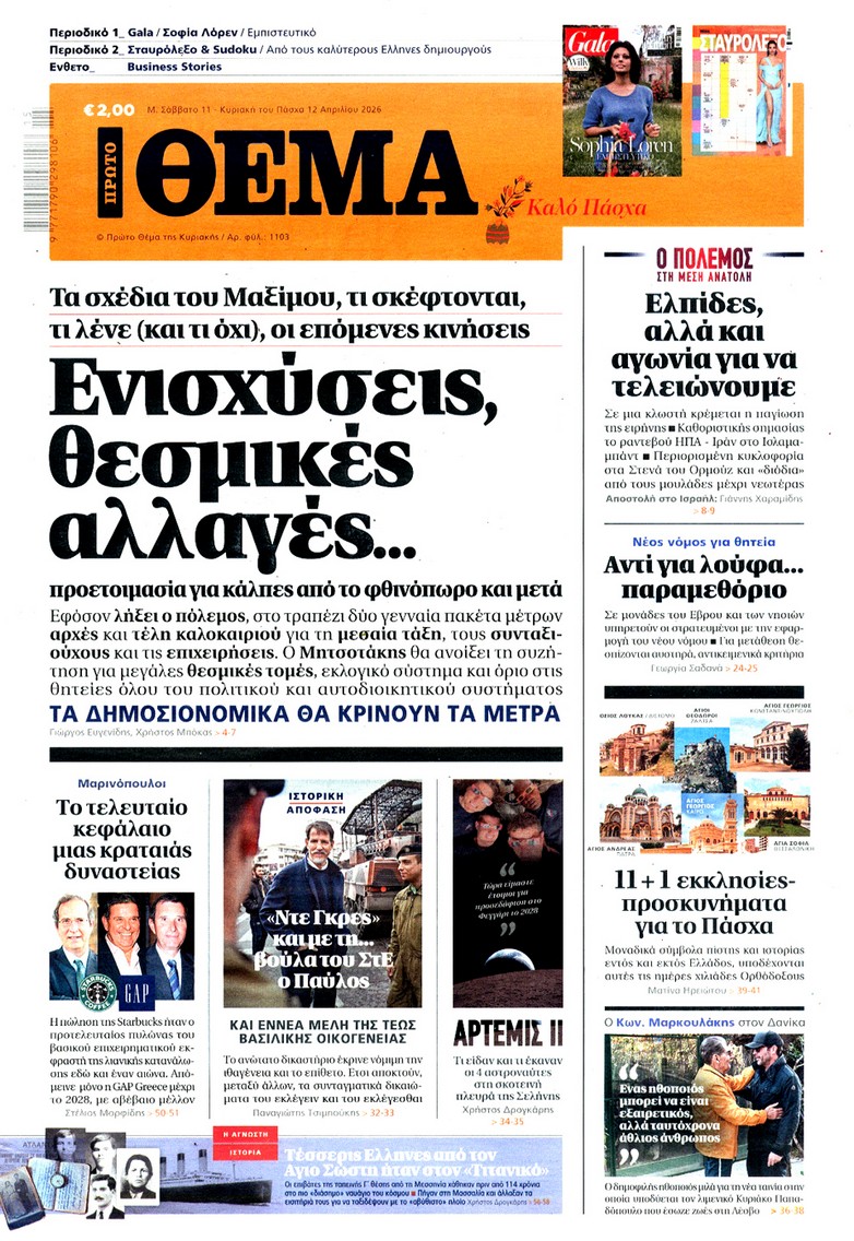 Δείτε τα πρωτοσέλιδα των κυριακάτικων εφημερίδων που κυκλοφορούν εκτάκτως το Μεγάλο Σάββατο 11 Απριλίου.