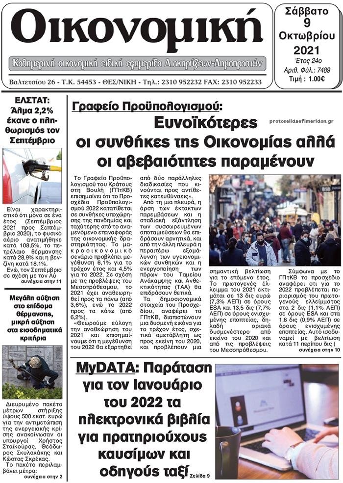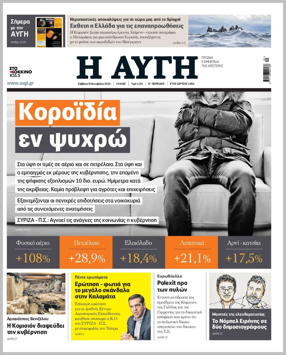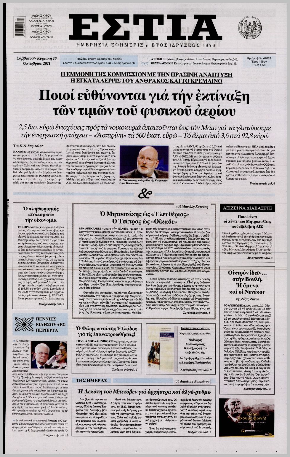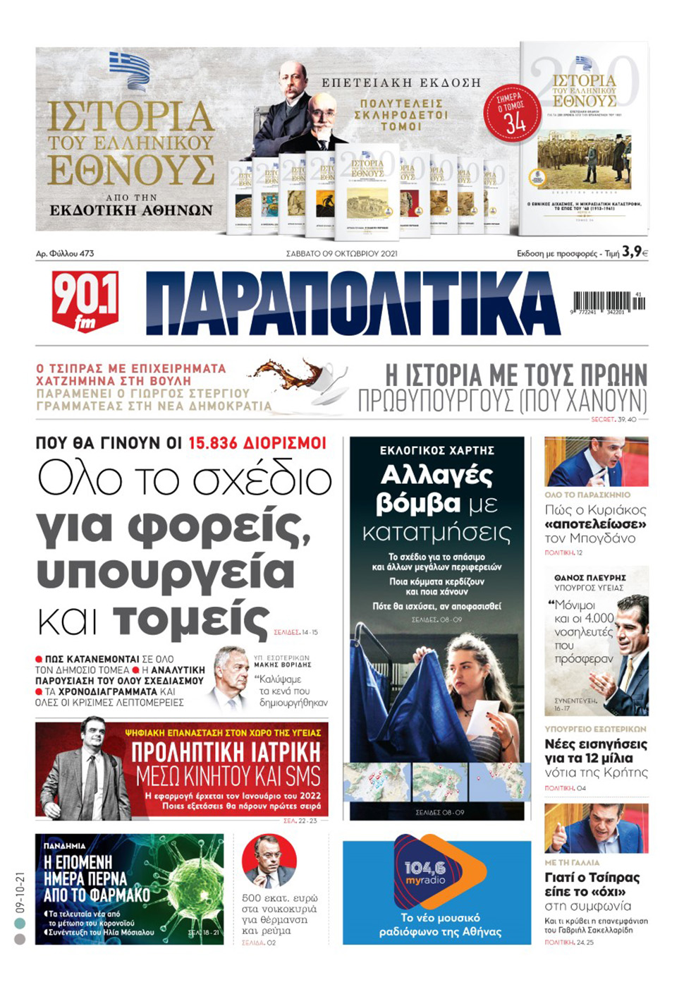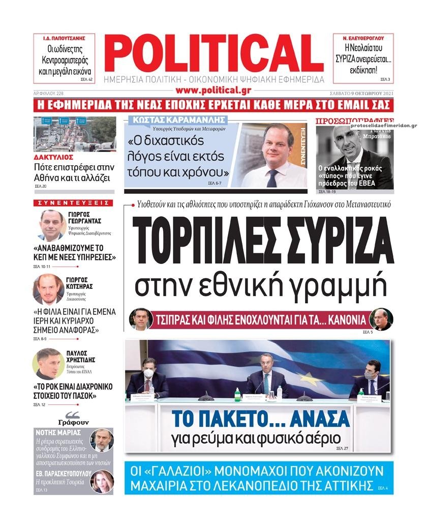 Τα πρωτοσέλιδα των πολιτικών και αθλητικών εφημερίδων (09-10-2021)