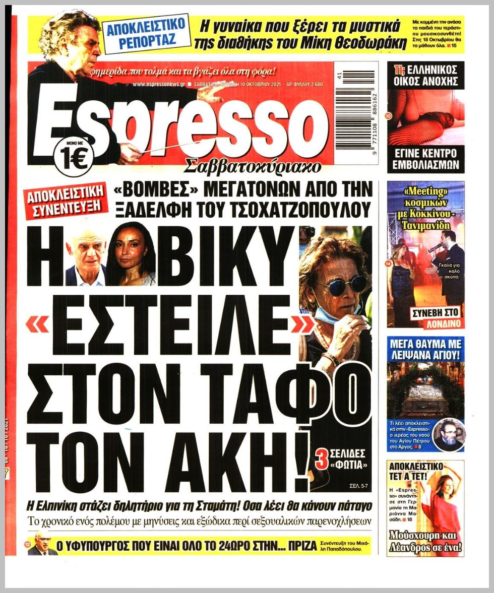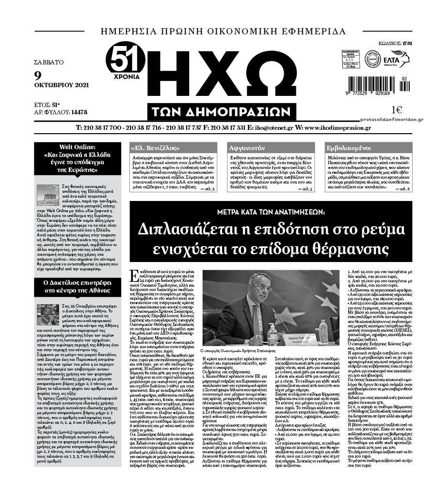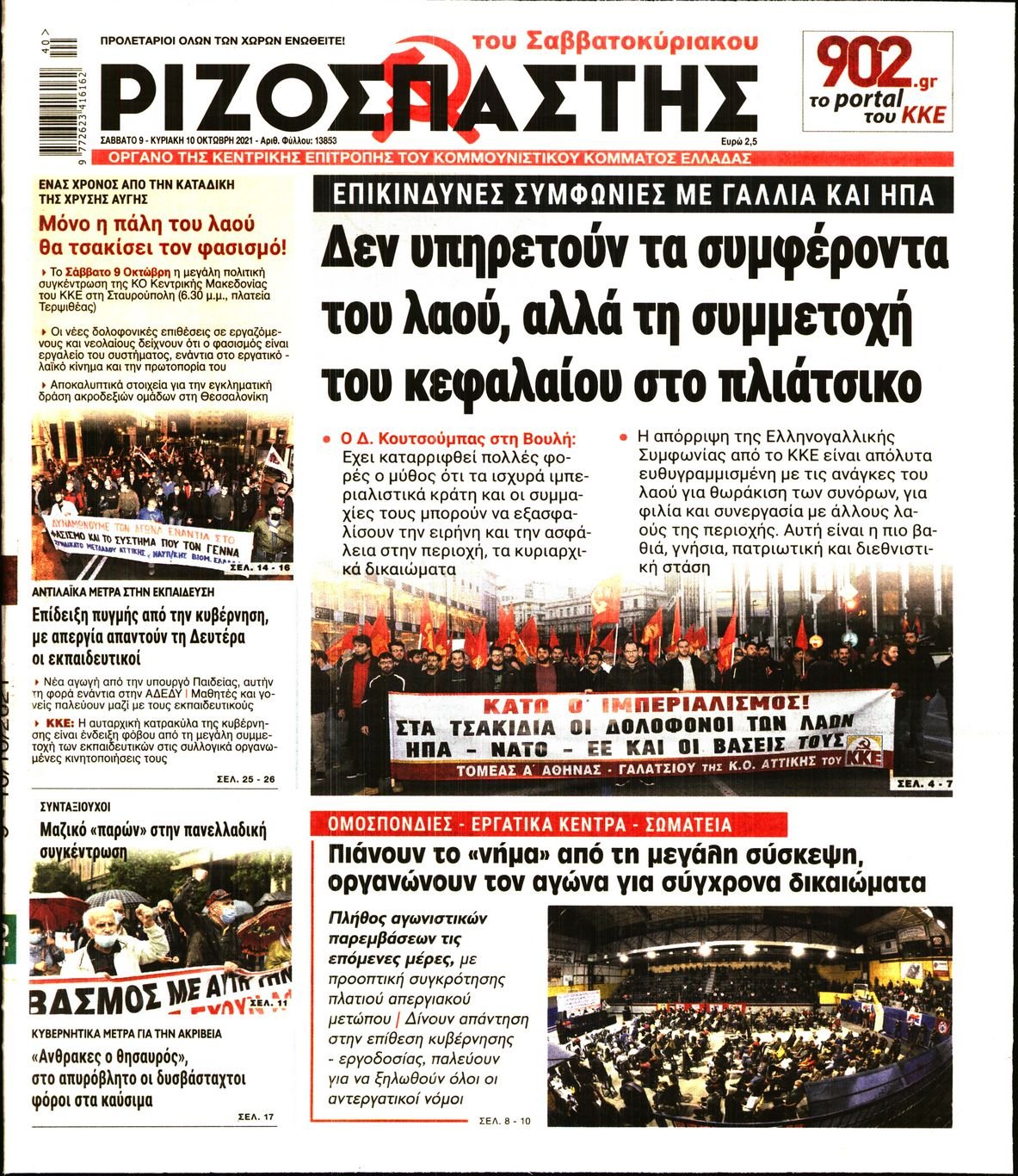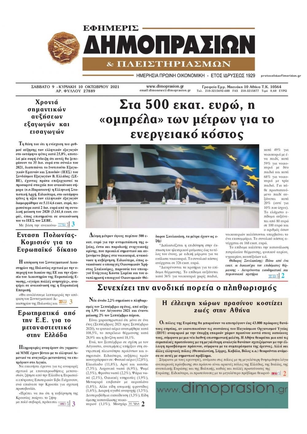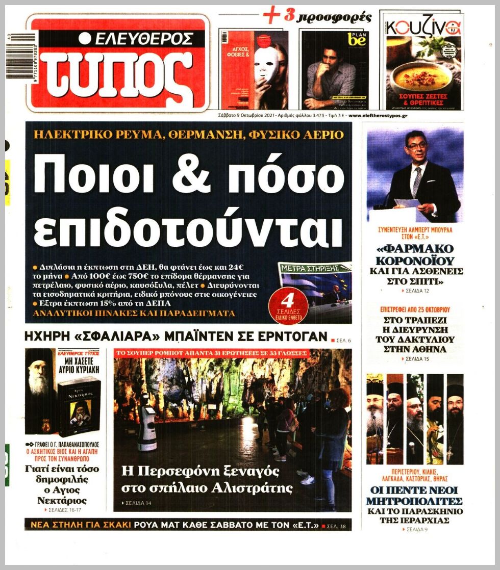 Τα πρωτοσέλιδα των πολιτικών και αθλητικών εφημερίδων (09-10-2021)