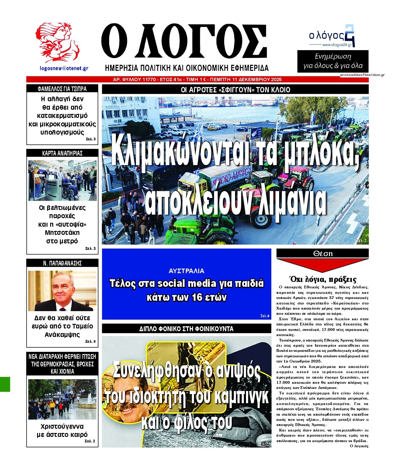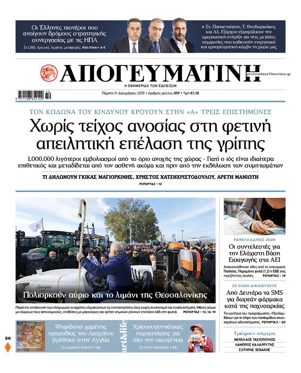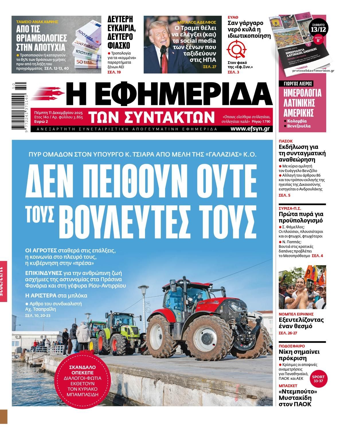 Διαβάστε τα πρωτοσέλιδα από τις πολιτικές, αθλητικές και οικονομικές εφημερίδες.