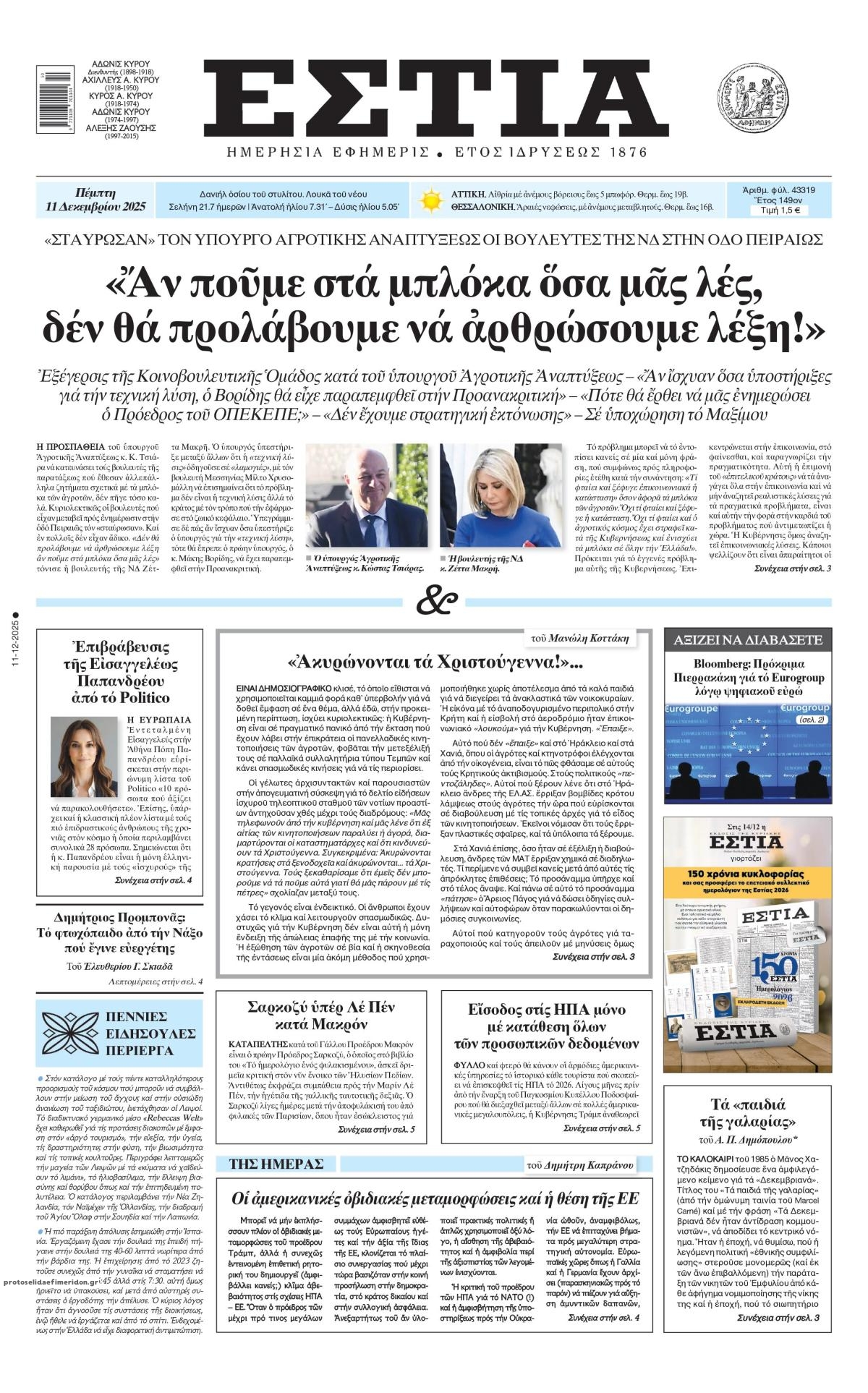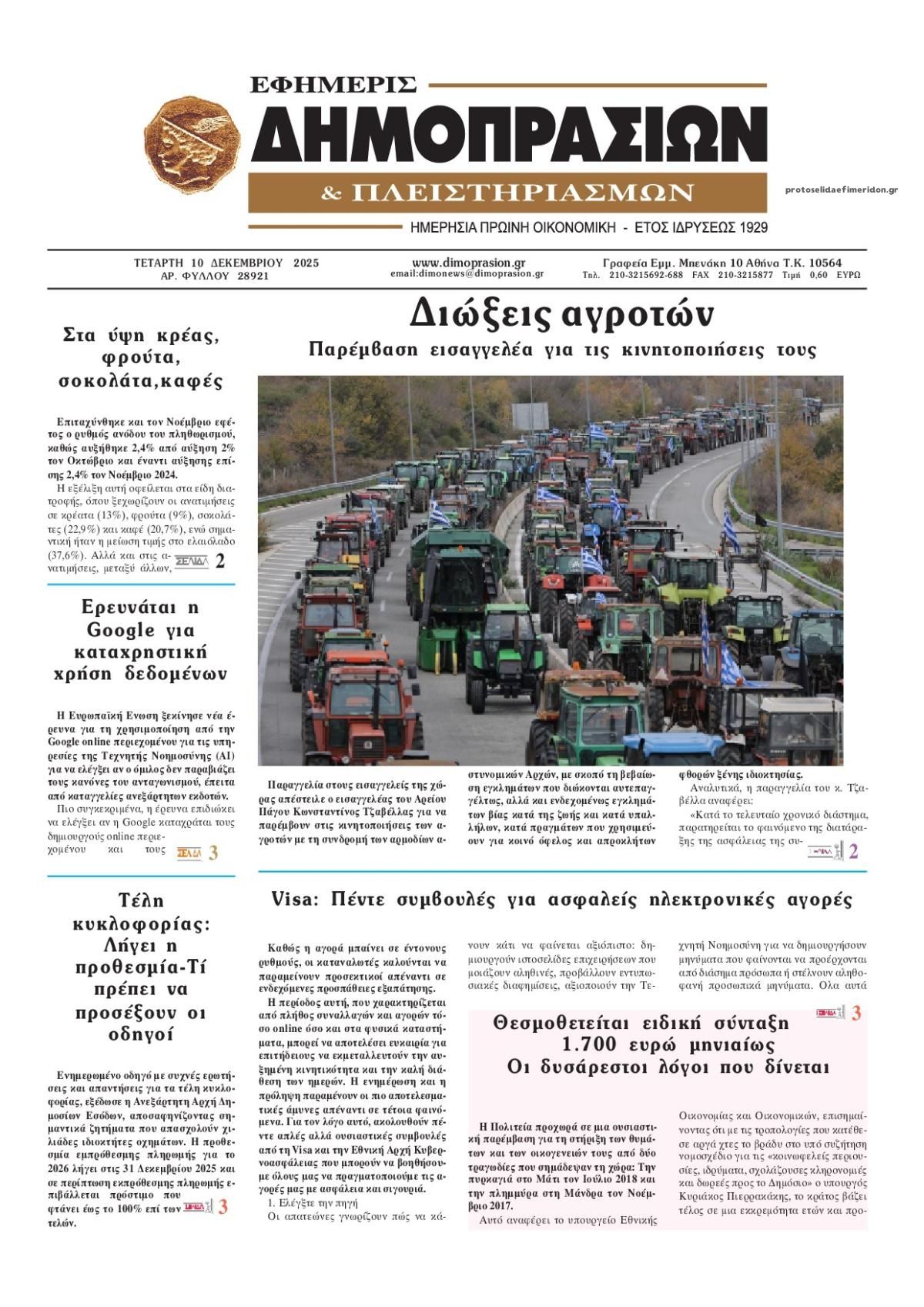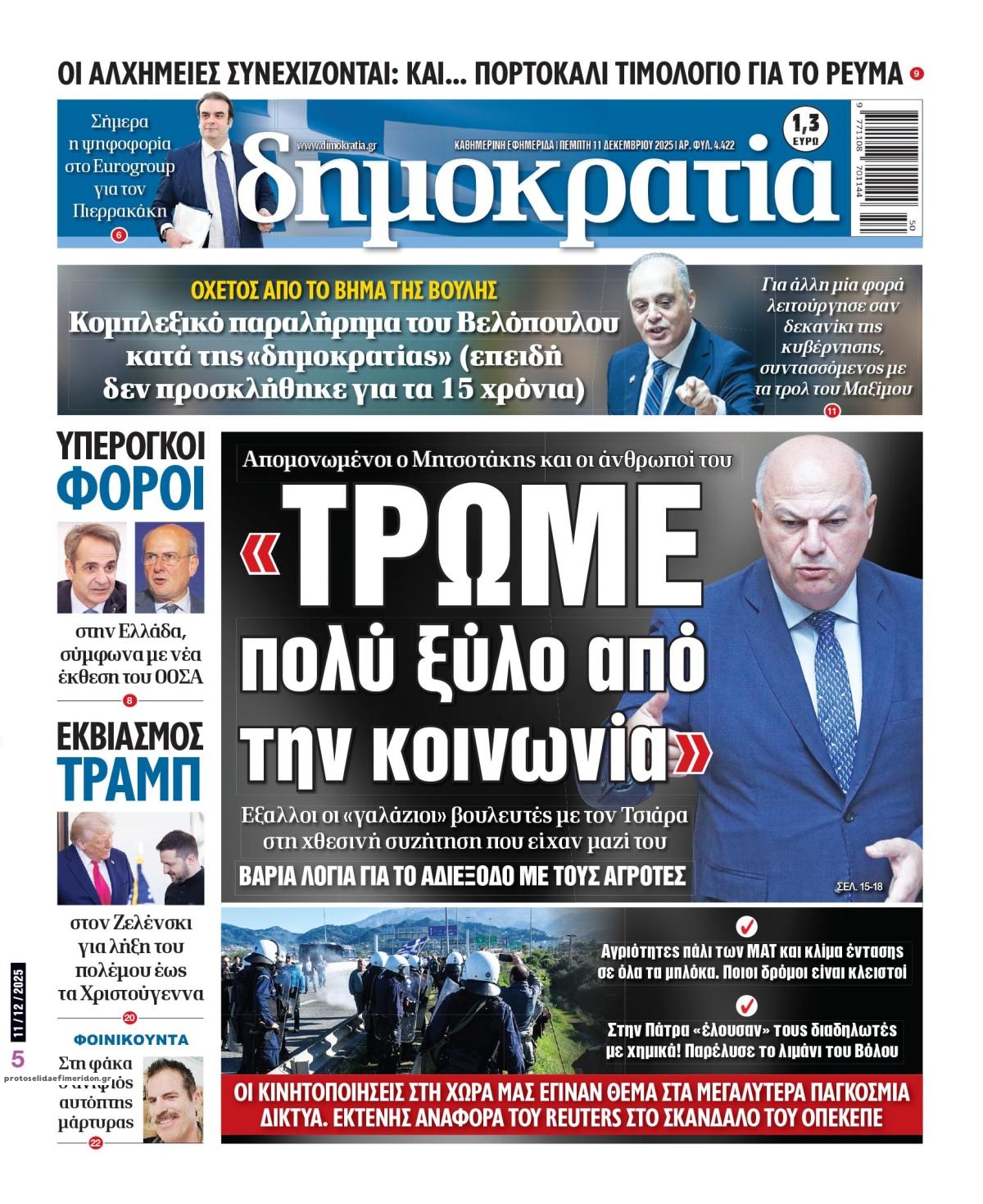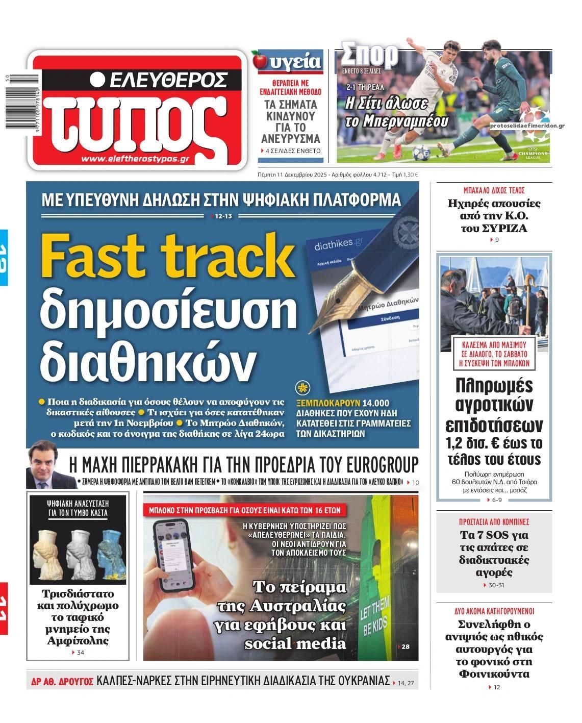 Διαβάστε τα πρωτοσέλιδα από τις πολιτικές, αθλητικές και οικονομικές εφημερίδες.