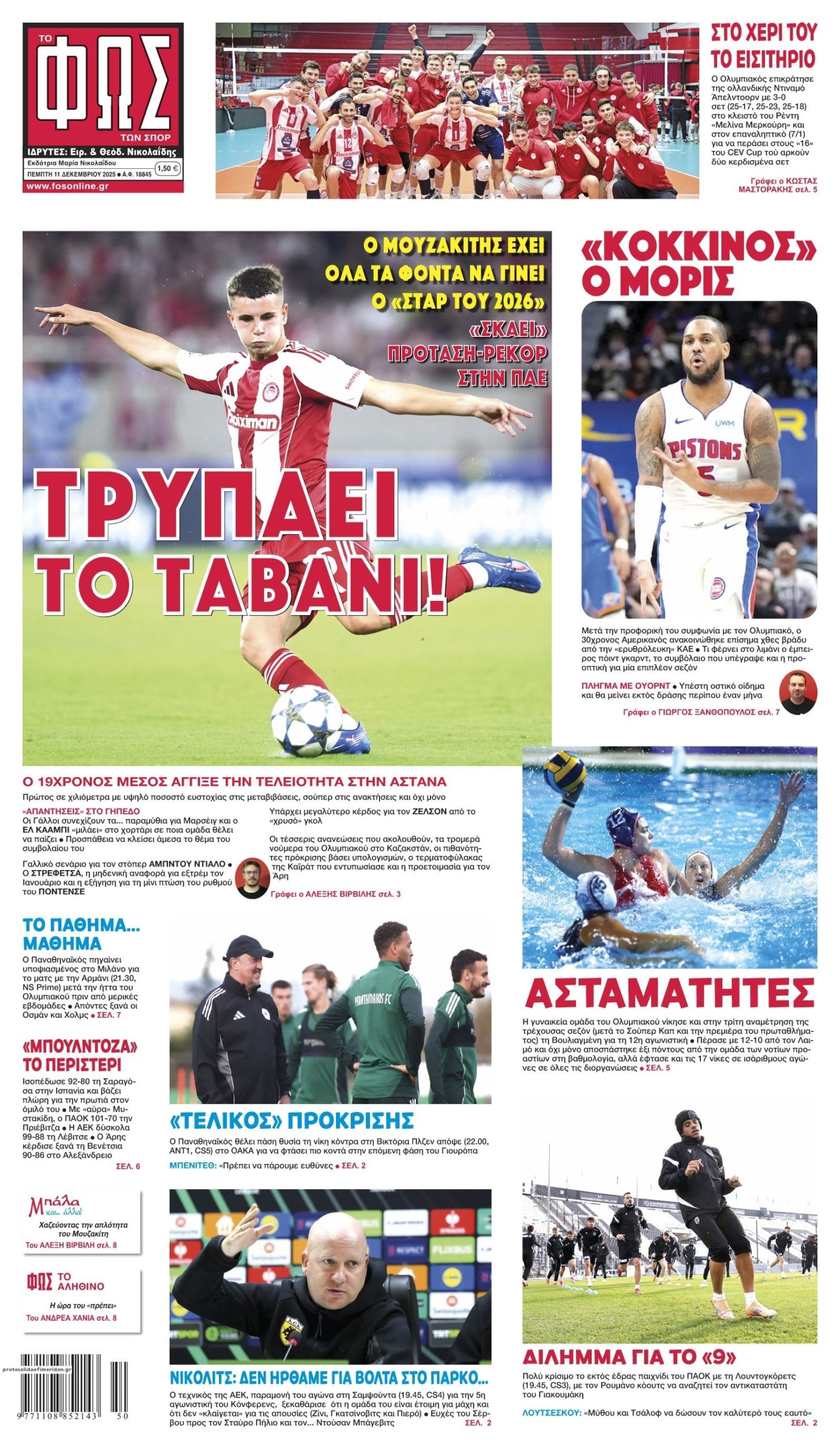Οι αθλητικές μεταδόσεις της ημέρας (10-12-2025)