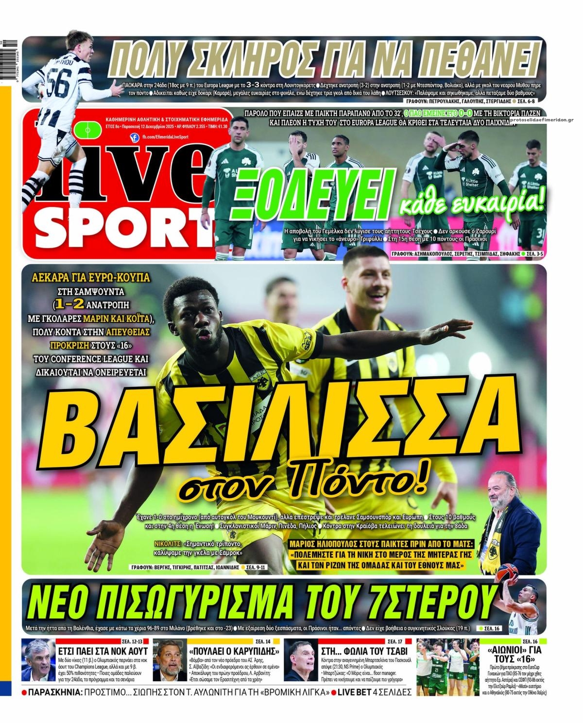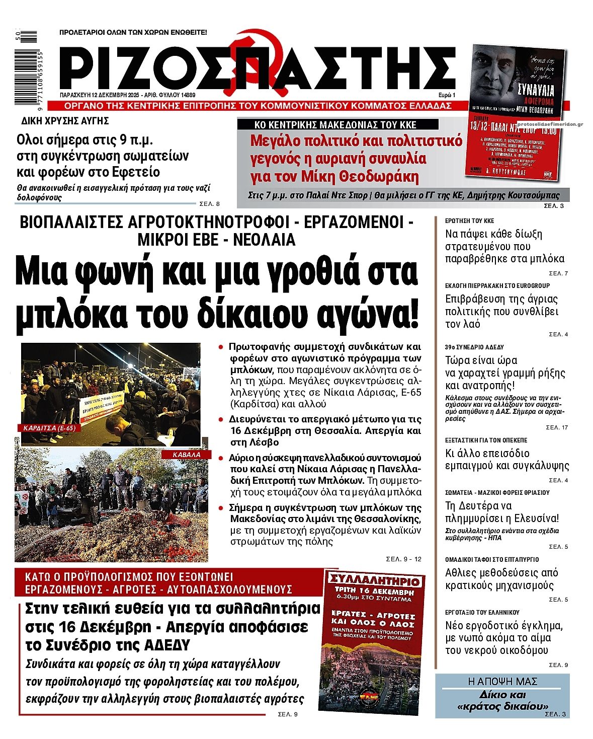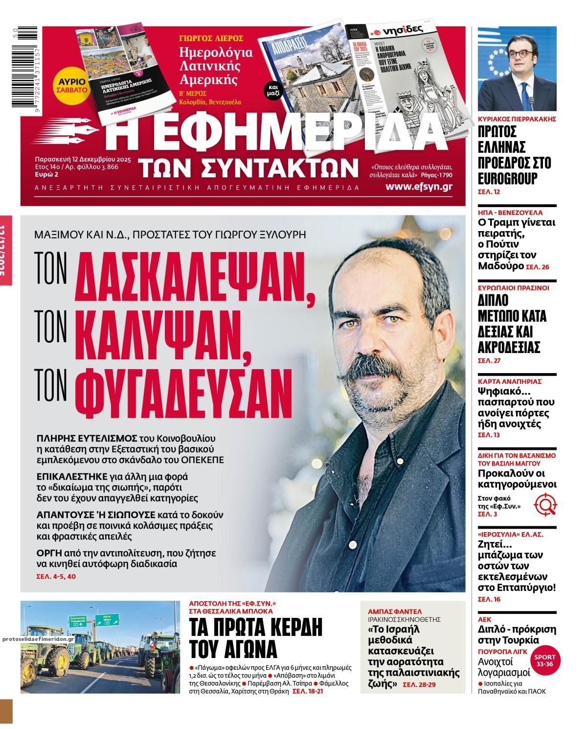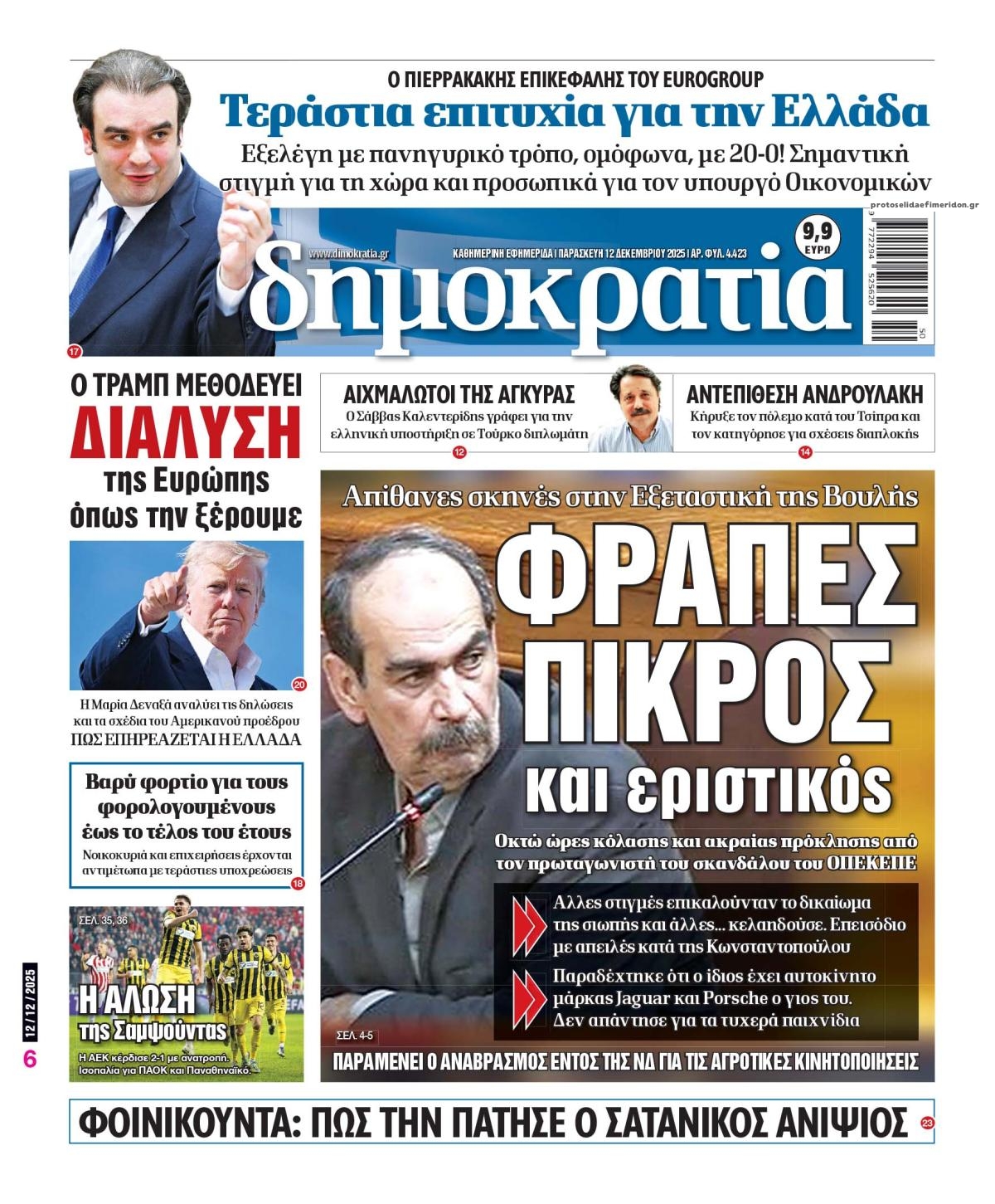 Τα πρωτοσέλιδα των πολιτικών και αθλητικών εφημερίδων (11-12-2025)