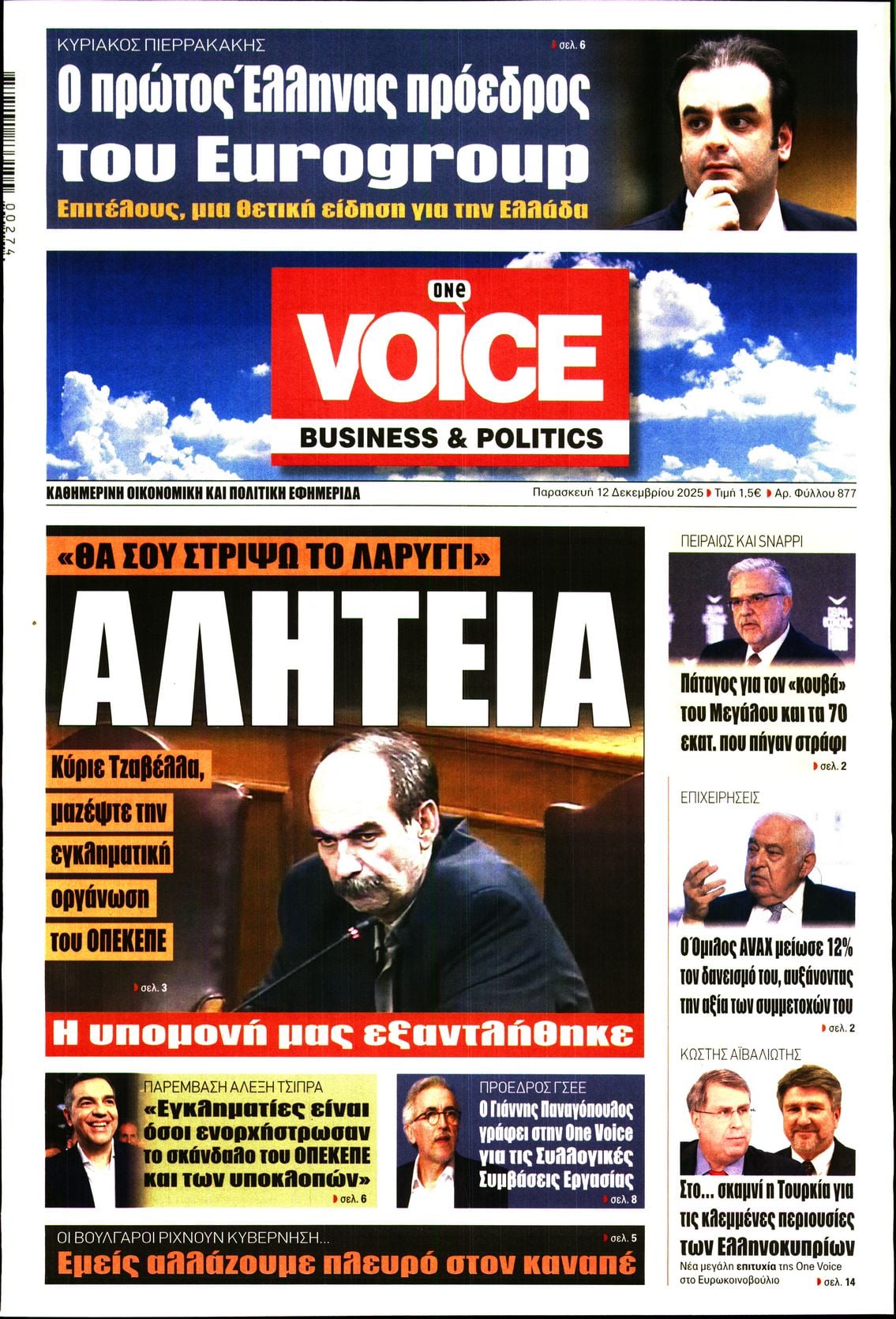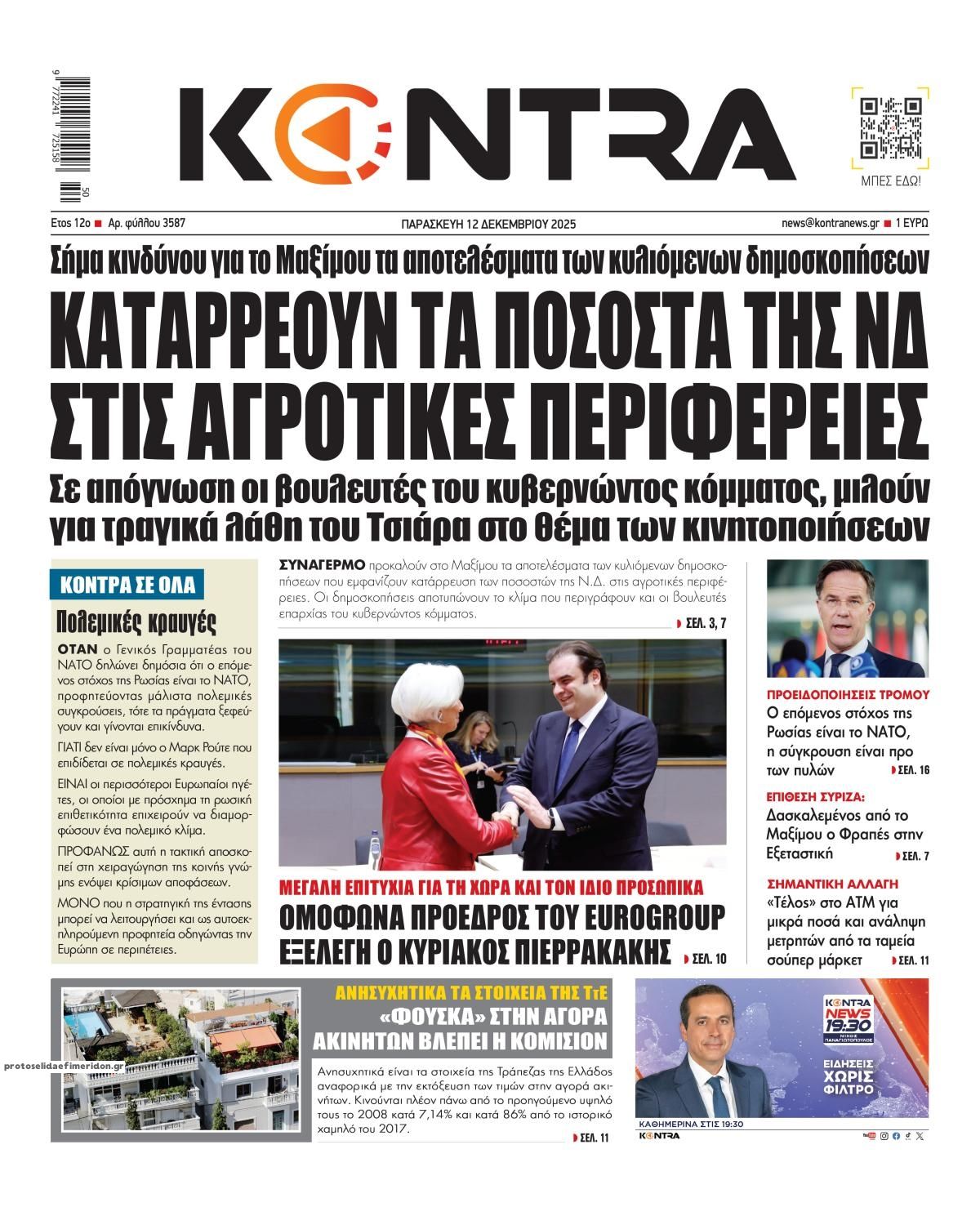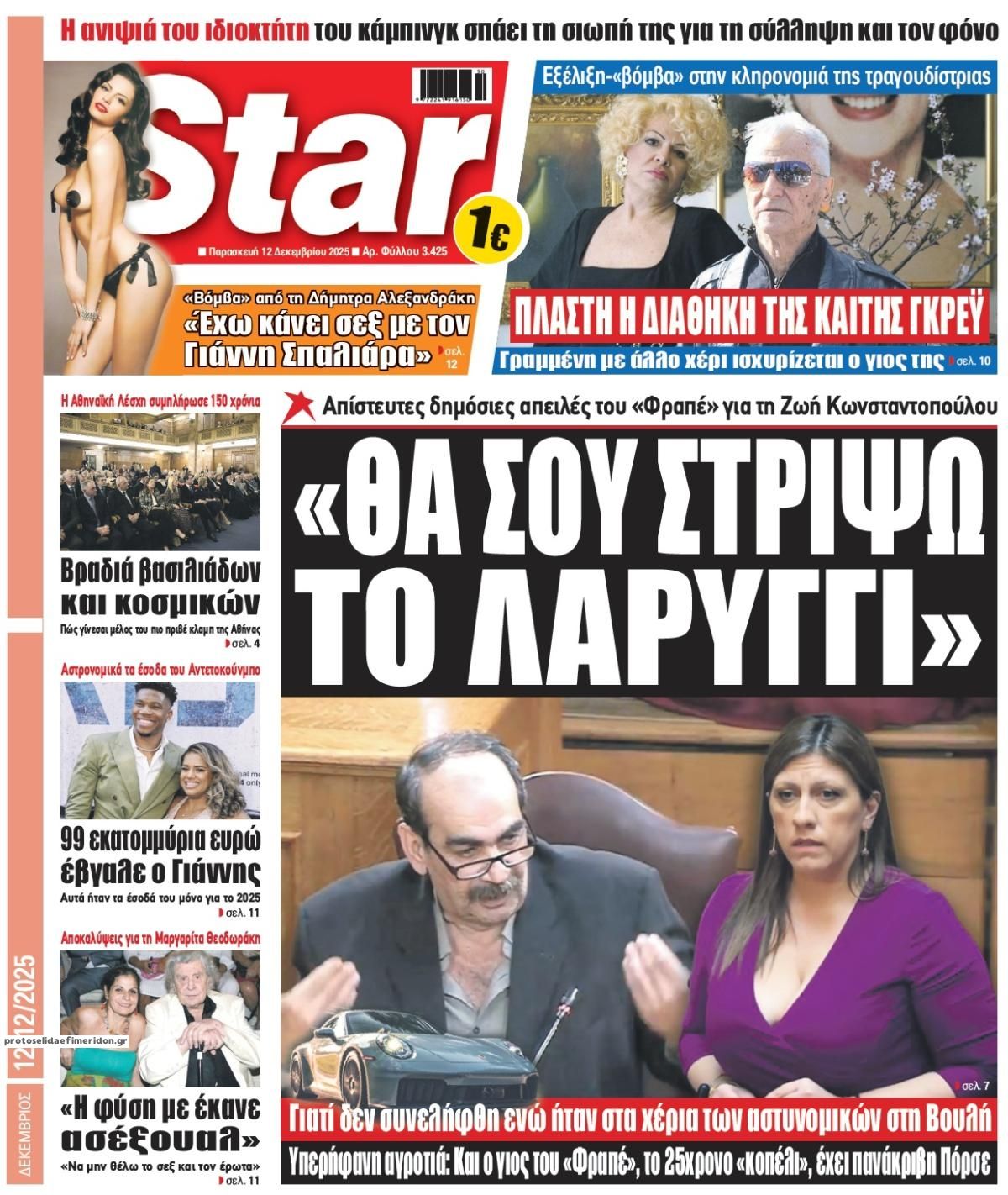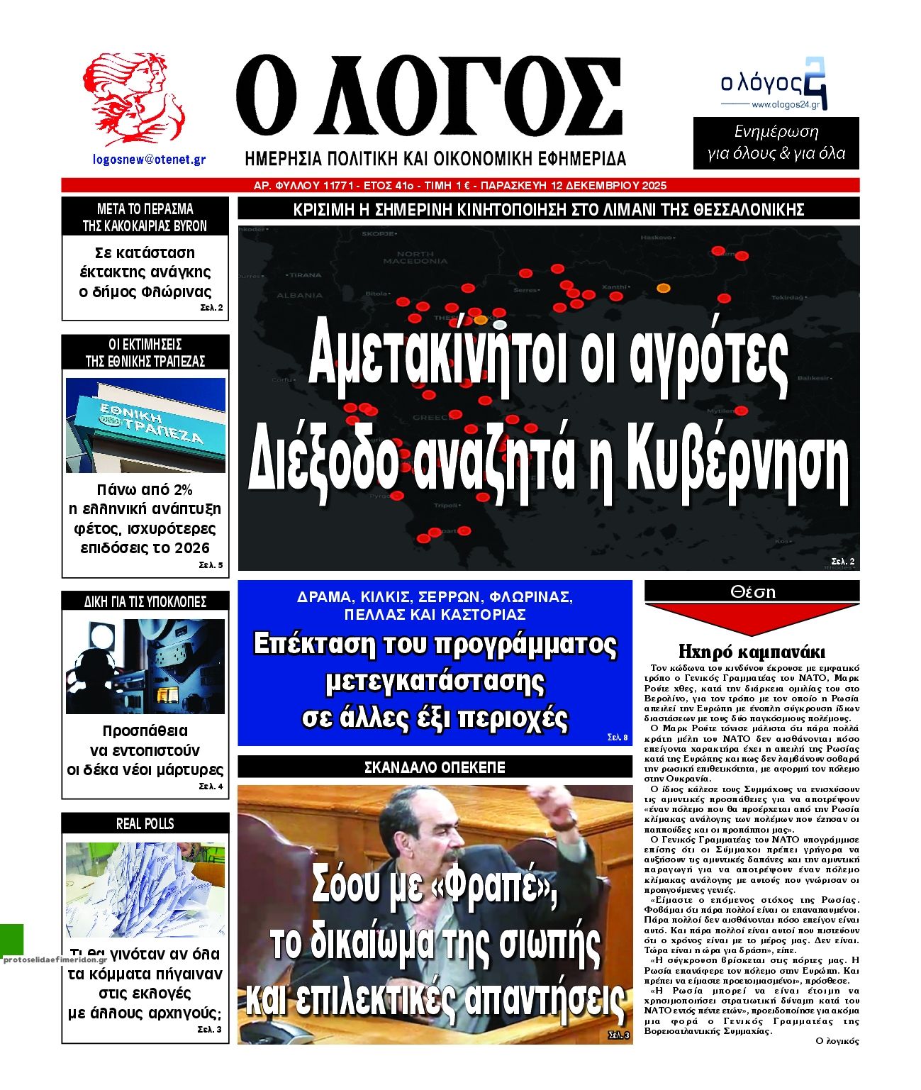 Τα πρωτοσέλιδα των πολιτικών και αθλητικών εφημερίδων (11-12-2025)