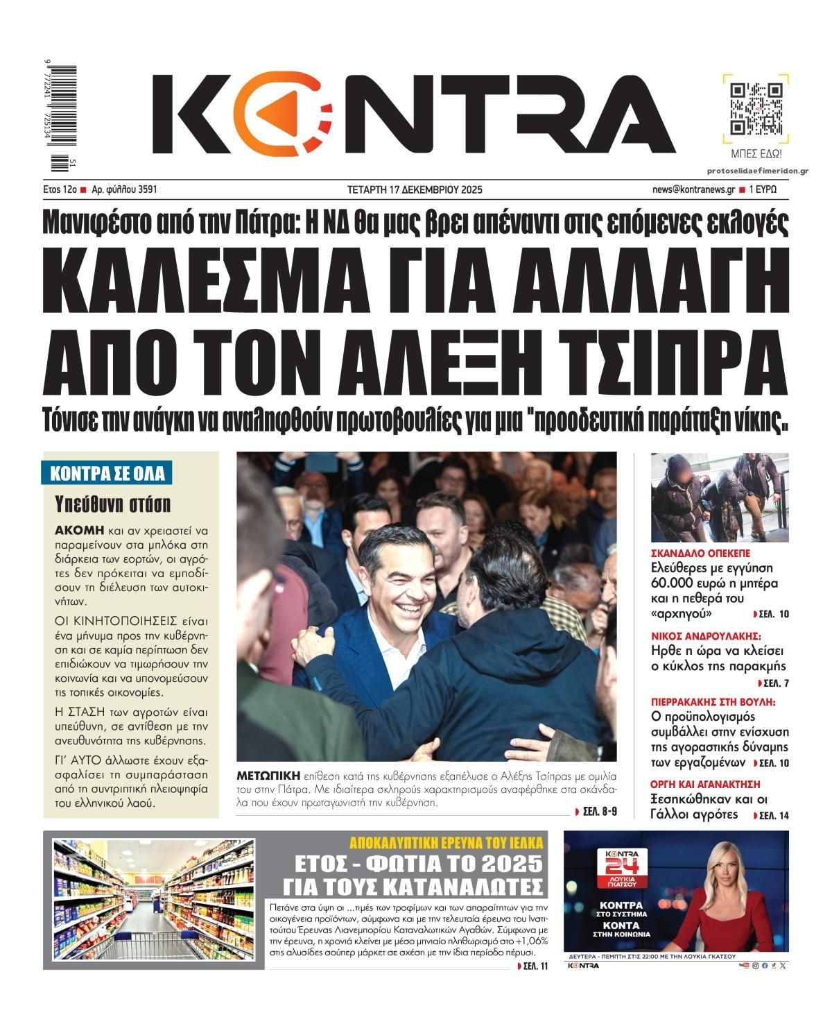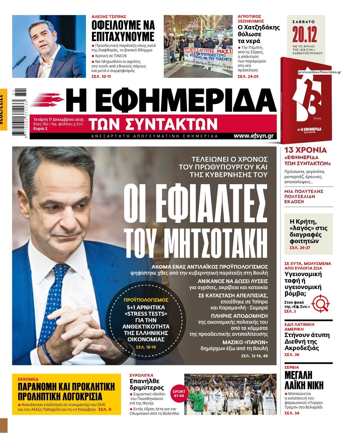 Διαβάστε τα πρωτοσέλιδα από τις πολιτικές, αθλητικές και οικονομικές εφημερίδες.