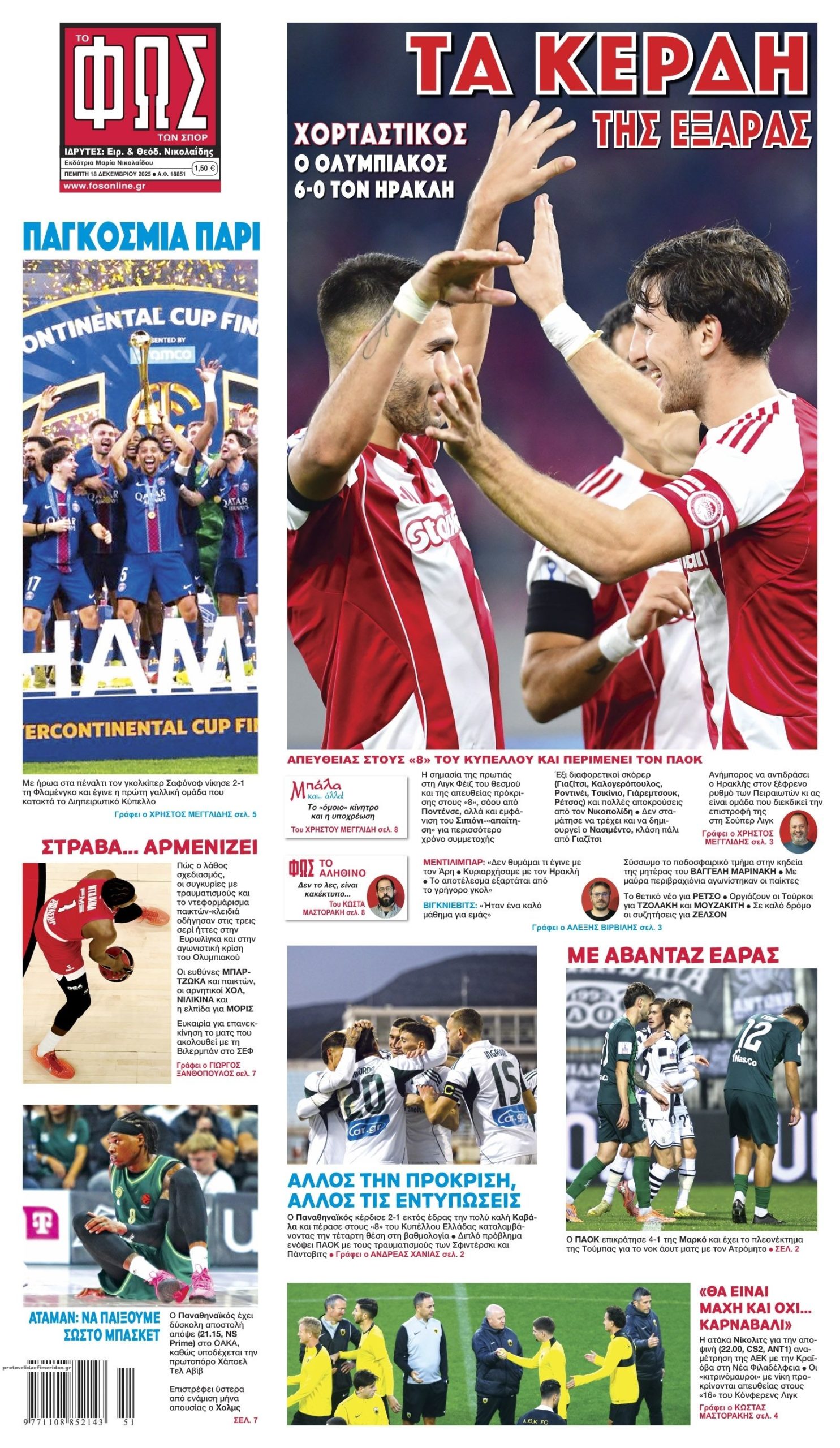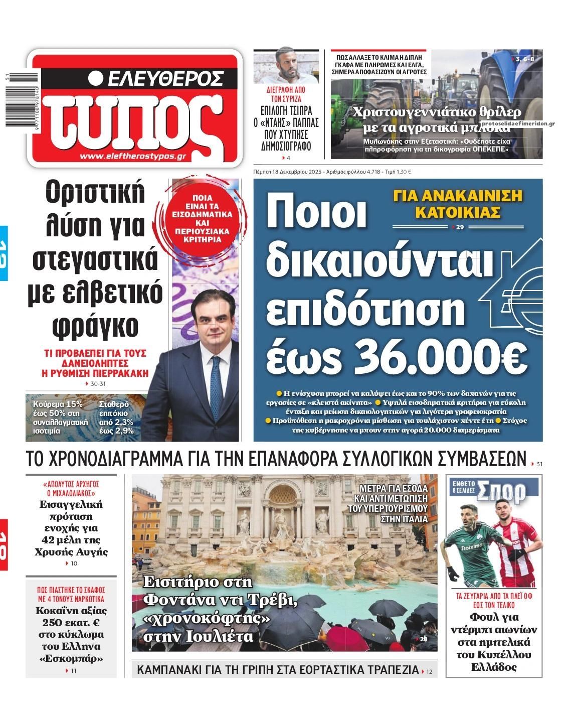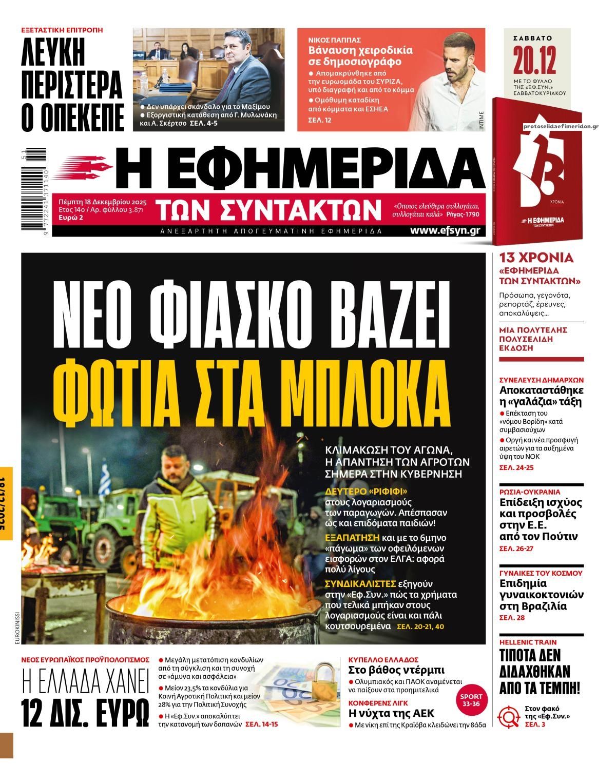 Τα πρωτοσέλιδα των πολιτικών και αθλητικών εφημερίδων (17-12-2025)