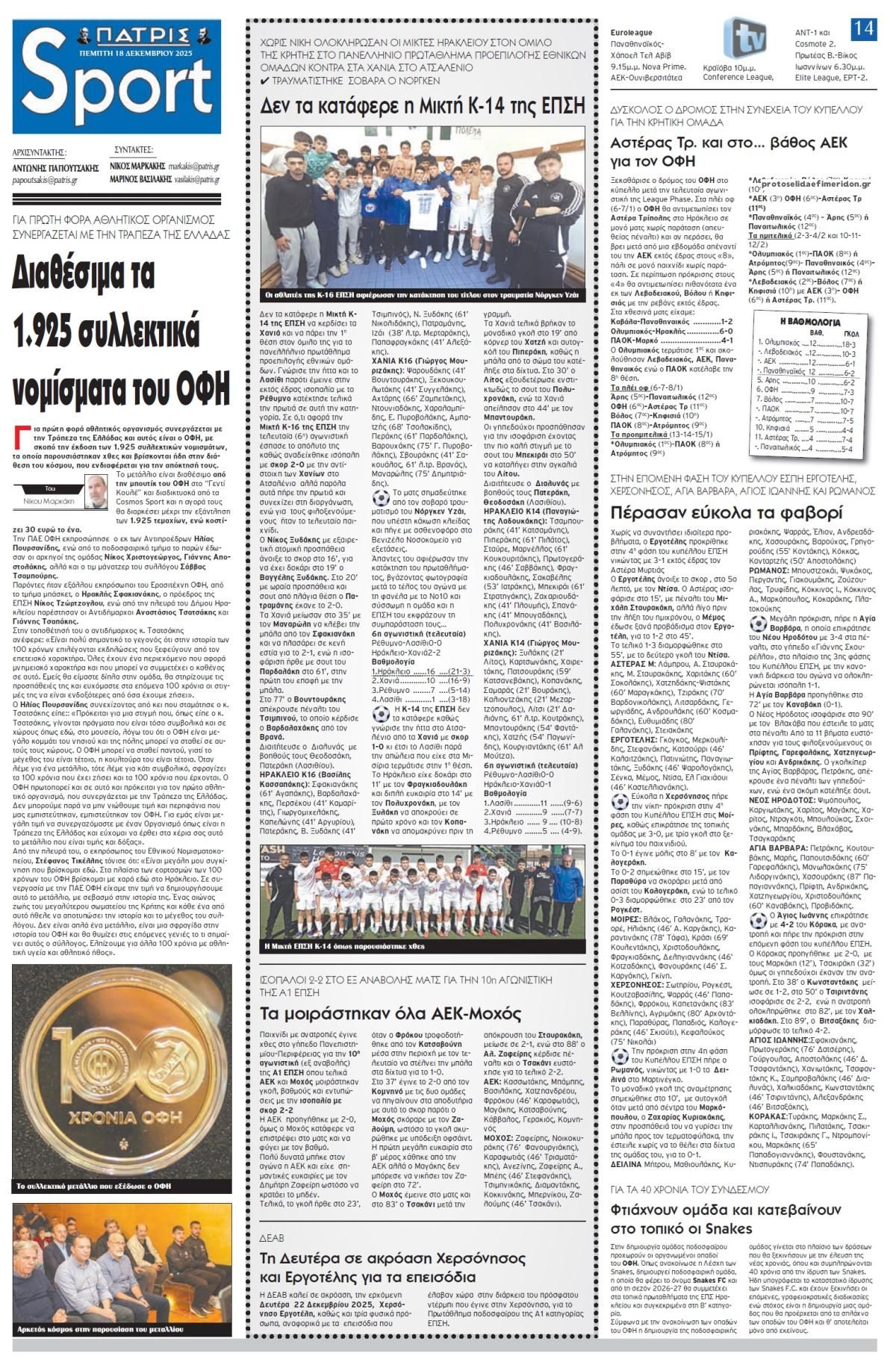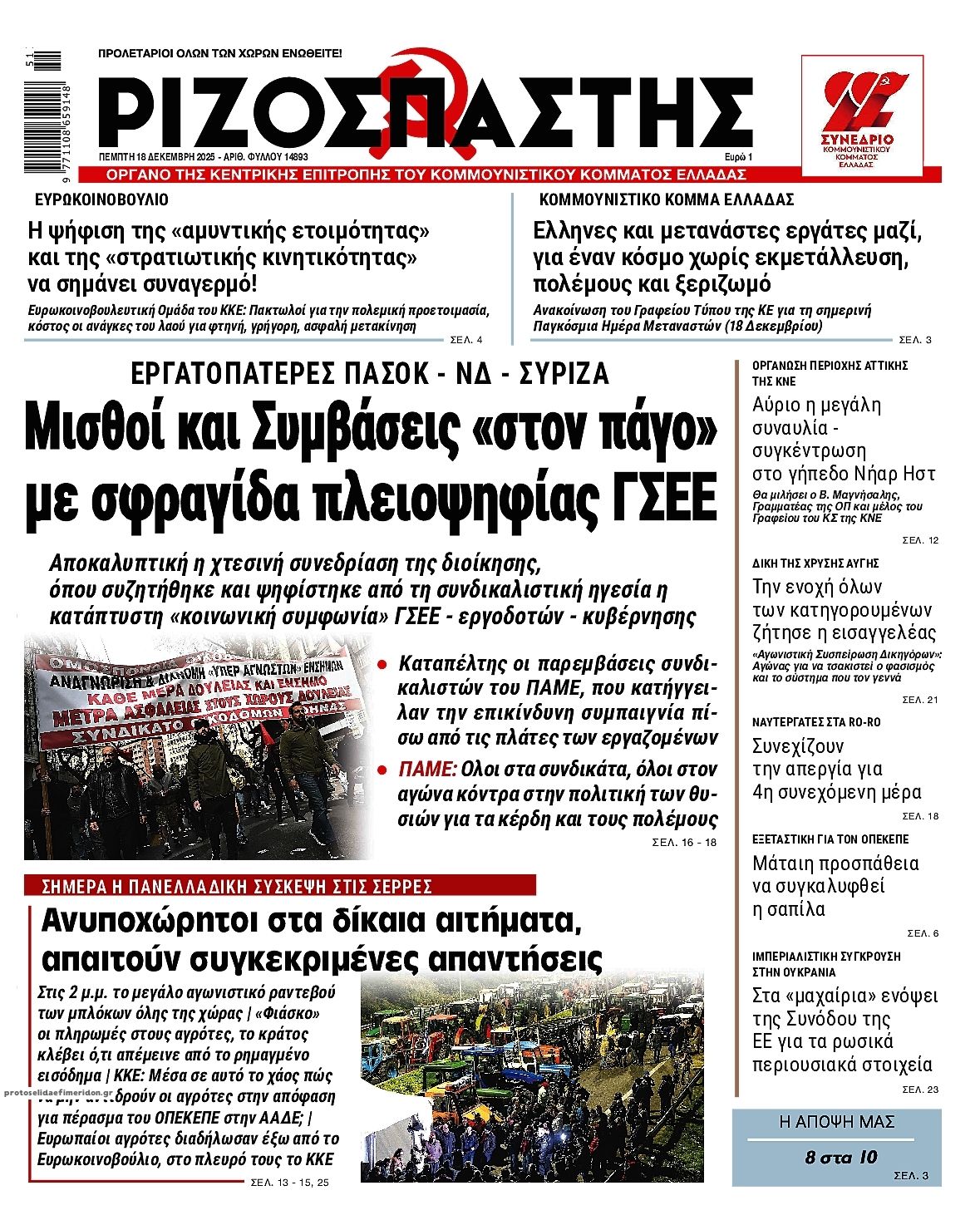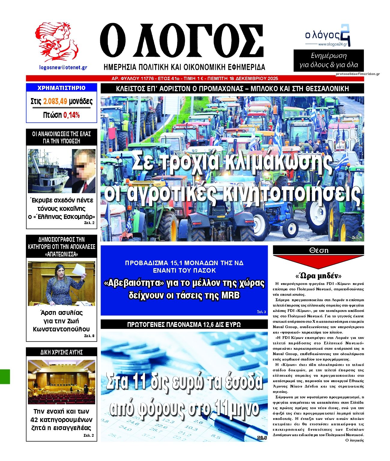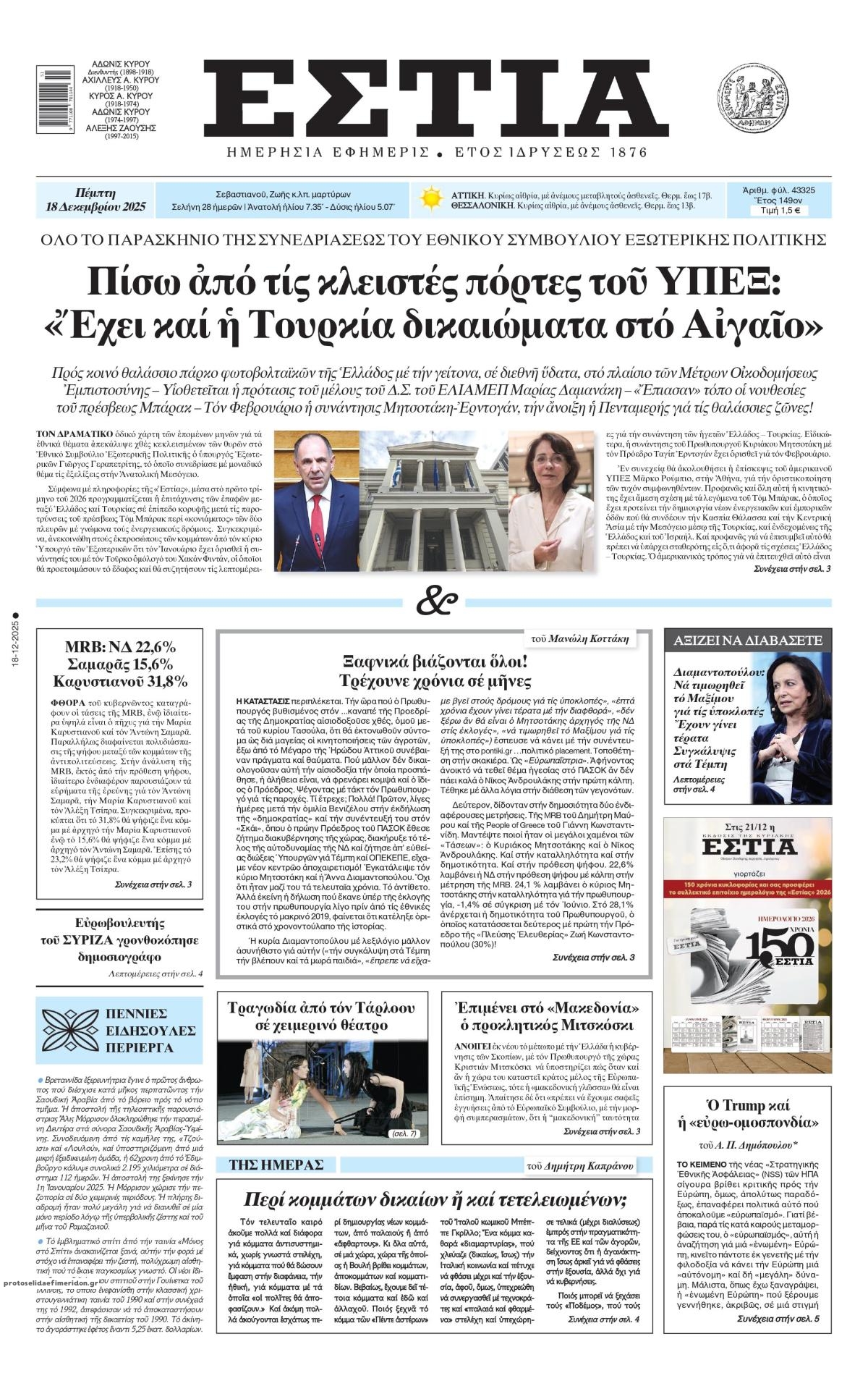 Τα πρωτοσέλιδα των πολιτικών και αθλητικών εφημερίδων (17-12-2025)
