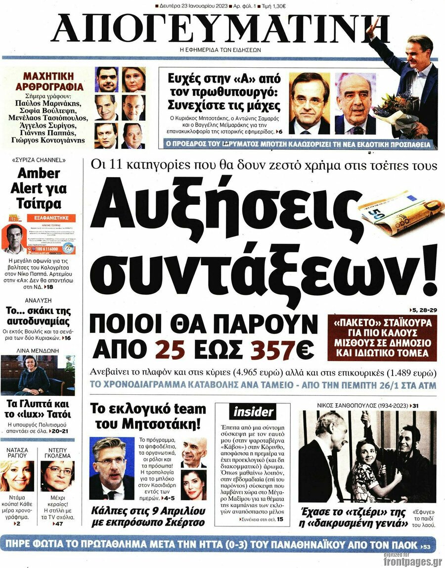 Η ιστορική εφημερίδα «Απογευματινή» κυκλοφορεί πανελλαδικά τη Δευτέρα 23 Ιανουαρίου 2023