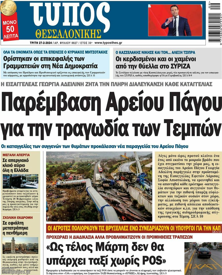 Δείτε τα πρωτοσέλιδα των πολιτικών, οικονομικών και αθλητικών εφημερίδων.