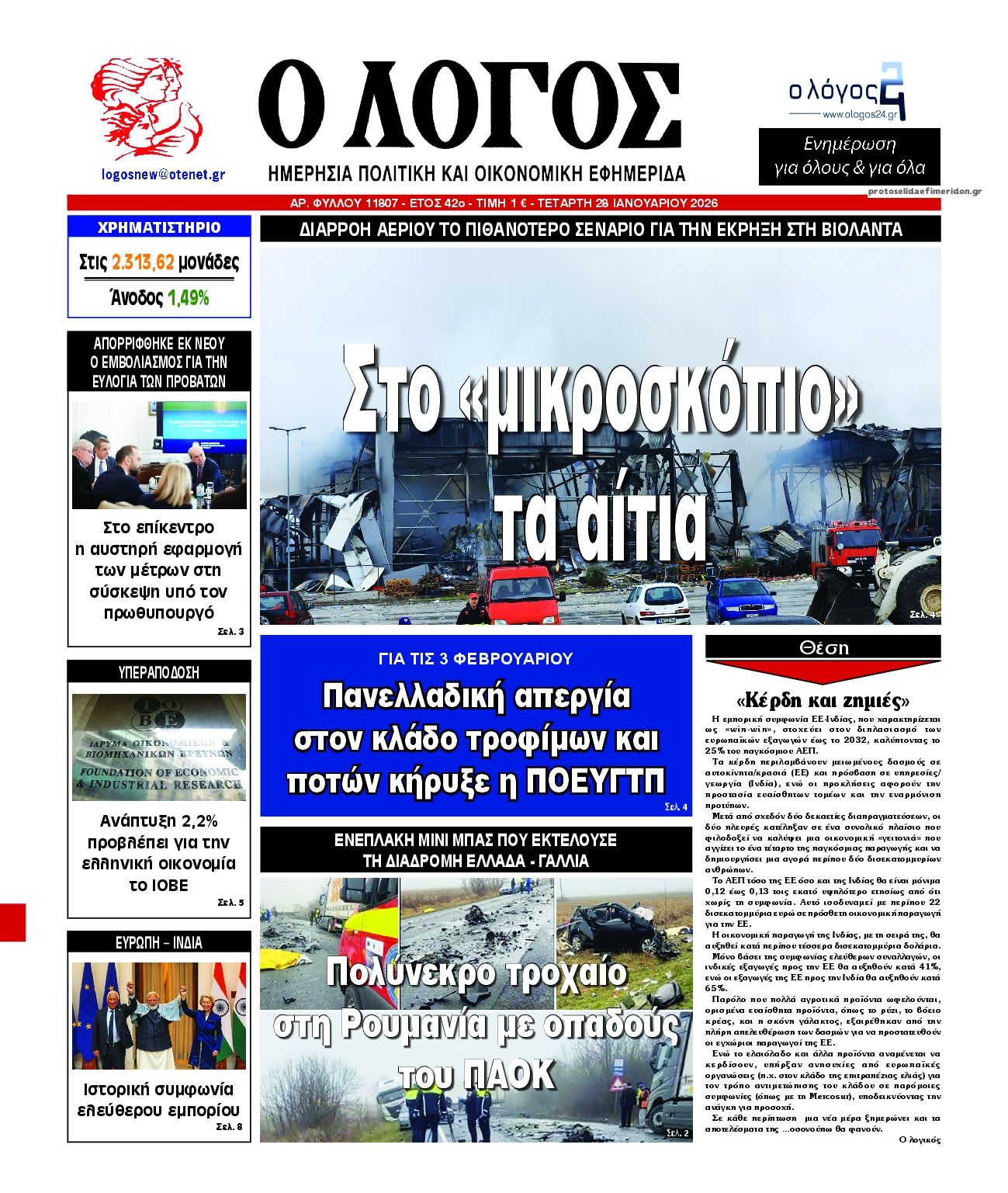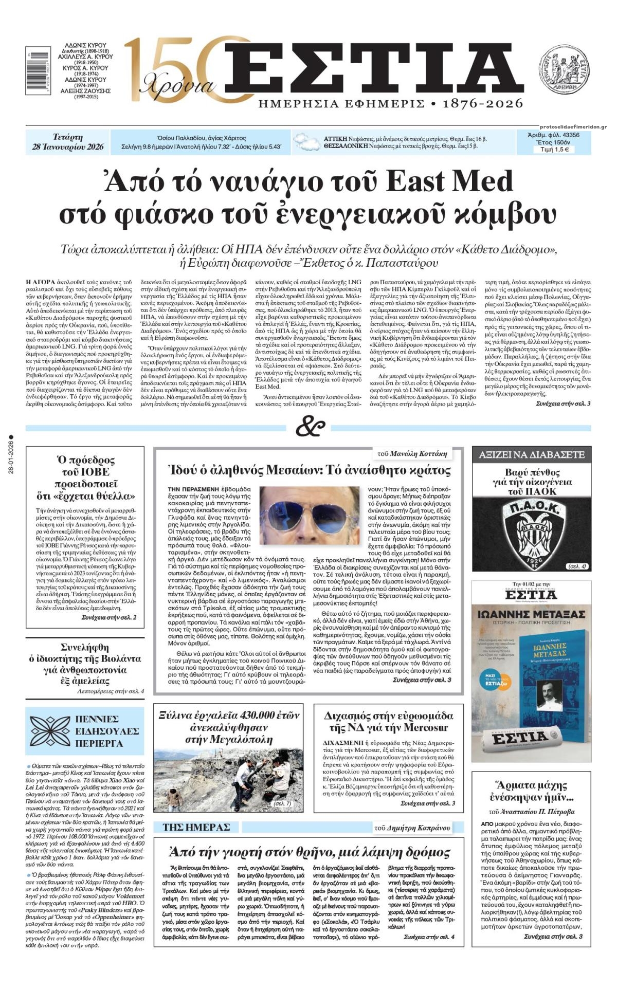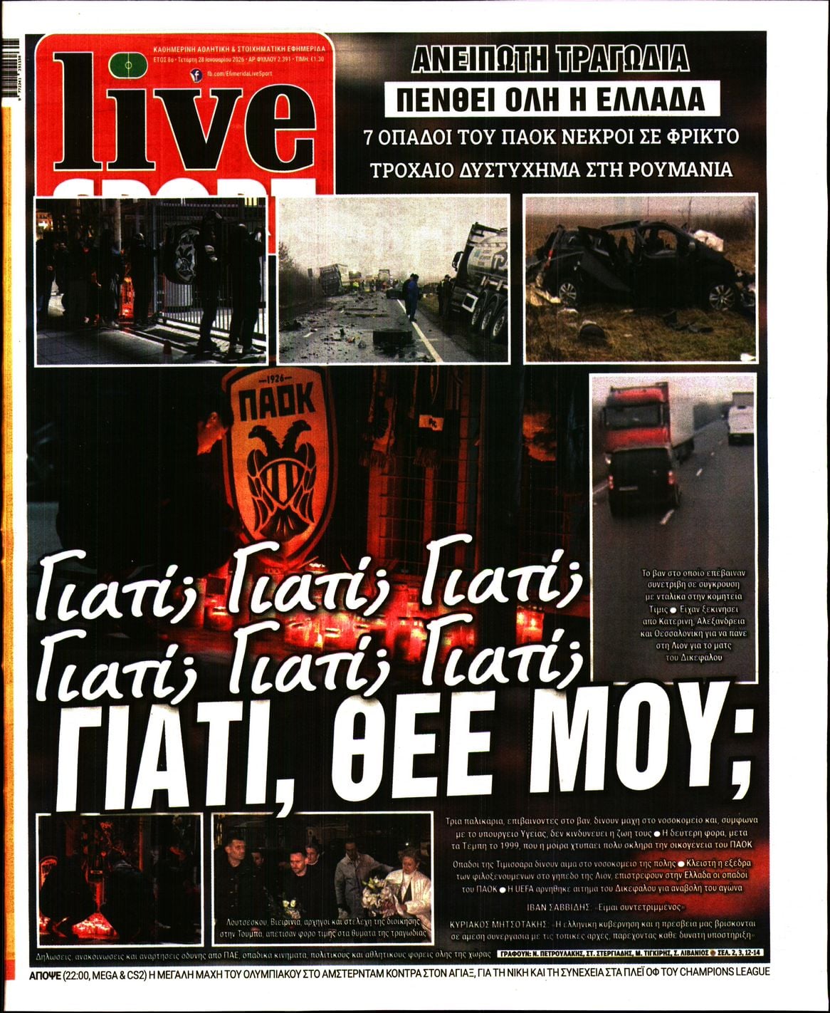 Τα πρωτοσέλιδα των πολιτικών και αθλητικών εφημερίδων (27-01-2026)