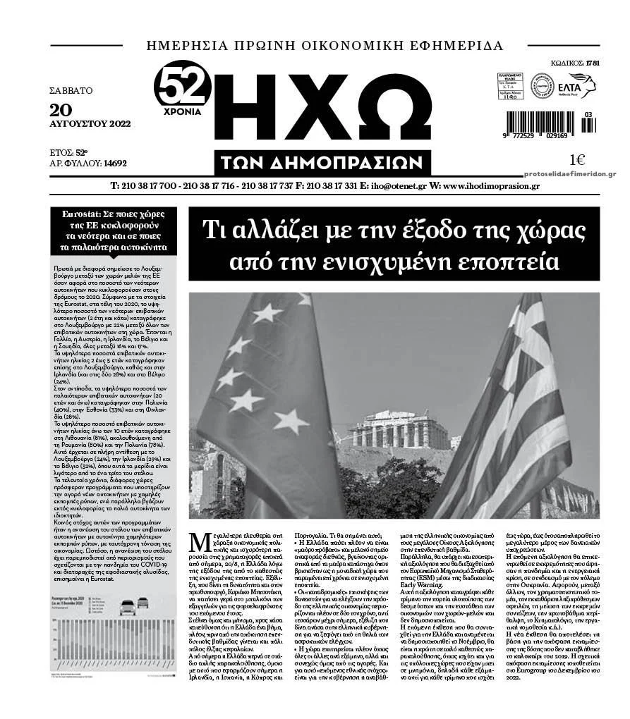 Δείτε τα πρωτοσέλιδα των πολιτικών και οικονομικών εφημερίδων.