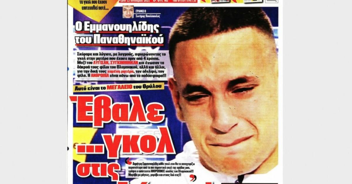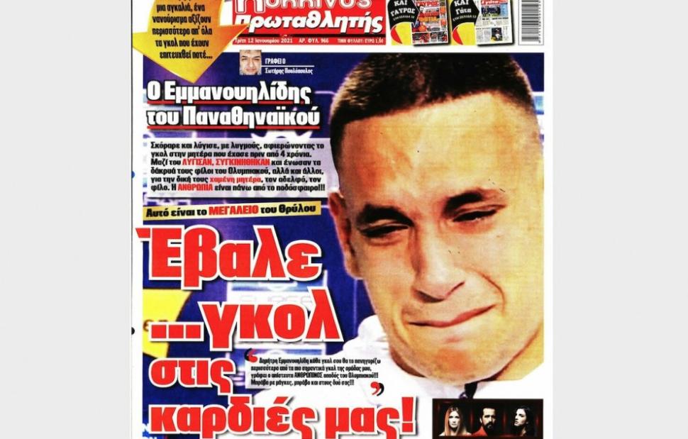Ο εκδότης του «Πρωταθλητή», Σωτήρης Πουλόπουλος, αποφάσισε το πρώτο θέμα της εφημερίδας να αναφέρεται στις συγκλονιστικές δηλώσεις του Δημήτρη Εμμανουηλίδη μετά το γκολ του στον αγώνα του Παναθηναϊκού με τη Λάρισα.
