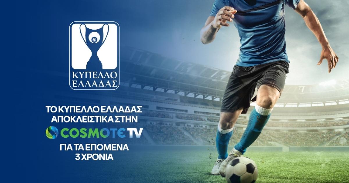 Τα αποκλειστικά δικαιώματα μετάδοσης του Κυπέλλου Ελλάδας ποδοσφαίρου εξασφάλισε η COSMOTE TV για τα επόμενα τρία χρόνια. Έτσι, έως το 2026, η δημοσιογραφική ομάδα των καναλιών COSMOTE SPORT θα μεταφέρει όλη τη δράση των αγώνων του θεσμού των μεγάλων εκπλήξεων, μέχρι και τον μεγάλο τελικό, με πλούσια ρεπορτάζ και ειδικές εκπομπές. Το Κύπελλο Ελλάδας Betsson έρχεται να προστεθεί στο ήδη πλούσιο αθλητικό πρόγραμμα της COSMOTE TV, που περιλαμβάνει περισσότερες από 90 κορυφαίες διοργανώσεις σε ποδόσφαιρο, μπάσκετ, τένις, μηχανοκίνητα και άλλα δημοφιλή αθλήματα που απολαμβάνουν οι συνδρομητές μέσα από 18 αθλητικά κανάλια.