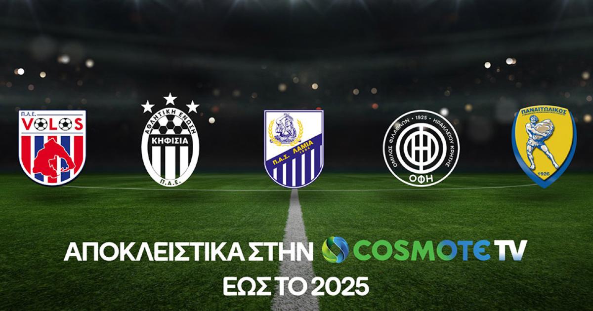 Η COSMOTE TV ανανέωσε τη συνεργασία της με τις ΠΑΕ Βόλος, Λαμία, ΟΦΗ και Παναιτωλικός για τα επόμενα δύο χρόνια, ενώ συμφώνησε και με τη «νεοφώτιστη» Κηφισιά για τη σεζόν 2023-2024. Έτσι, όλοι οι εντός έδρας αγώνες των ομάδων για το Πρωτάθλημα της Stoiximan Super League και οι φιλικοί αγώνες προετοιμασίας, θα προβάλλονται αποκλειστικά από τα κανάλια COSMOTE SPORT.