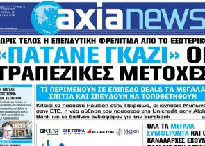 Με τίτλο: «"Πατάνε γκάζι" οι τραπεζικές μετοχές» κυκλοφορεί αύριο, Σάββατο 11 Οκτωβρίου, η «Axianews». Χωρίς τέλος η επενδυτική φρενίτιδα από το εξ...