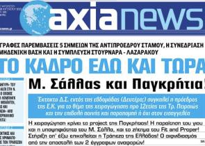 Με τίτλο: «Στο κάδρο εδώ και τώρα Μ.Σάλλας και Παγκρήτια» κυκλοφορεί αύριο Σάββατο 27 Αυγούστου η «Axianews». Οι έγγραφες παρεμβάσεις 5 σημείων της...