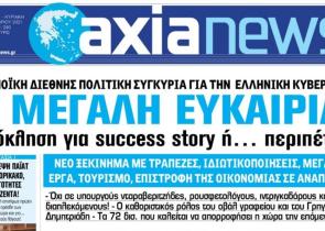 Με τίτλο: «Η μεγάλη ευκαιρία!» κυκλοφορεί αύριο, Σάββατο 11 Σεπτεμβρίου, η «Axianews». Πρόκληση για success story ή… περιπέτεια Η ευνοϊκή διεθνή...