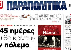 Αύριο, Σάββατο 10 Απριλίου, η εφημερίδα ΠΑΡΑΠΟΛΙΤΙΚΑ κυκλοφορεί σε όλα τα περίπτερα της χώρας με πλούσια θεματολογία και πολλές αποκλειστικότητες. Απο...