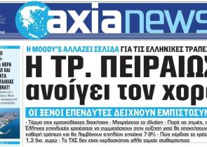 Με τίτλο: «H Τράπεζα Πειραιώς ανοίγει τον χορό» κυκλοφορεί αύριο, Σάββατο 3 Απριλίου, η «Axianews». H Moody΄s αλλάζει σελίδα για τις ελληνικές τράπεζ...