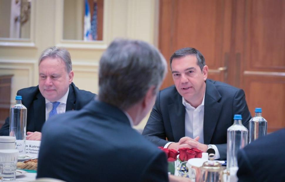 Αντιγραφή από την επίσημη ανακοίνωση του ΣΥΡΙΖΑ ΠΣ, μετά τη συνάντηση Μπλίνκεν-Τσίπρα στη Μ. Βρετάνια, άνευ γραβάτας και πάλι, συνοδεία Κατρούγκαλου (έδωσε τα φώτα του και για τις αμερικάνικες συντάξεις;) κι ενός Βαγγέλη Καλπαδάκη, ιδιώτης «διπλωματικός σύμβουλος» του Προέδρου.