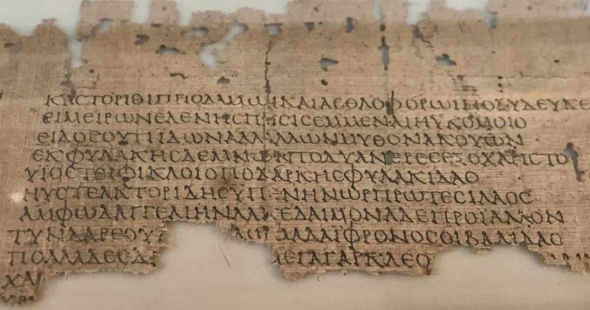 *Θέμα κεντρικής φωτογραφίας: Ησιόδου, “Γυναικών κατάλογος” ή “Ηοίαι” - γενεαλογικό έπος αναφερόμενο σε θνητές που έκαναν παιδιά με θεούς, κομμάτι παπύρου (Μουσείο Βερολίνου - φωτογραφικό αρχείο Γ. Ρούντου).