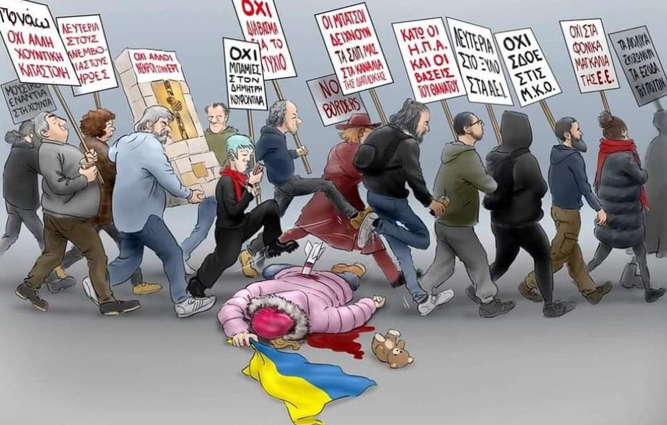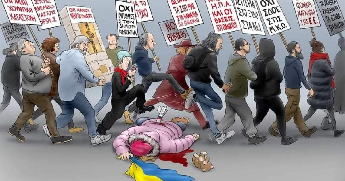Στο «πεδίο», δηλαδή στο πεζοδρόμιο, η εγχώρια αριστερά «λάμπει»: διοργανώνει συγκέντρωση και συναυλία «κατά του πολέμου των ιμπεριαλιστών ΗΠΑ –ΝΑΤΟ –ΕΕ-Ρωσίας» (με αυτή τη σειρά) για να καθαγιάσει την πολιτική της εκτίμηση πως « ο Πούτιν αναγκάστηκε να εισβάλλει στην Ουκρανία πιεζόμενος από τις ΗΠΑ, το ΝΑΤΟ και την ΕΕ, που δεν αντιλαμβάνονται τις ρωσικές ανησυχίες», καλεί σε συγκέντρωση έξω από το Συμβούλιο της Επικρατείας «για να μην περάσει ο φασιστικός νόμος για την πανεπιστημιακή αστυνομία» (είναι «φασιστική» επειδή δεν αρέσει στους Φίληδες, στους Λιάκους και στα Κουφοντινάκια) και «αμαυρώνει» τη μνήμη των δολοφονηθέντων από τα νεοκομμουνιστικά τάγματα εφόδου στην MARFIN βεβηλώνοντας το μνημείο ( την πλάκα) που έχει η Πολιτεία αφιερώσει στη μνήμη τους με ΛΟΑΤΚΙ σύμβολα και αναφορές.
