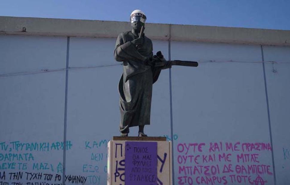 Ο βανδαλισμός έγινε από φοιτητές που αντιδρούν στον νόμο για τα ΑΕΙ, όμως, δεν άκουσα από καμία πλευρά, μια φωνή αποδοκιμασίας, γι’ αυτό το ανοσιούργημα, καθώς έντυσαν τον μέγιστο φιλόσοφο με στολή αστυνομικού.
