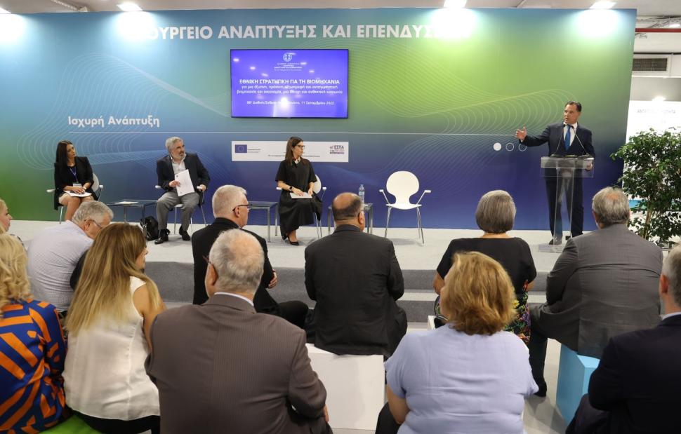 Ο υπουργός Ανάπτυξης και Επενδύσεων ανέδειξε στην ομιλία του τις πολύ καλές επιδόσεις της ελληνικής βιομηχανίας αναφέροντας χαρακτηριστικά την άνοδο του δείκτη βιομηχανικής παραγωγής κατά 7% (σε ετήσια βάση) τον Ιούλιο του 2022, σύμφωνα με τα πιο πρόσφατα στοιχεία της ΕΛΣΤΑΤ, και διαβεβαίωσε ότι «συγκροτημένα, με σχέδιο, εργατικότητα και αποτελεσματικότητα θα πάμε την βιομηχανία εκεί που της αξίζει και που μπορεί».
