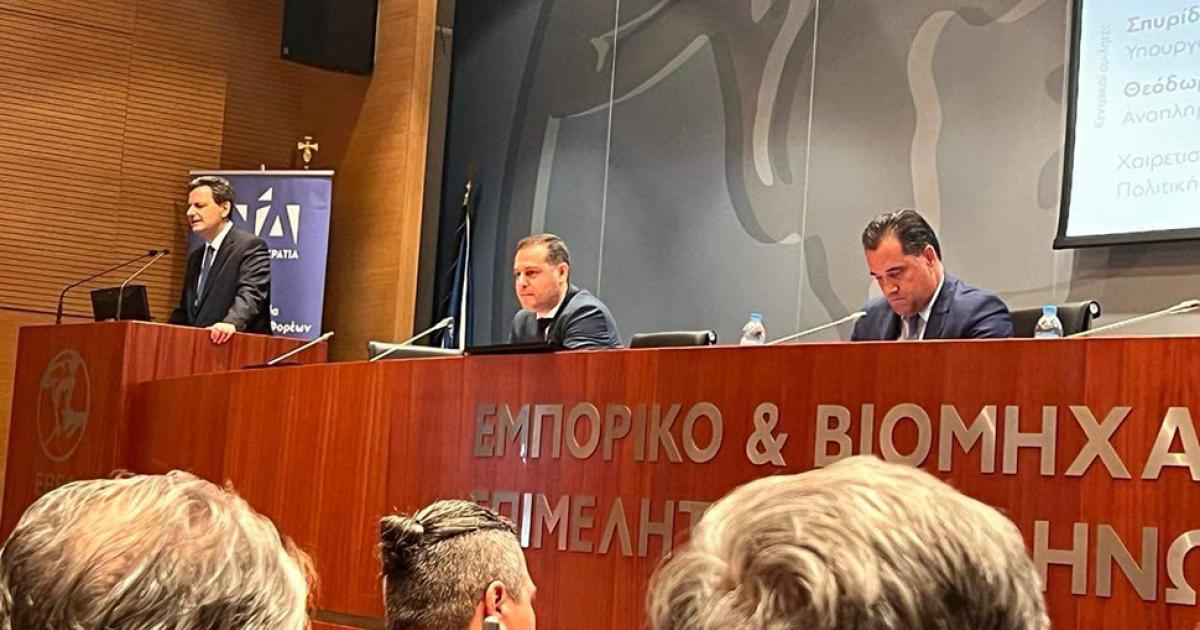 Με πρωτοβουλία της Γραμματείας Επιστημονικών Φορέων της ΝΔ πραγματοποιήθηκε στο ΕΒΕΑ, εκδήλωση με θέμα «Με εφόδιο τη γνώση, στην Ελλάδα 2.0». Κεντρικοί ομιλητές ήταν ο Υπουργός Ανάπτυξης και Επενδύσεων και Αντιπρόεδρος της ΝΔ Άδωνις Γεωργιάδης και ο αν. Υπουργός Οικονομικών Θεόδωρος Σκυλακάκης, ενώ χαιρετισμό απεύθυνε ο Γραμματέας της Πολιτικής Επιτροπής του κόμματος Παύλος Μαρινάκης.