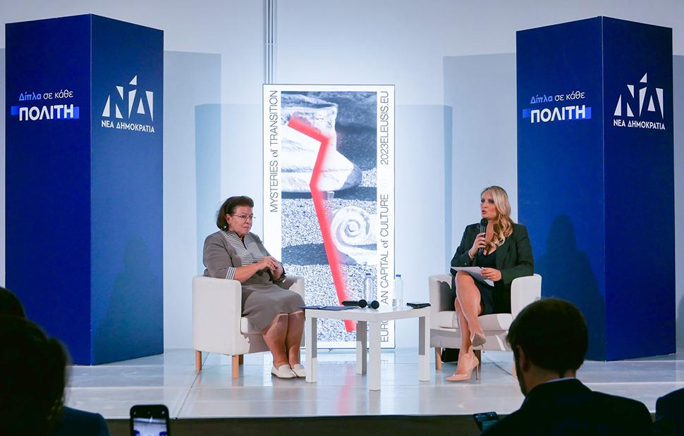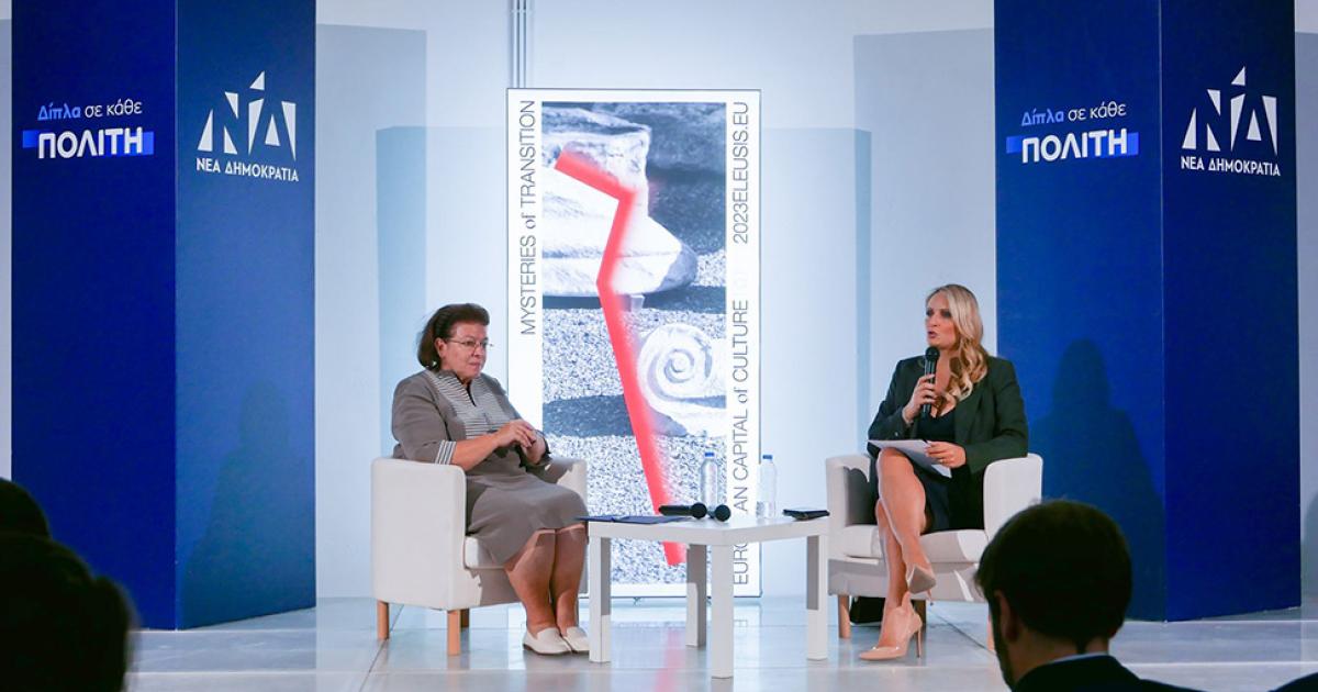 Με επιτυχία πραγματοποιήθηκε μια ακόμα ανοιχτή εκδήλωση- συζήτηση της Νέας Δημοκρατίας στο πλαίσιο των εκδηλώσεων που πραγματοποιεί το κόμμα με στόχο την ανάδειξη του κυβερνητικού έργου με θέμα «Πολιτισμός για όλους: Μια συζήτηση για όσα έγιναν και όσα πρέπει να γίνουν». Κεντρική ομιλήτρια ήταν η Υπουργός Πολιτισμού και Αθλητισμού Λίνα Μενδώνη, ενώ η εκδήλωση πραγματοποιήθηκε στην Ελευσίνα η οποία έχει ανακηρυχθεί ως Ευρωπαϊκή Πολιτιστική Πρωτεύουσα για το έτος 2023.